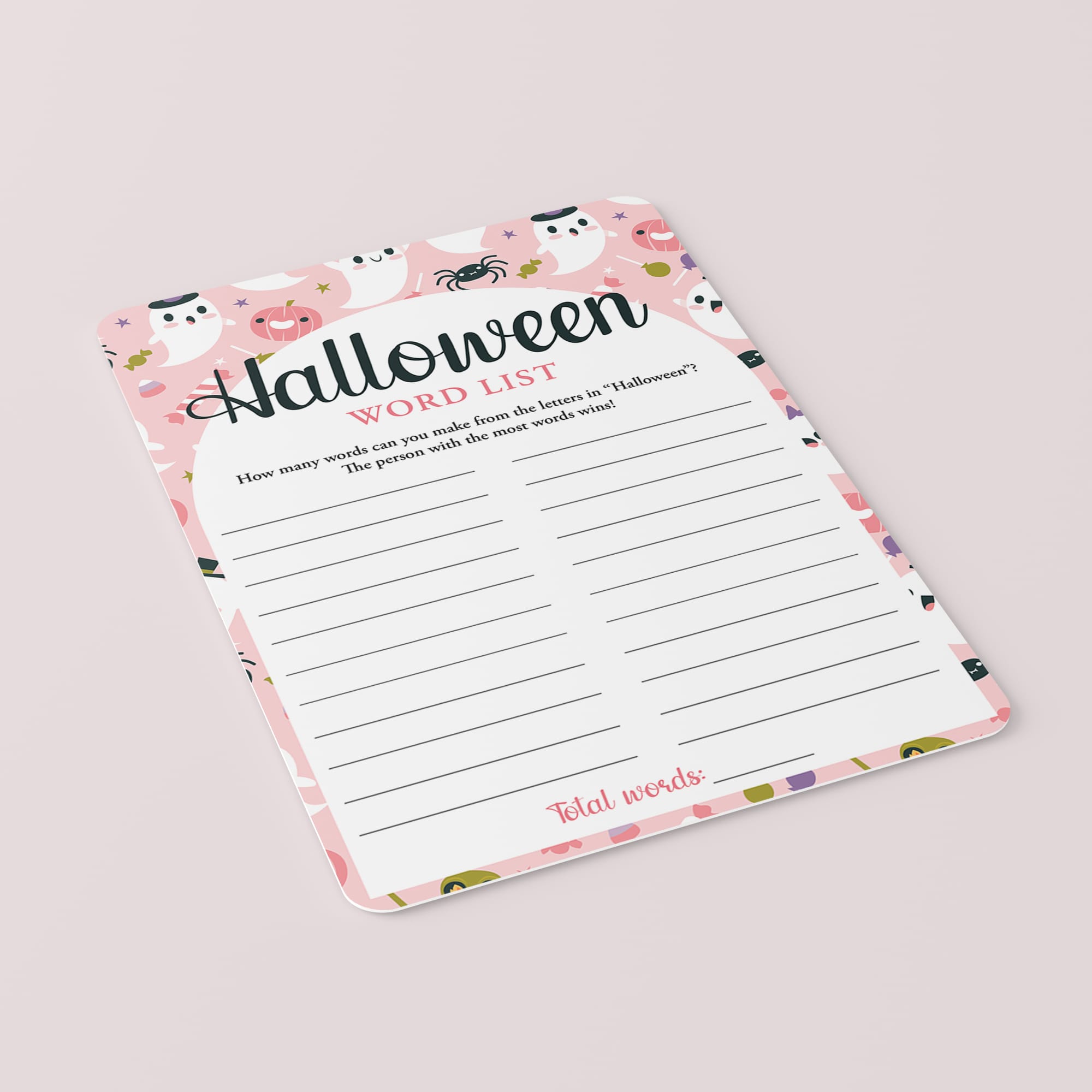 Word games are always a big hit. They are a great challenging activity that kids and adults can both enjoy. Add some fun to your Halloween party and play this girly cute ghosts Halloween Word List game.
