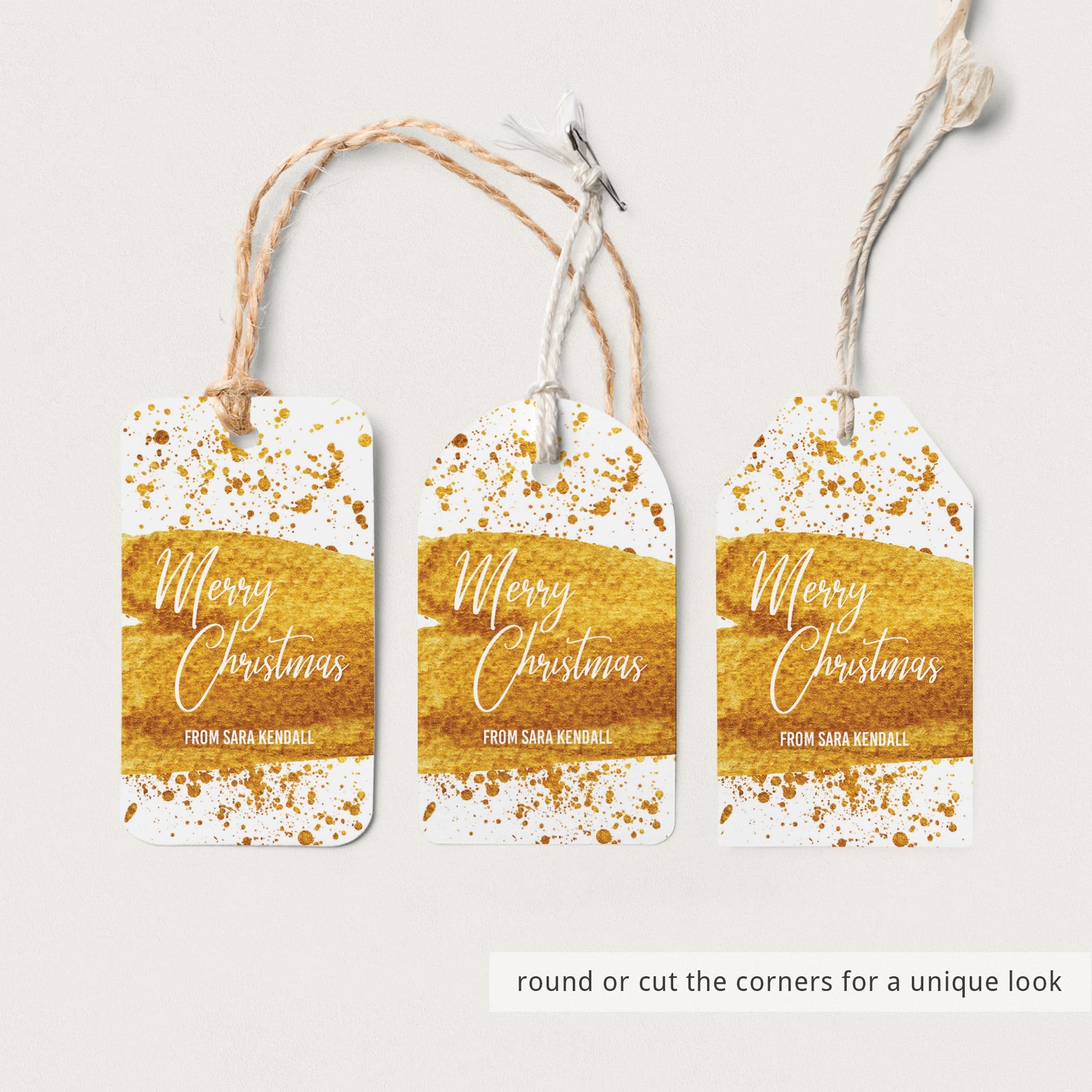 Make your Christmas gifts extra special this year with this modern gold Christmas tag template.