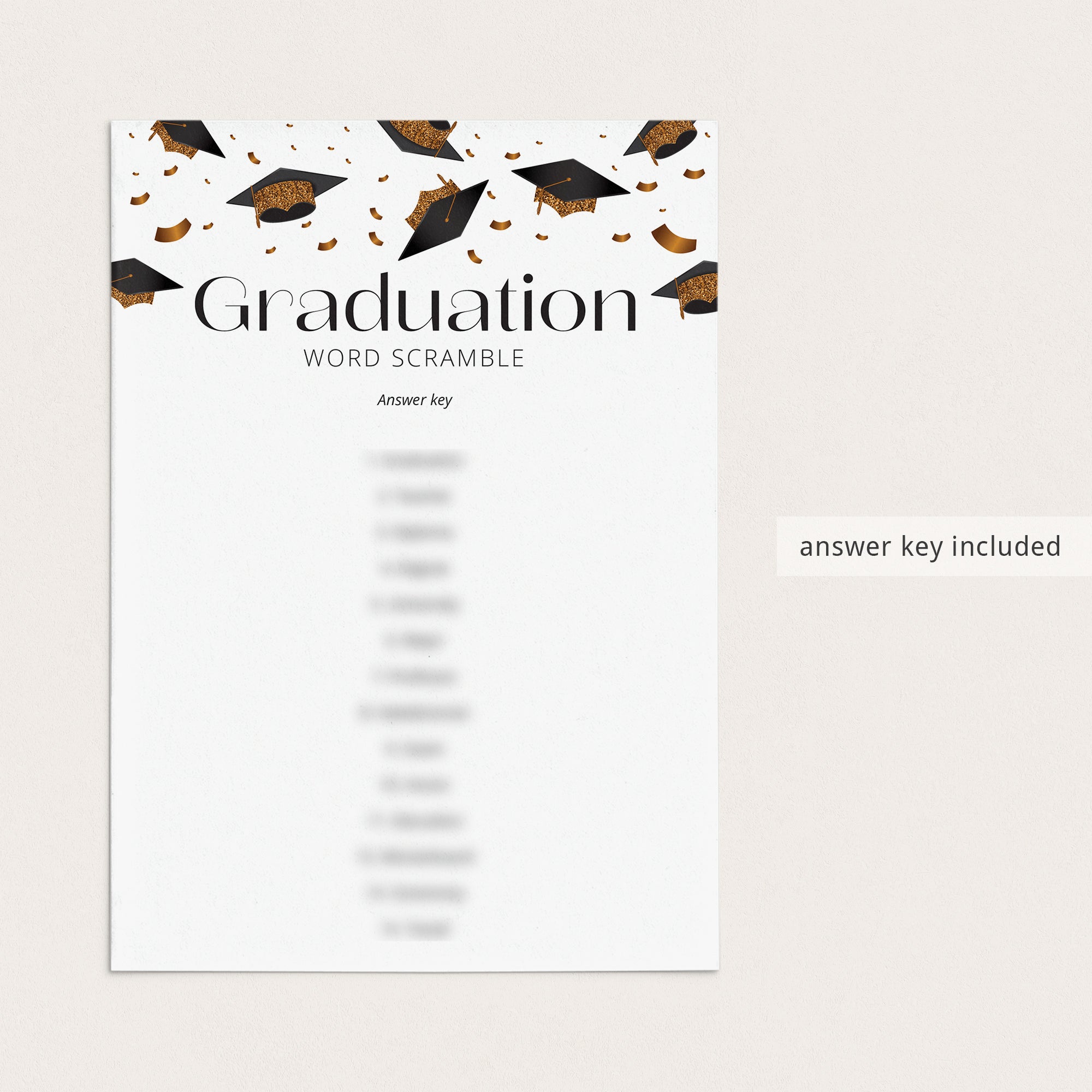 Have everyone try to unscramble the Graduation-related words. Just in case you have trouble figuring out the scrambled words, an answer key is included.