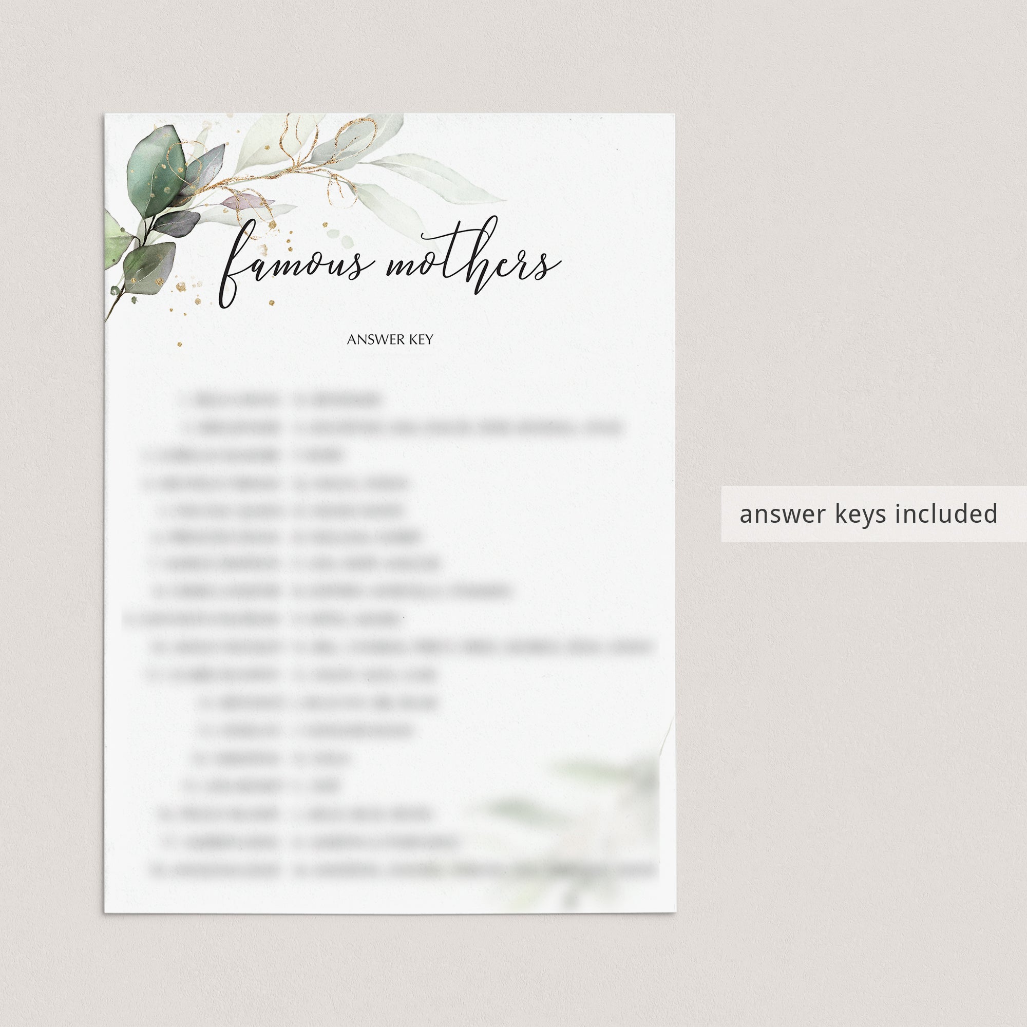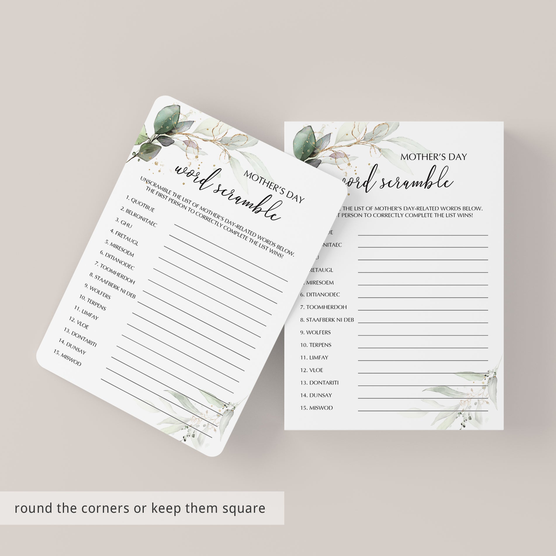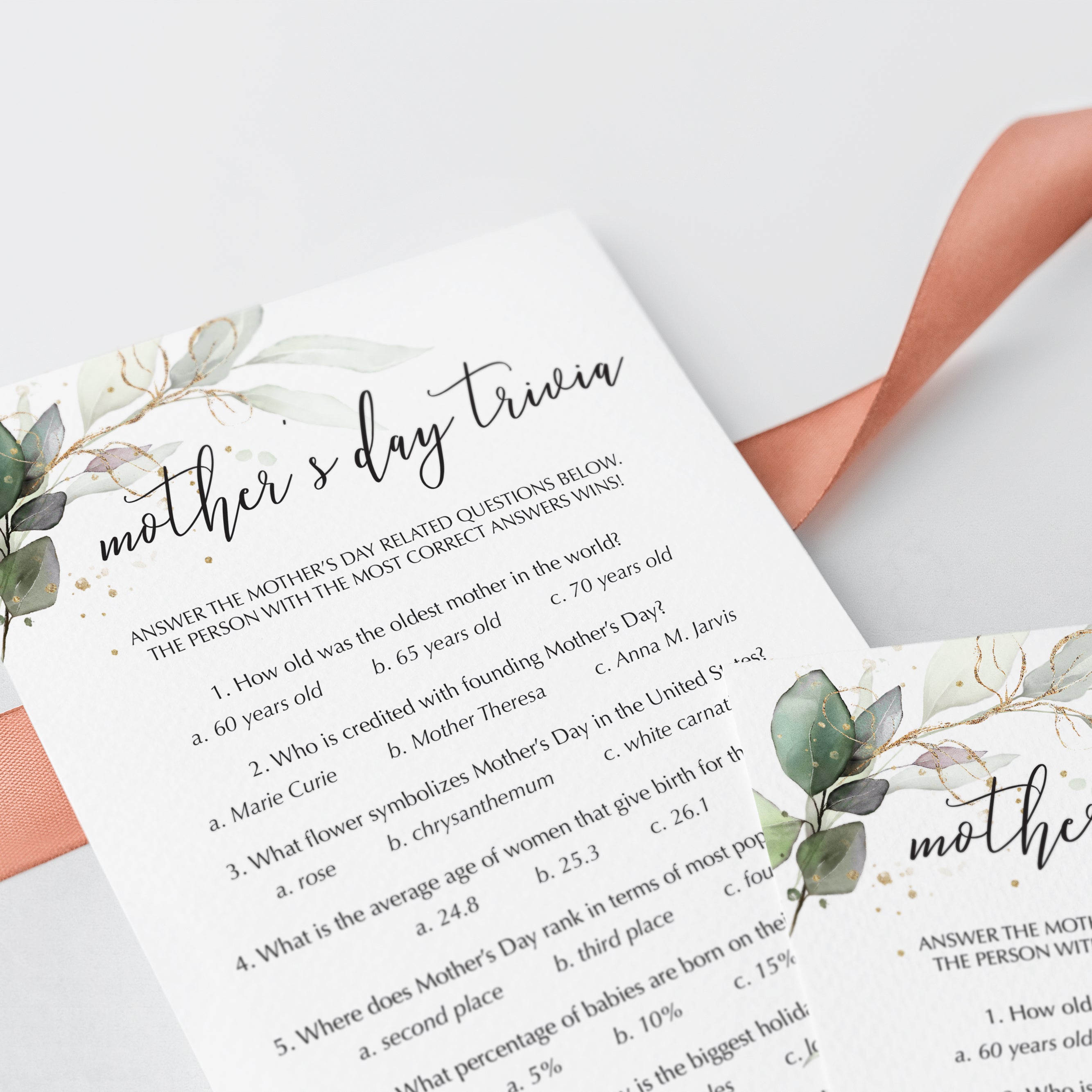 Add some fun to your Mother's Day with this greenery and gold Mother's Day Game Bundle. Whether you’re celebrating Mother’s Day with a large group of extended family and friends, planning an afternoon tea for 30 wonderful woman or simply staying home for some quality time with your mom and siblings, these gorgeous Mother’s Day games are a great way to keep everyone entertained.