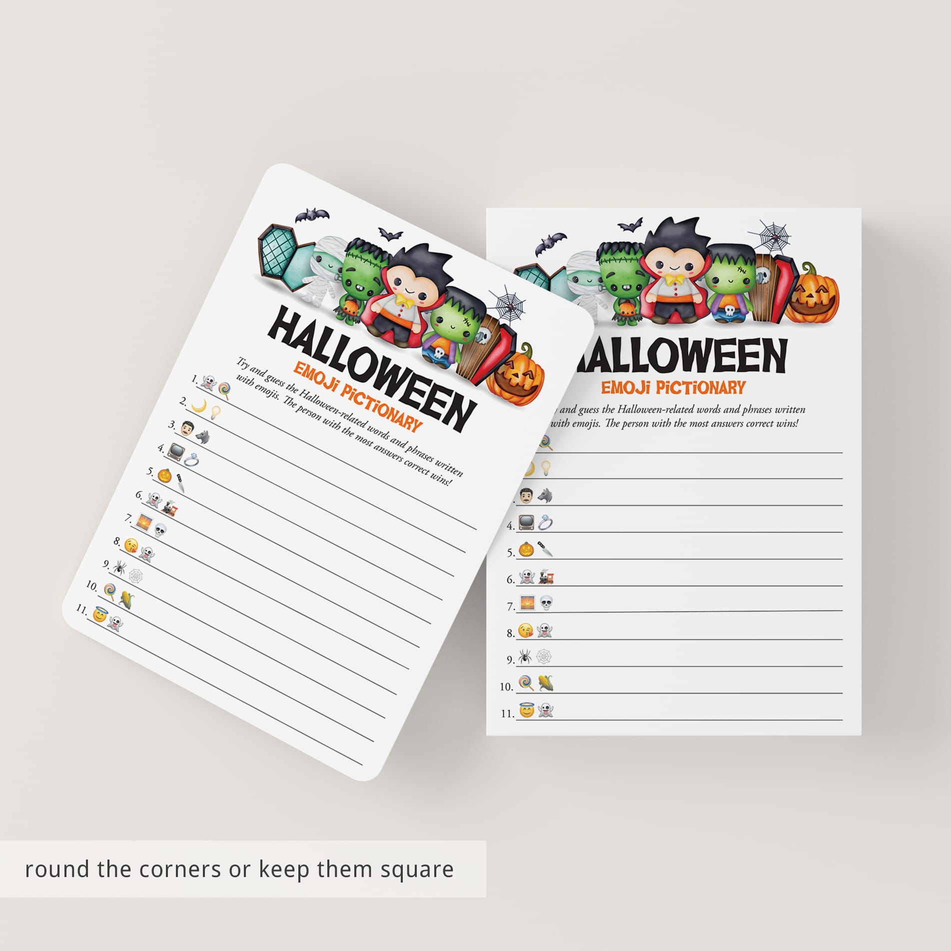 Are you looking for a fun game to play at your Halloween party? Play Emoji Pictionary with this cute Halloween game card. This Halloween party game will be the perfect addition to your Halloween bash.