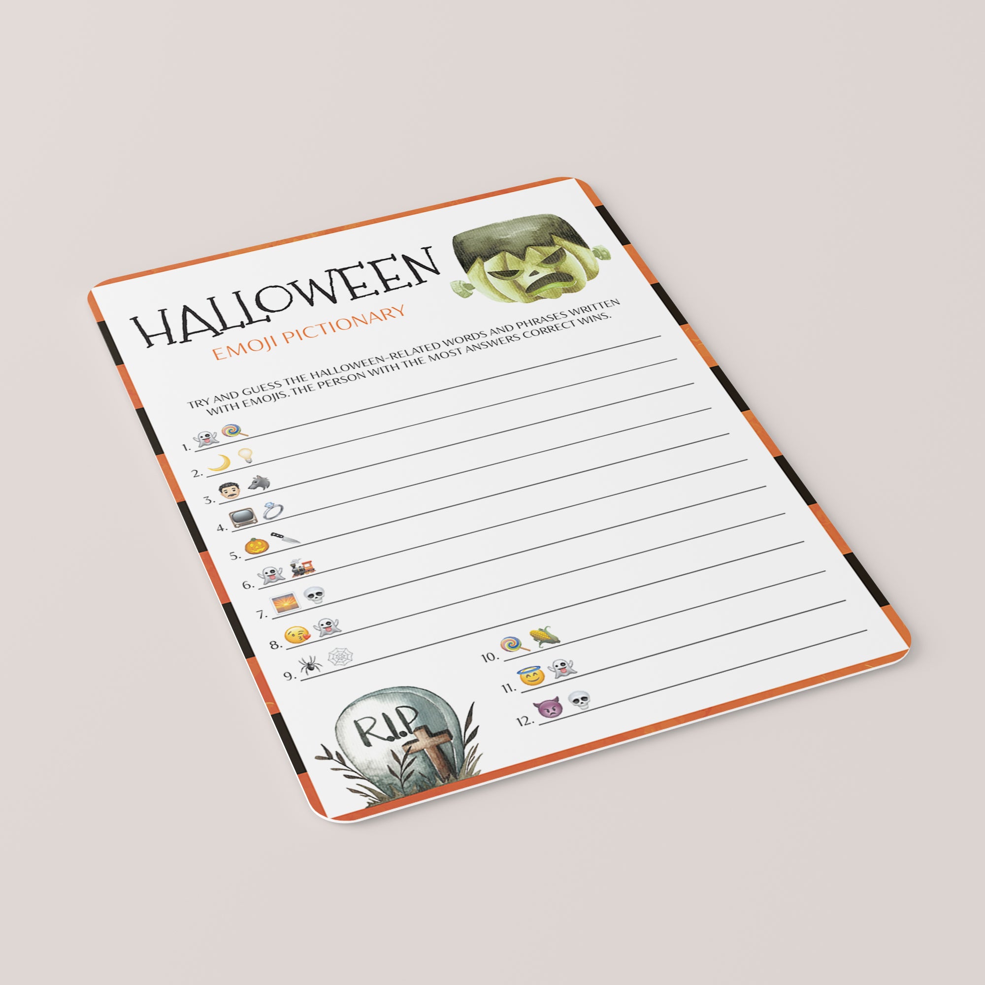Are you looking for a unique game to play at your Halloween party? Play Emoji Pictionary with this creepy Halloween Emoji quiz with evil pumpkin. This Halloween party game will be the perfect addition to your Halloween celebration.