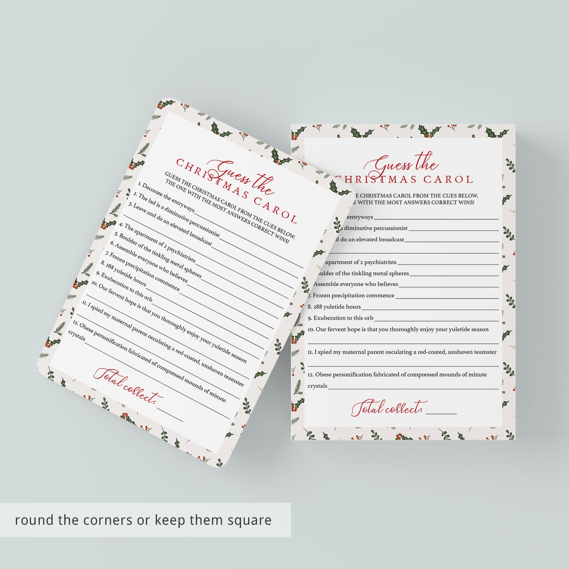 This holiday party games package includes the following 8 games: