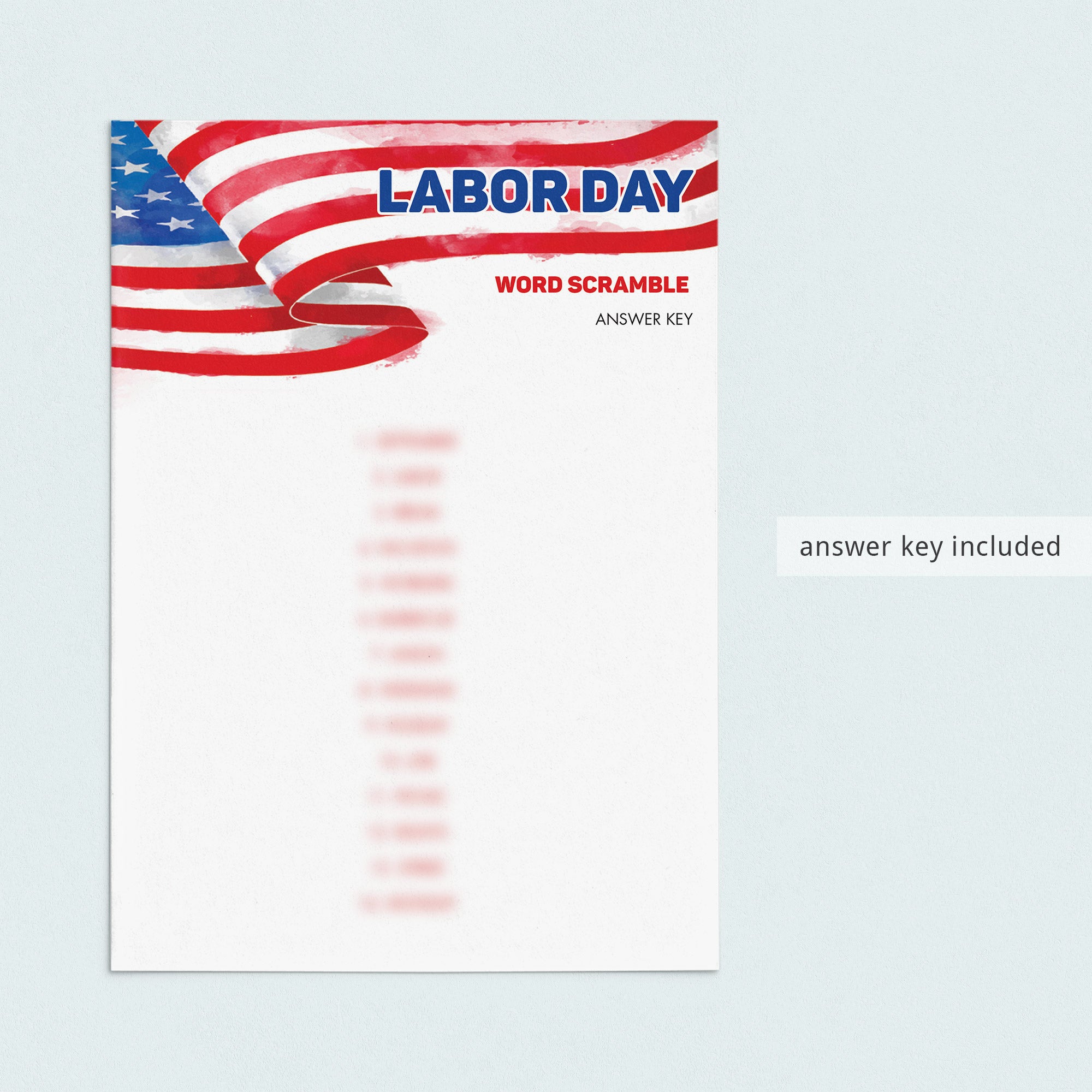 Have everyone try to unscramble the Labor Day-related words. Just in case you have trouble figuring out the scrambled words, an answer key is included.