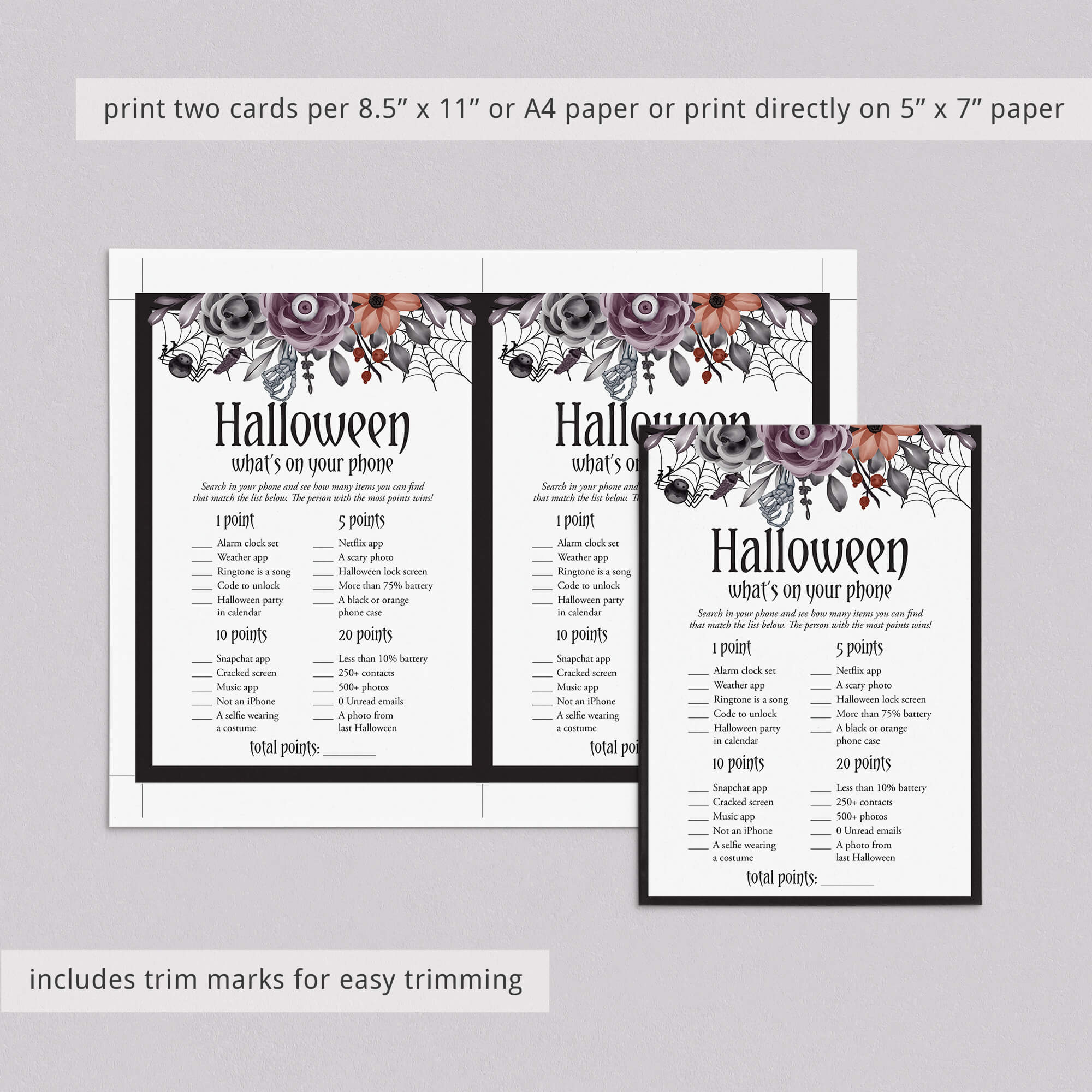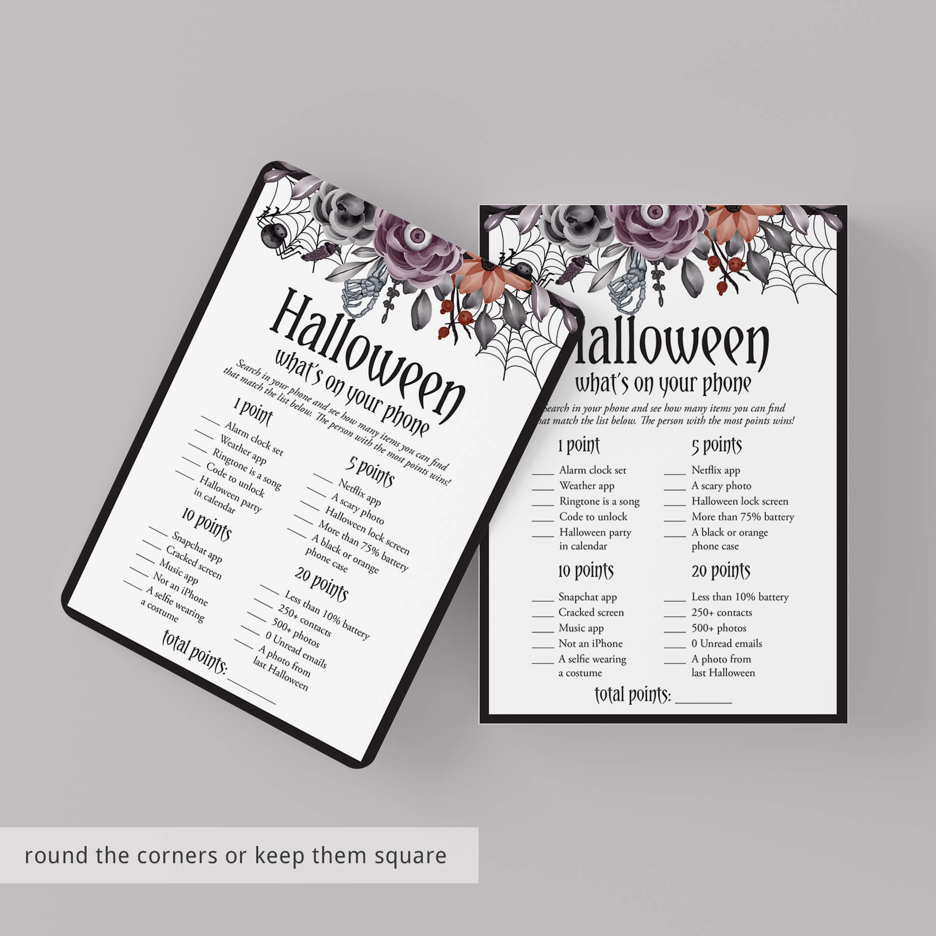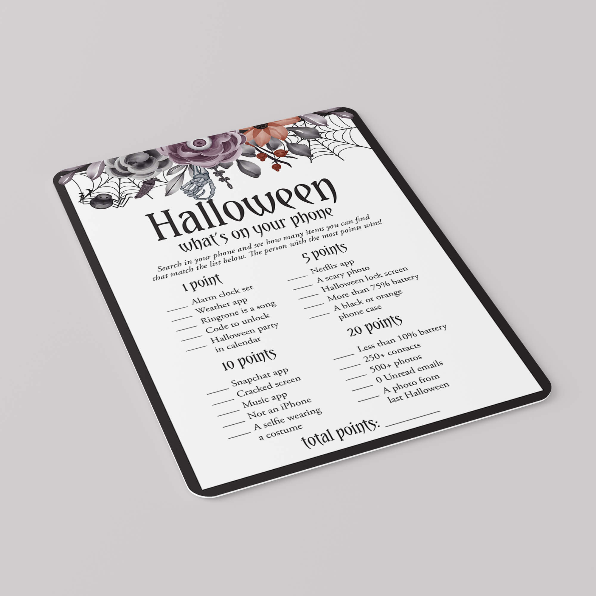 Most people come to a party with just a phone, credit card and keys. What else do you need, right? Does this sound familiar to you? Then this creepy floral Halloween party game What's On Your Phone is the perfect icebreaker for your ladies Halloween party. It’s super easy to prepare for and simple to play.