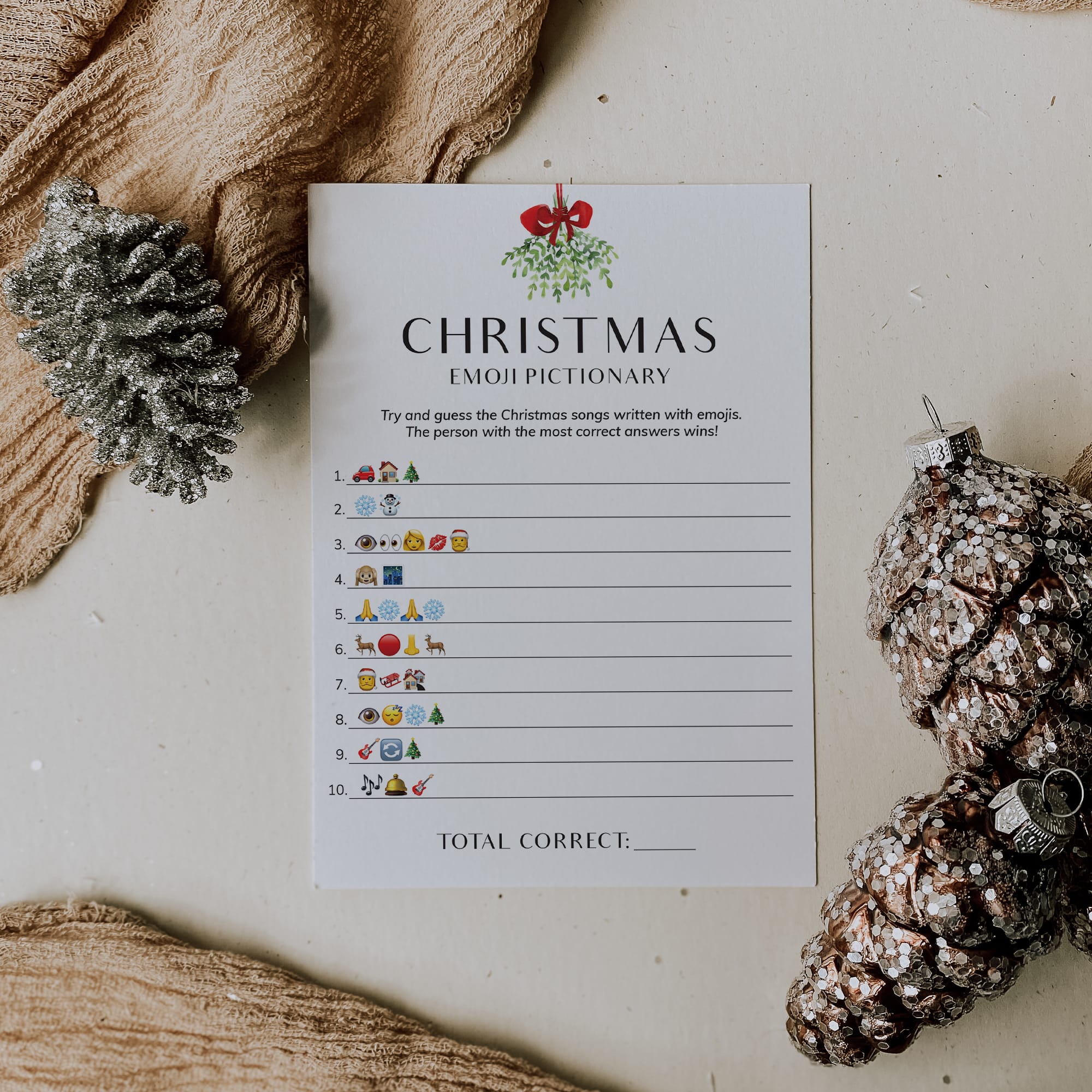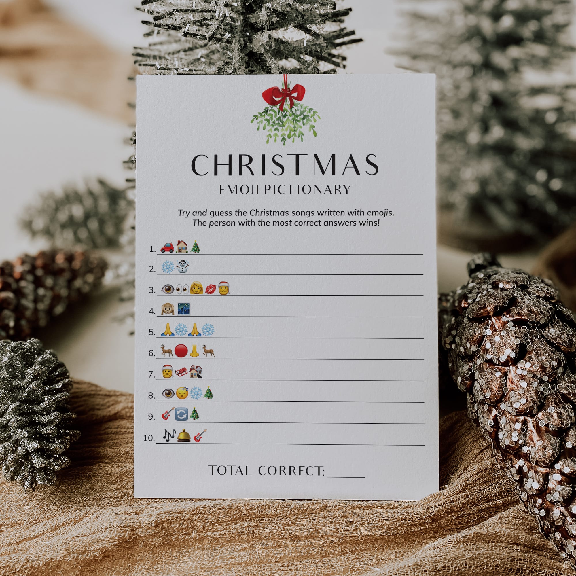 Are you looking for a unique game to play at your holiday party? Play Christmas Emoji Pictionary with this minimal and elegant game card.