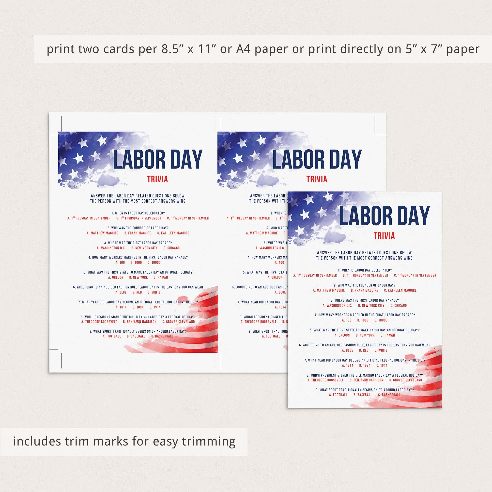 Patriotic Labor Day Party Quiz Printable Instant Download