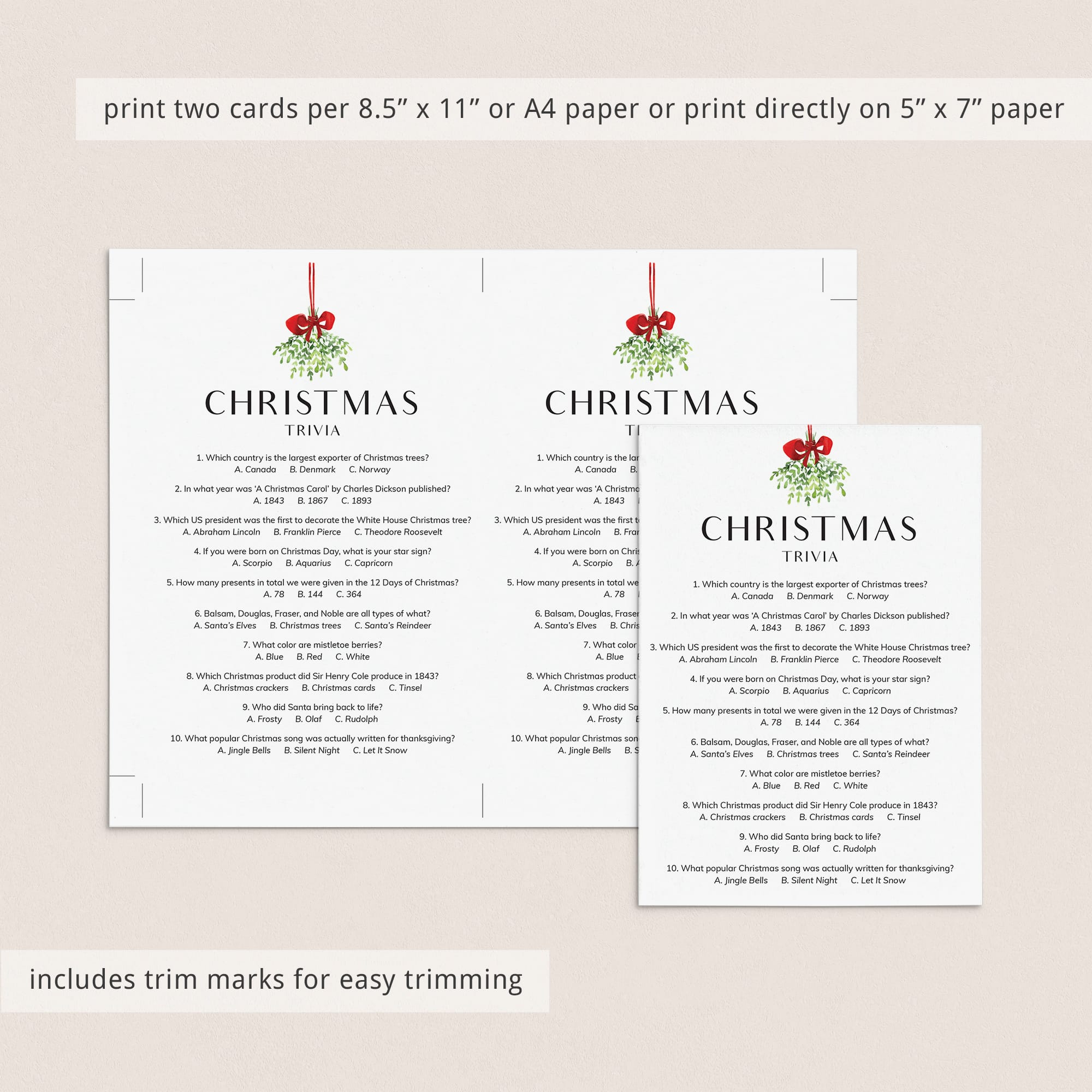 This Christmas trivia is an instant download. After purchase you will receive a download link immediately on screen. Also within minutes of your order and payment, an e-mail will be sent to you with a link for your download.