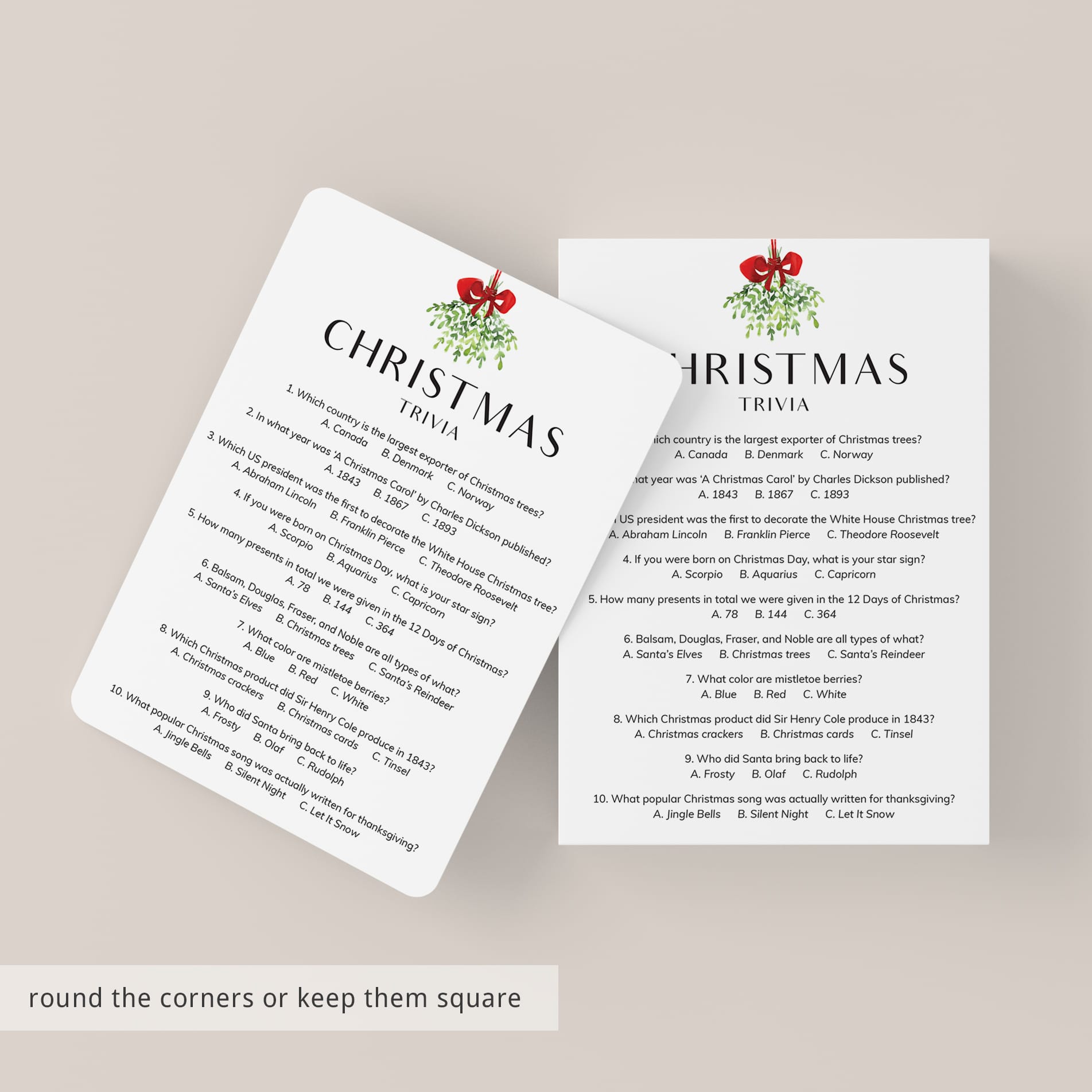 Are you hosting a Christmas party? Use this beautiful Christmas Trivia Quiz with 10 multiple choice questions to test your guests Christmas knowledge. Which country is the largest exporter of Christmas trees? And what popular Christmas song was actually written for Thanksgiving? Play this fun Christmas trivia game to find out! It’s a great challenging game to play at your Christmas office party or Friendsmas game night.
