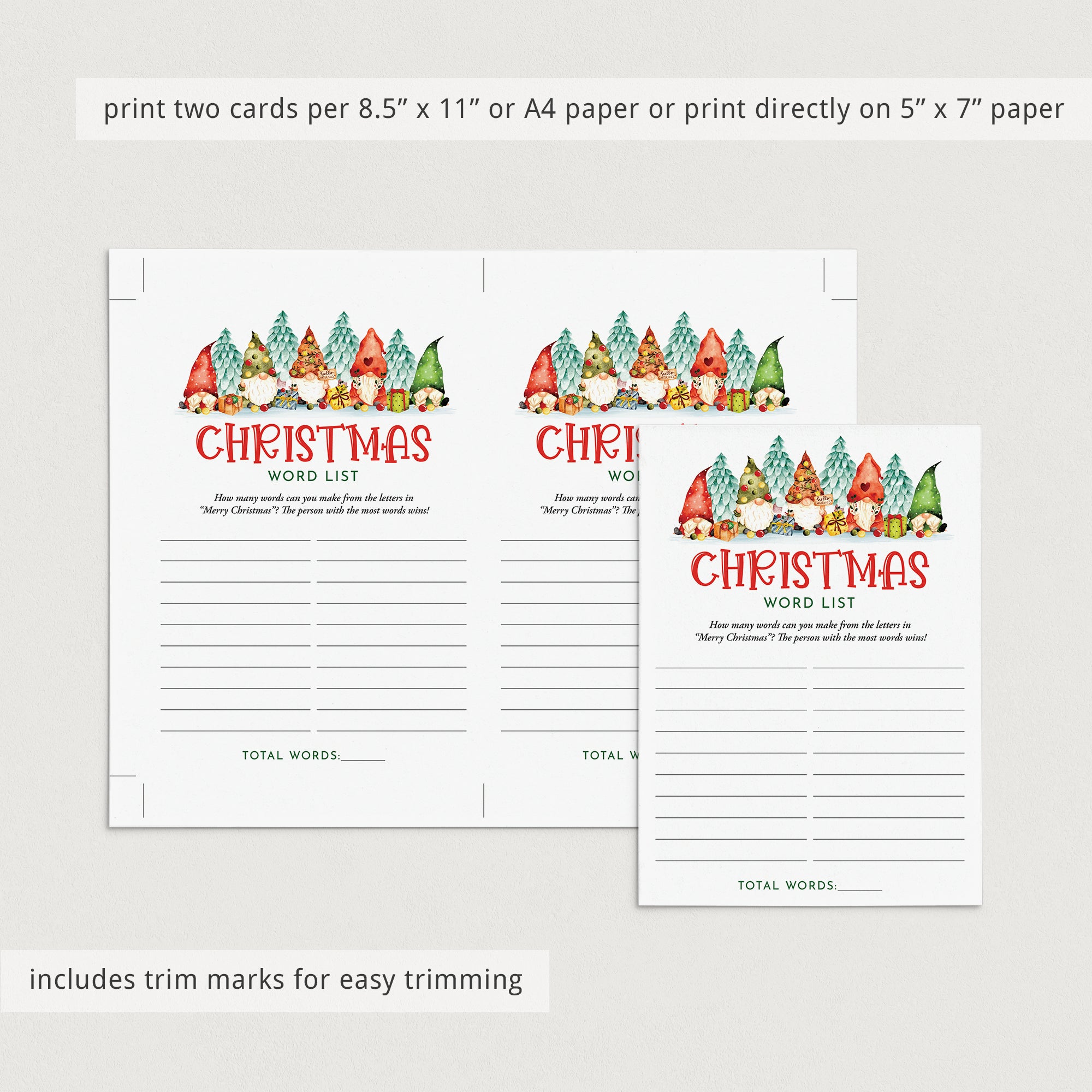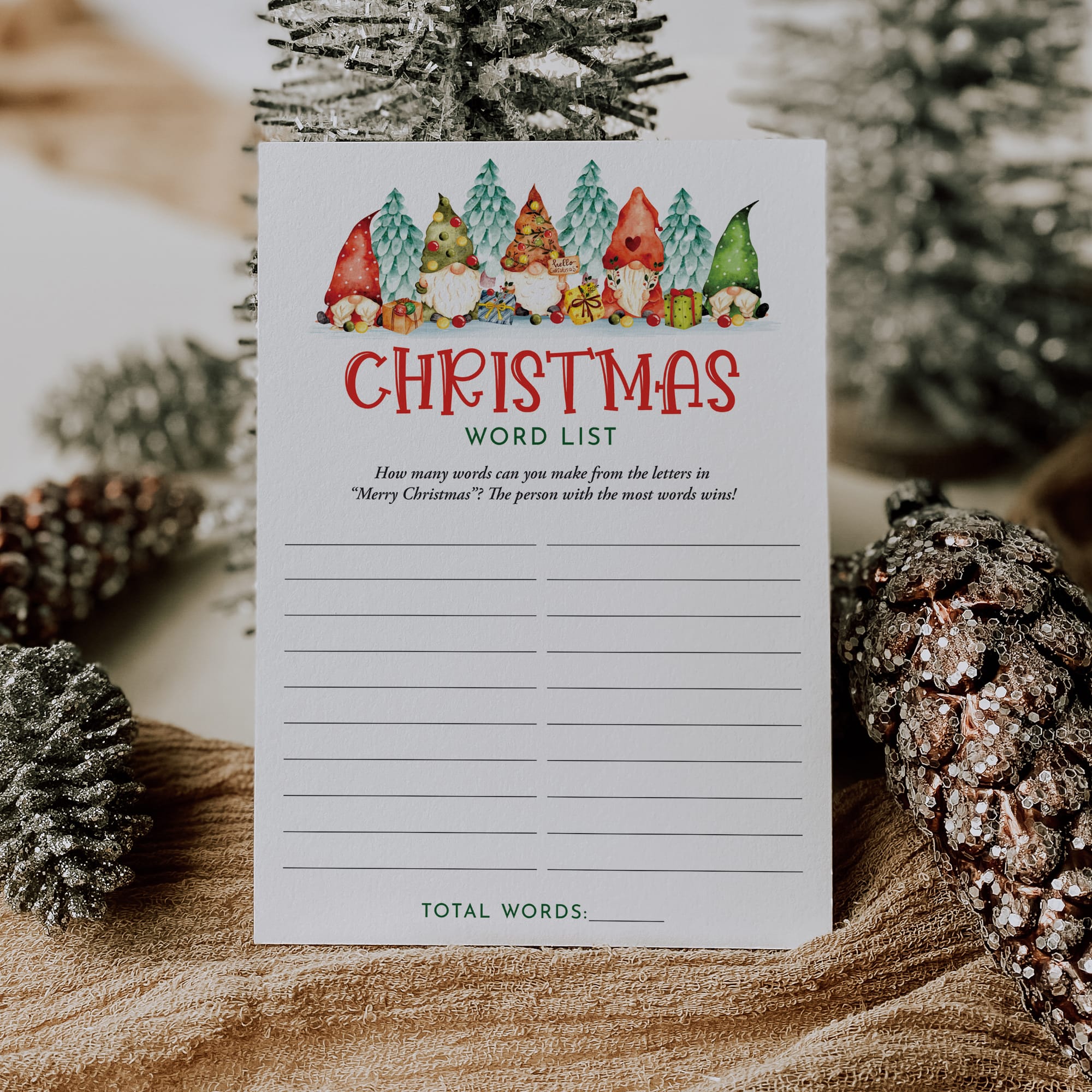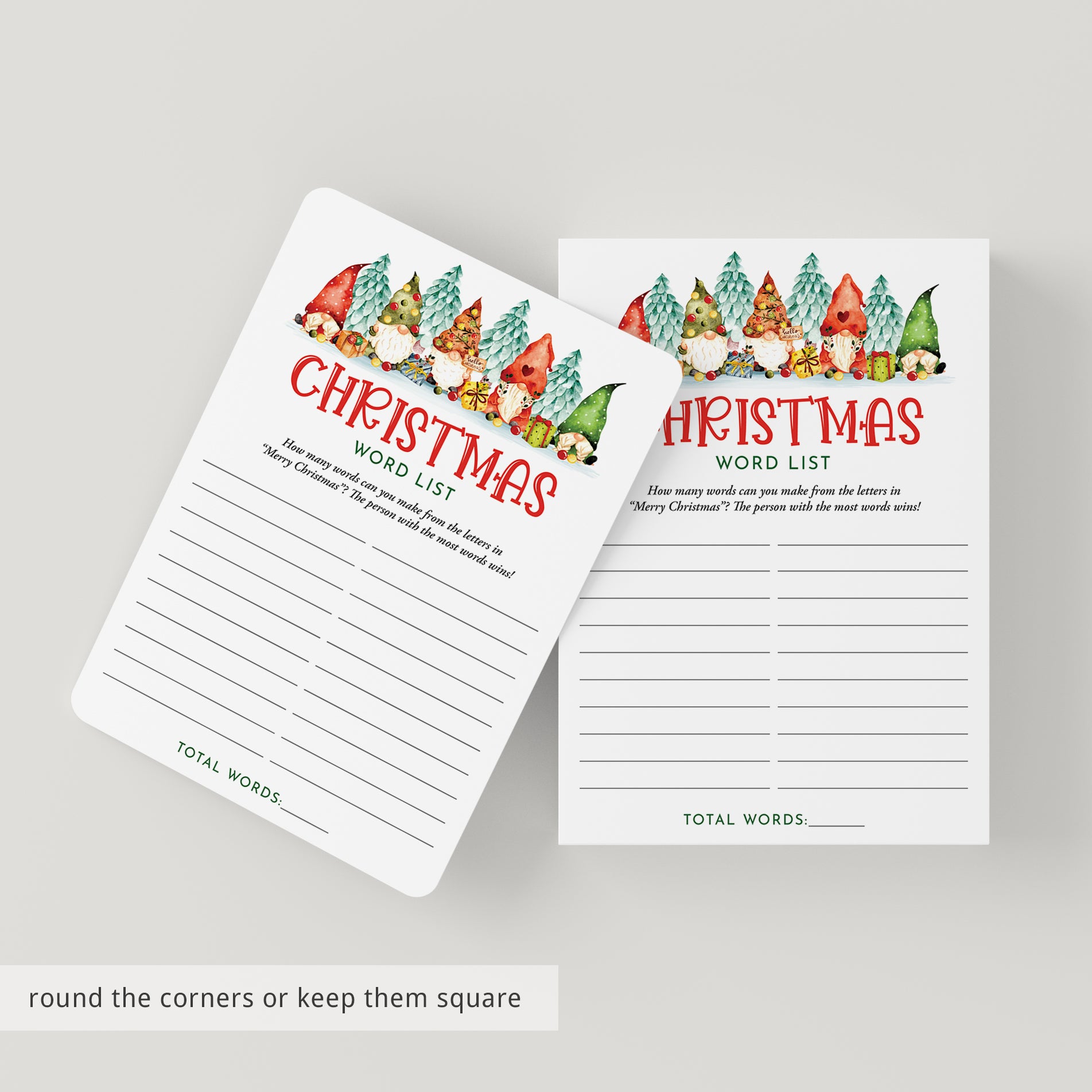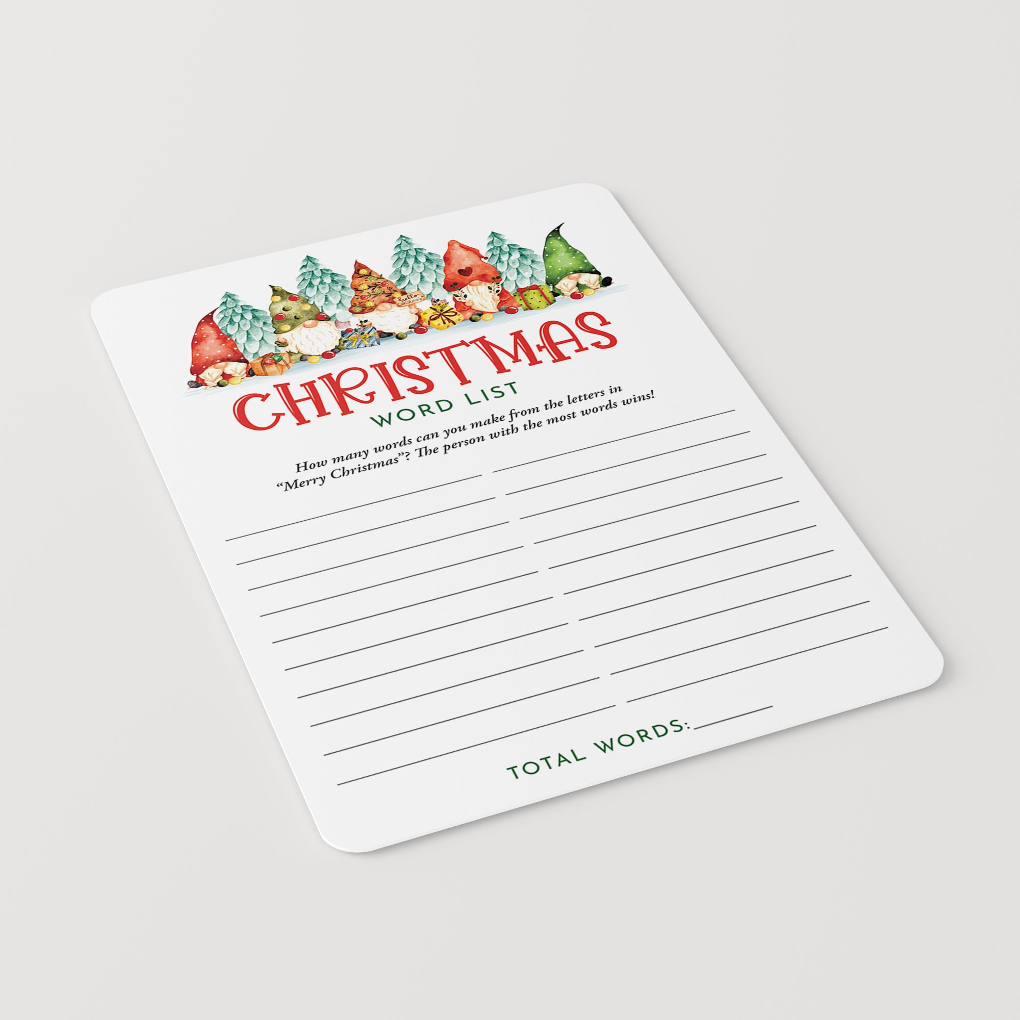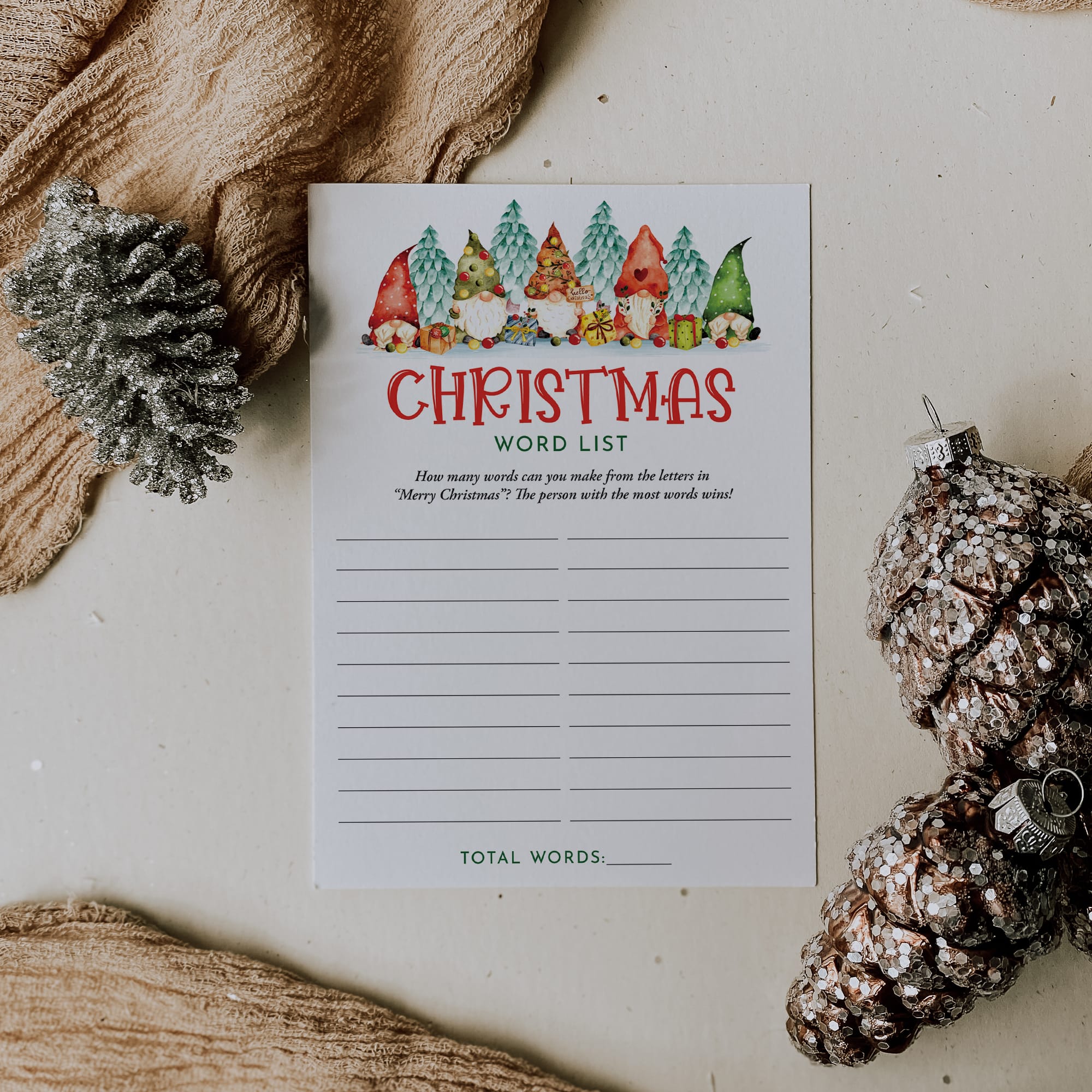 Word games are always a big hit at parties, especially when you are with a large group. They are a great challenging activity that both kids and adults can enjoy. Add some fun to your Christmas party and play this fun Christmas Word List game with cute Christmas gnomes.