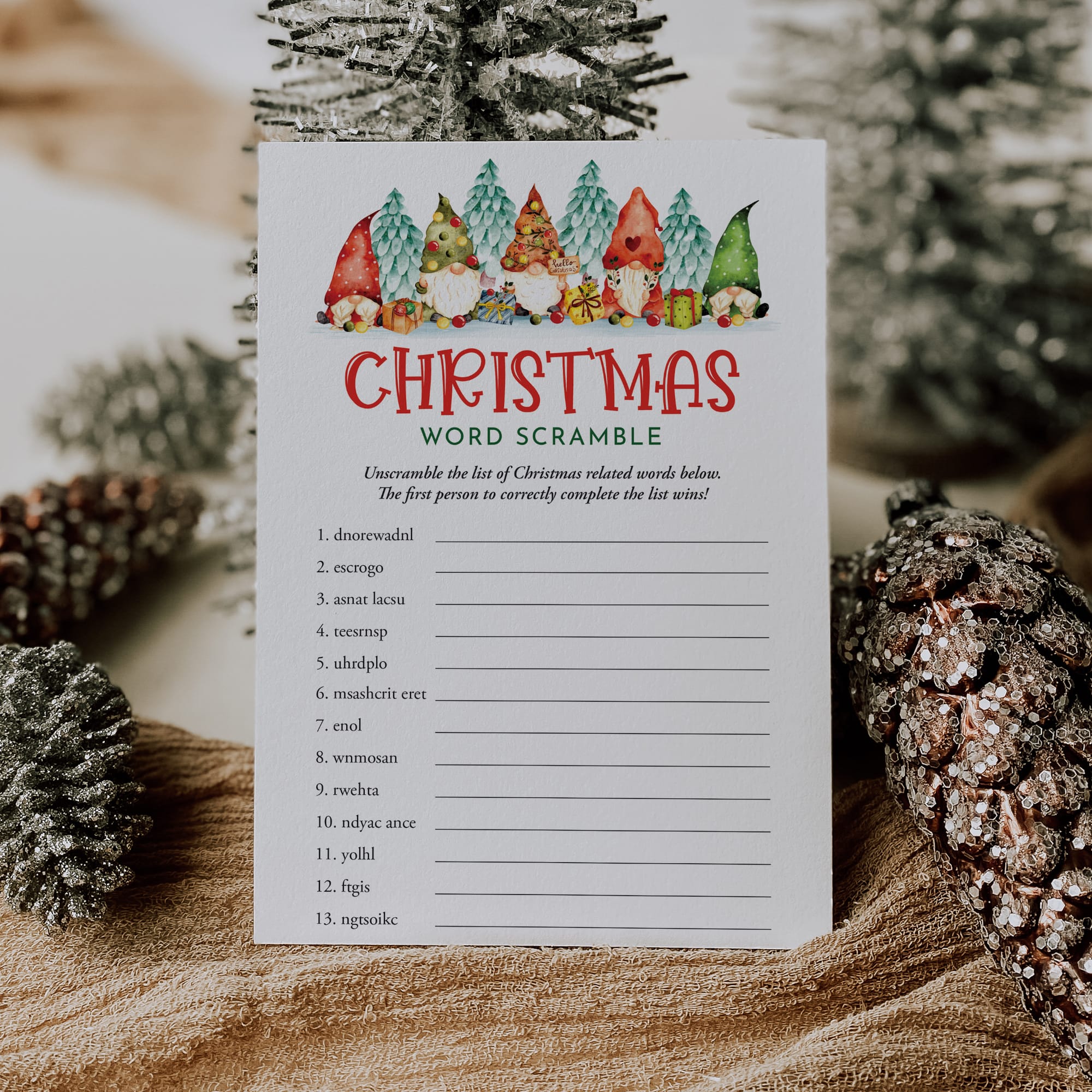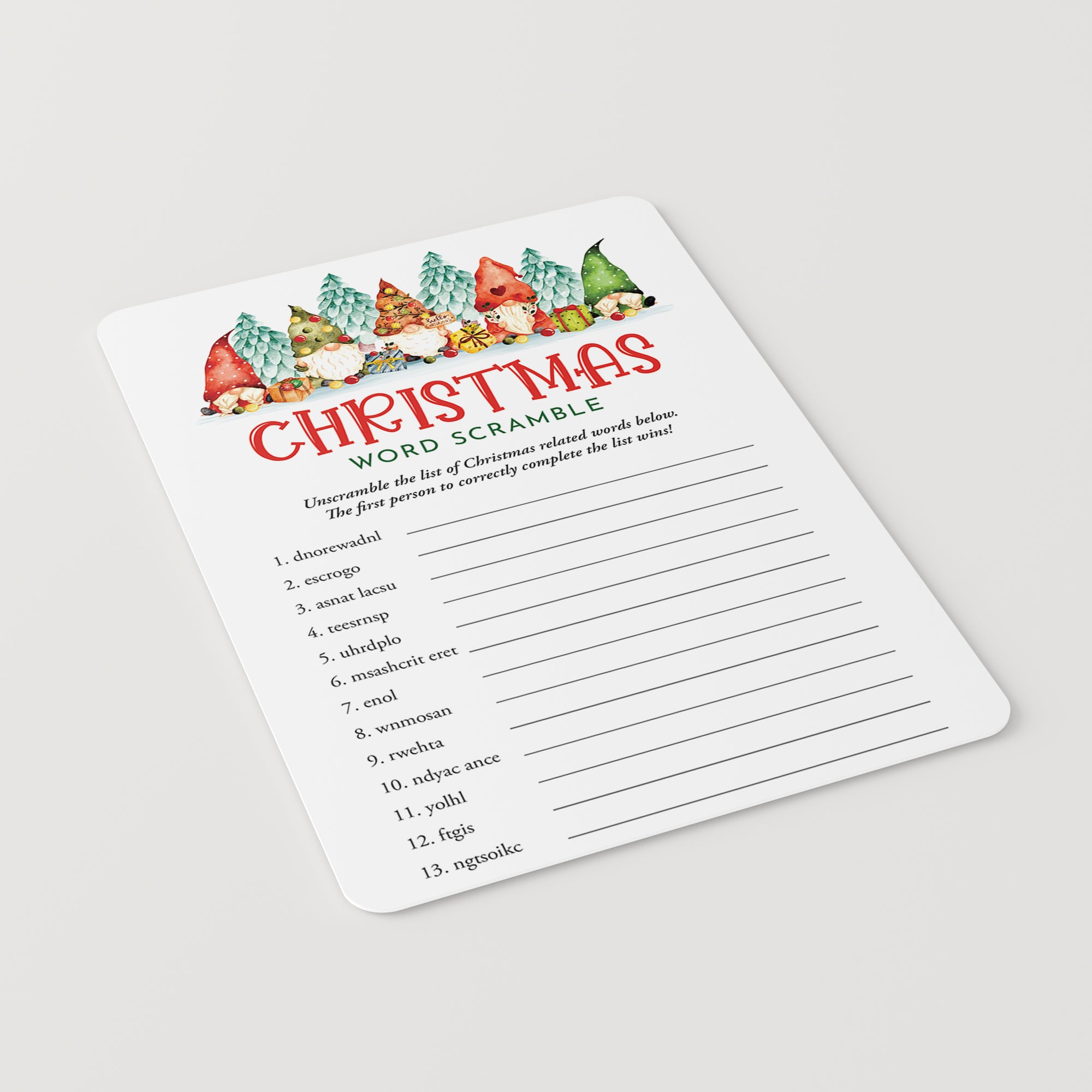 Add some extra joy to the holiday season with this fun Christmas Word Scramble game with cute Christmas Gnomes.