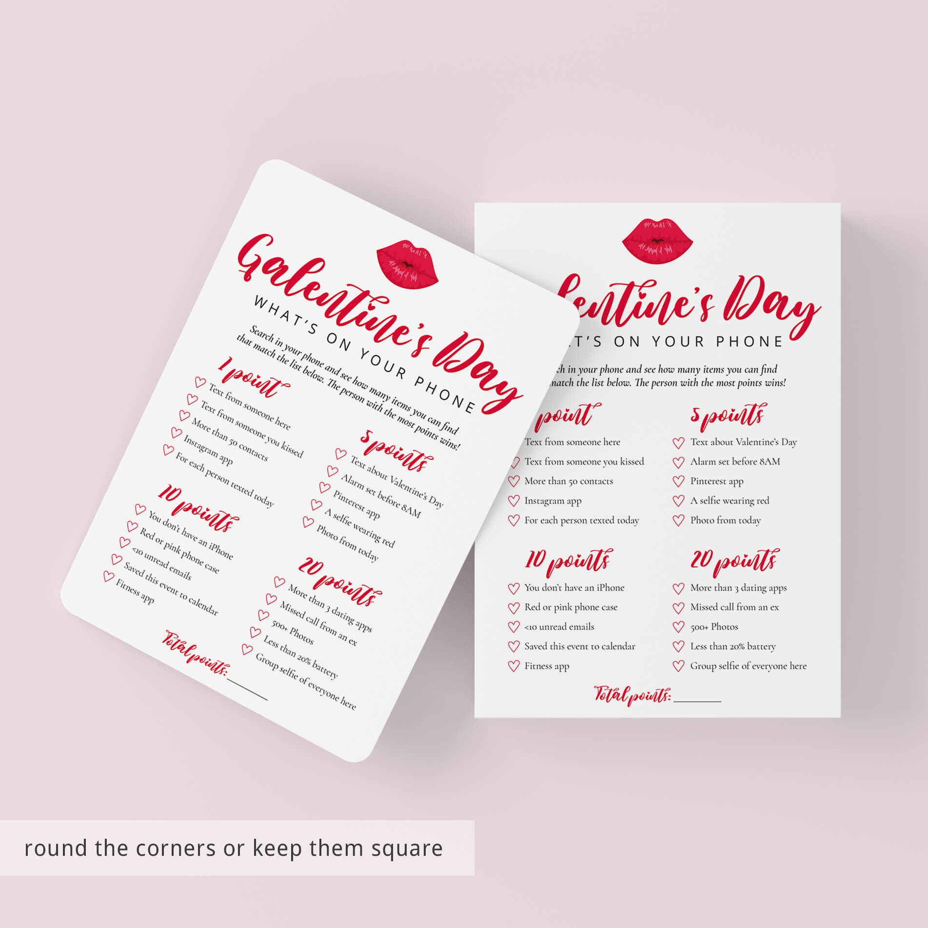 All guests need to play is a smartphone and one of these red What's On Your Phone game cards with kissing lips.