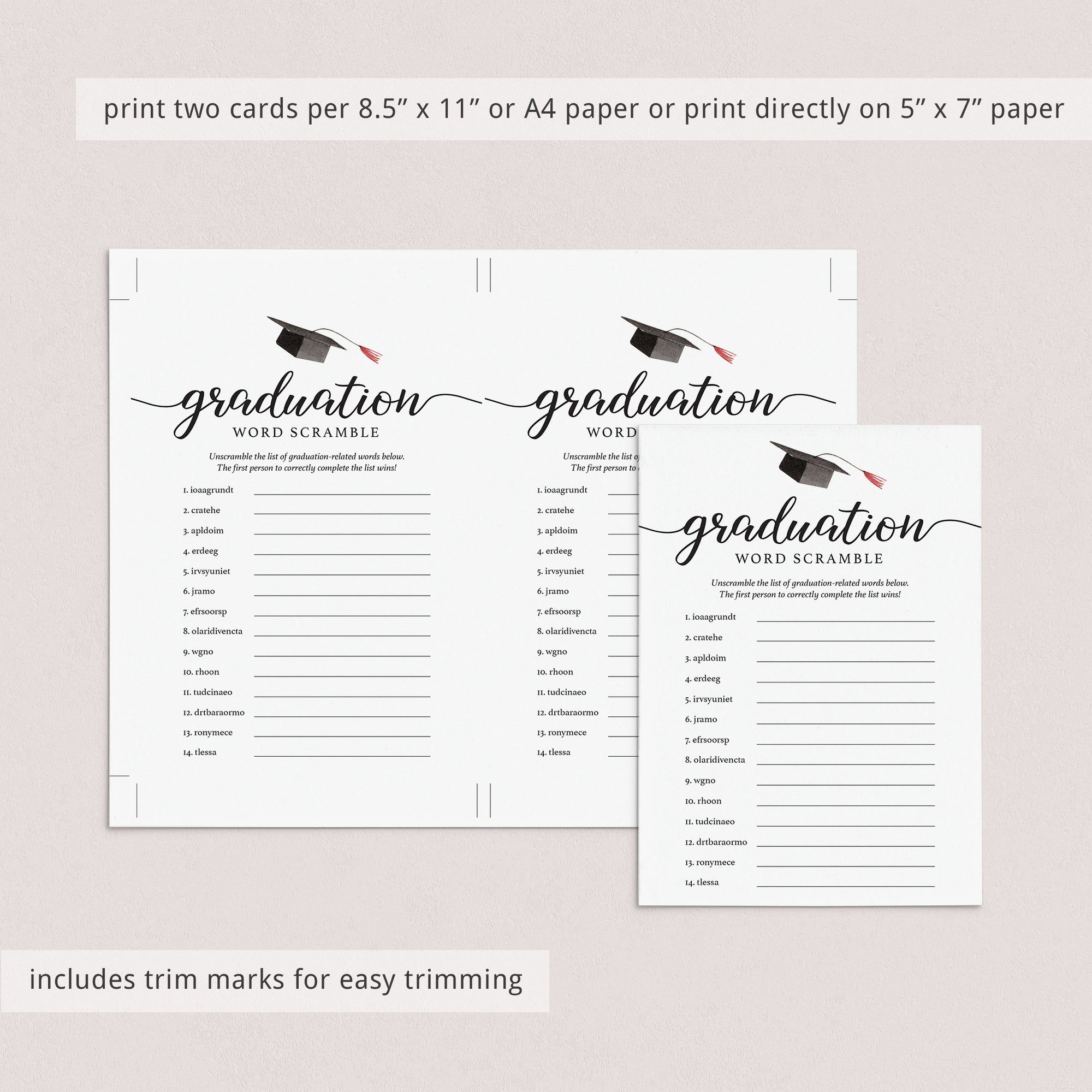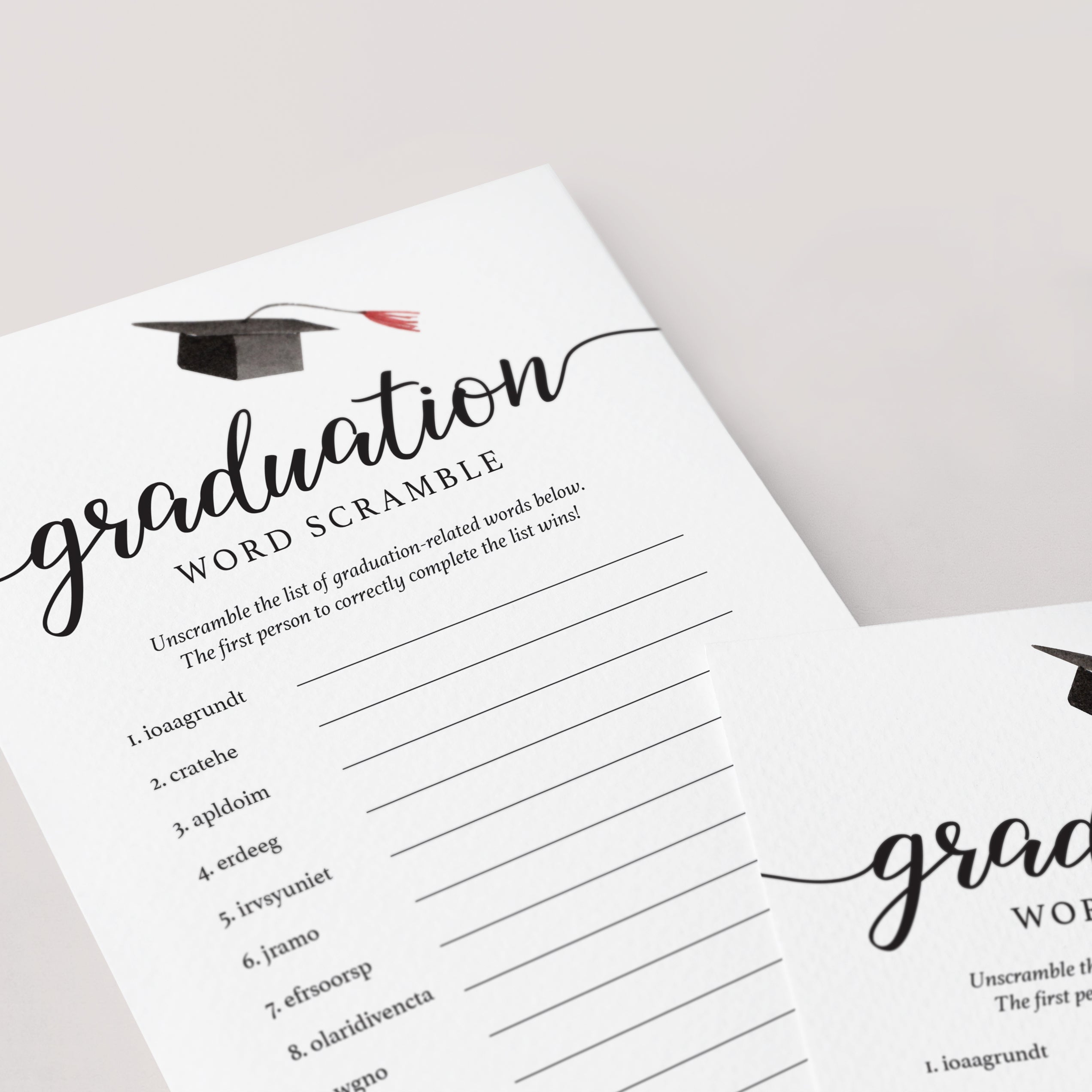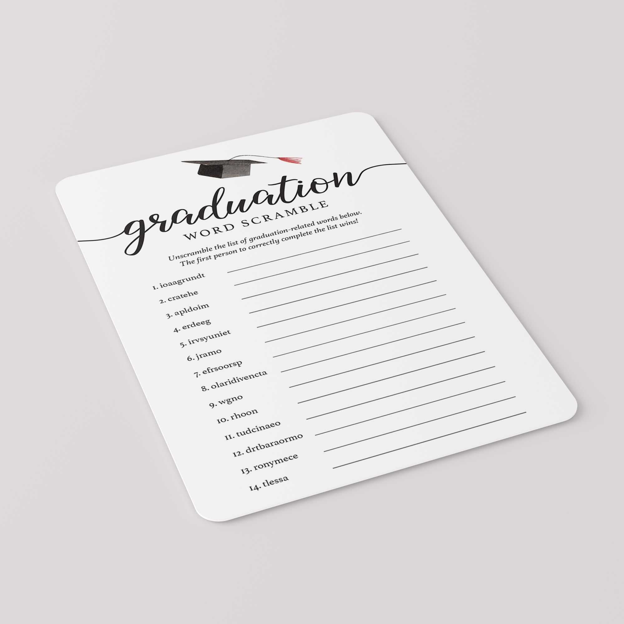 Are you hosting a Grad Party? Add some extra fun with this simple, yet elegant, graduation word scramble game. It's a ton of fun for all ages. Play this graduation game at a high school graduation party, college graduation party or even a preschool graduation. Games are a must for every grad party!