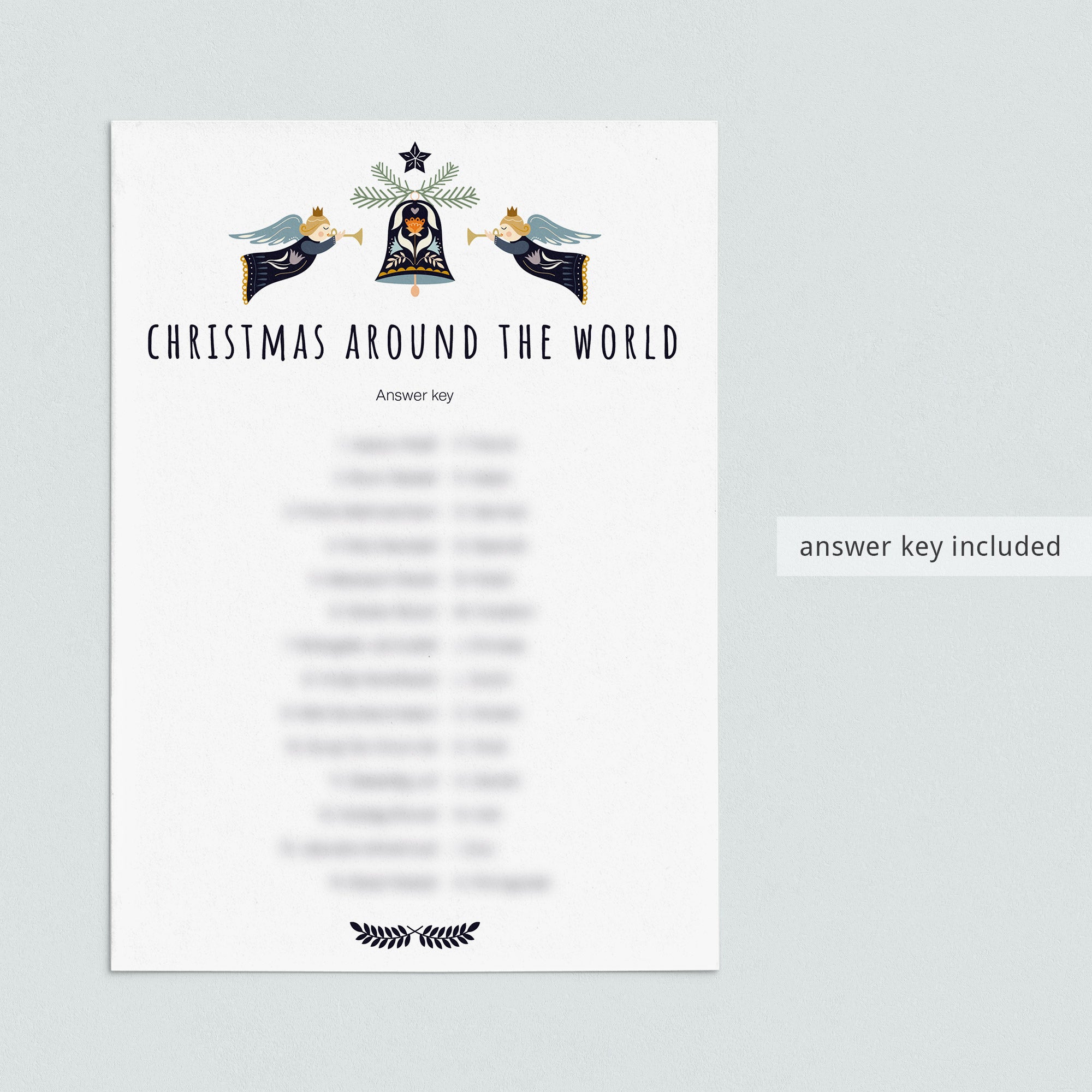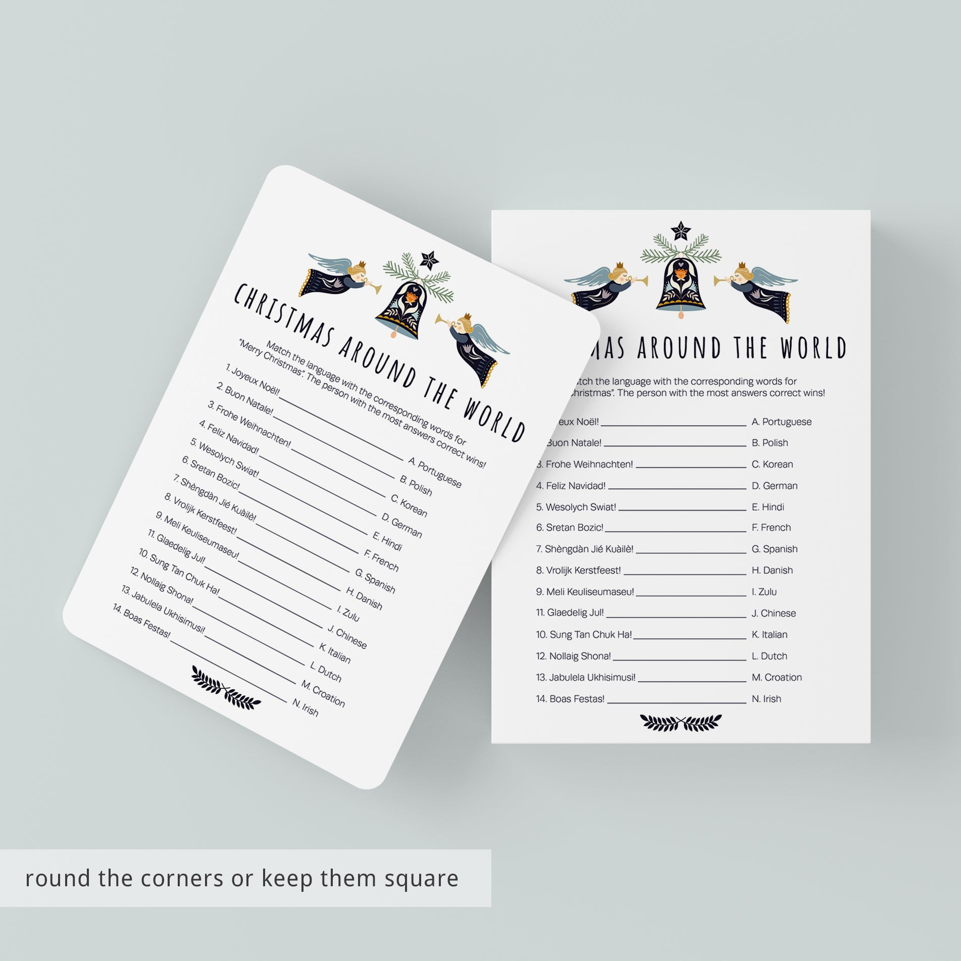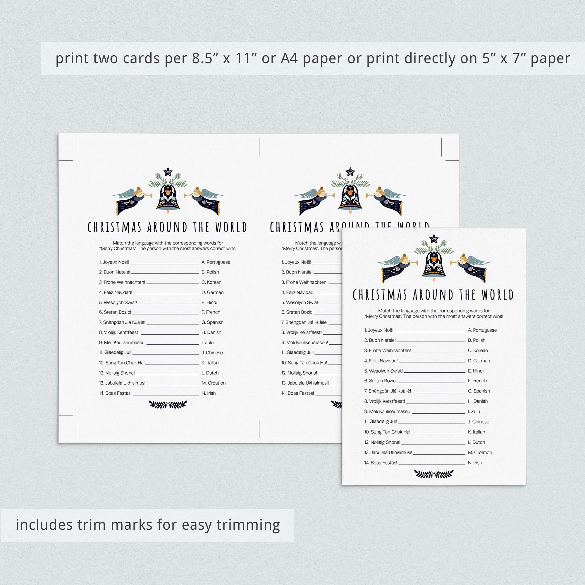 The game is very easy to play. Print and distribute these Around The World Christmas game cards and a pen to each of your guests. The have to match each version of the words “Merry Christmas” with its language of origin. The person with the most correct answers wins.