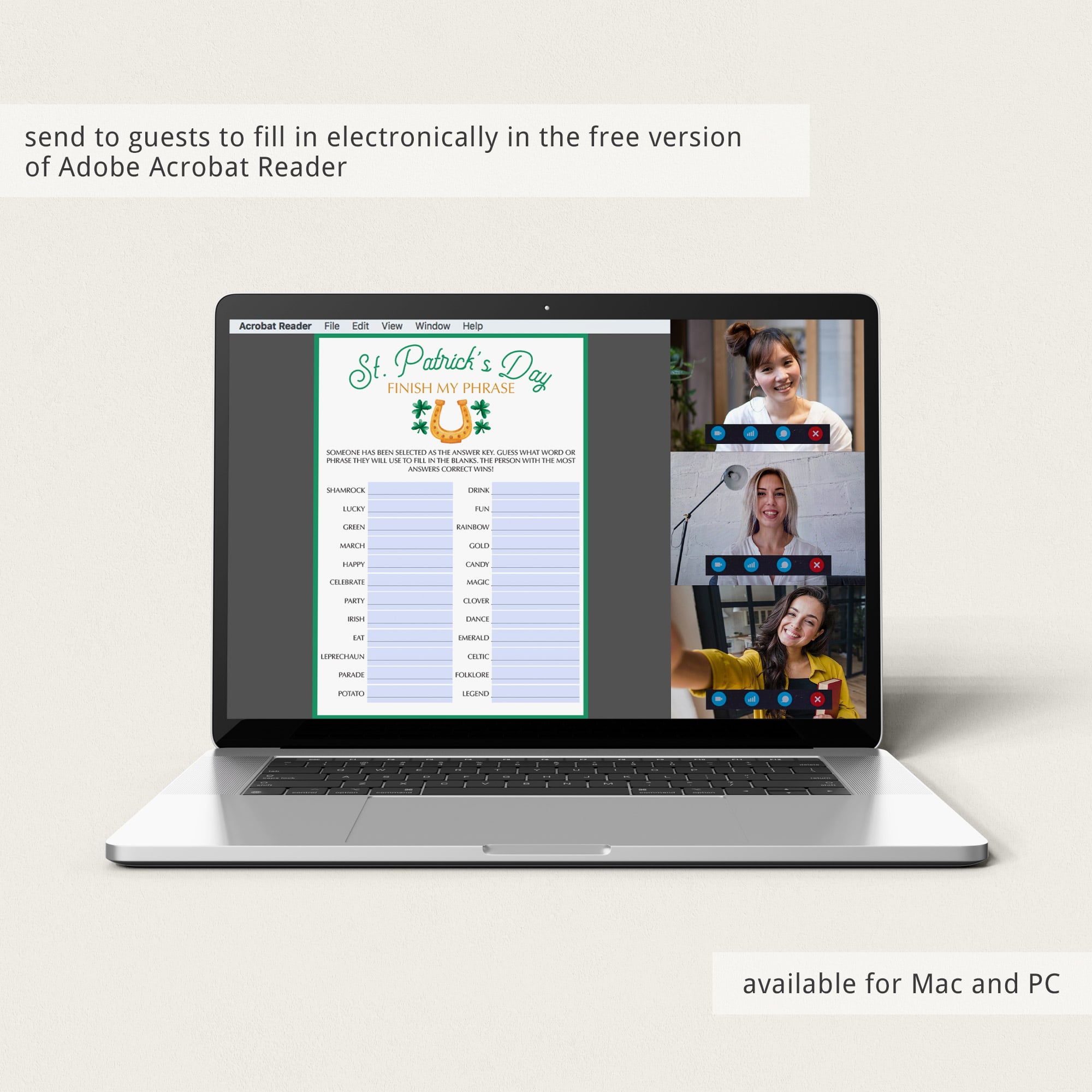 And if you want to play this St Patrick's Day game online on Zoom or Teams, you can email the game cards to your friends and have them fill in the words electronically in the free version of Adobe Acrobat Reader.
