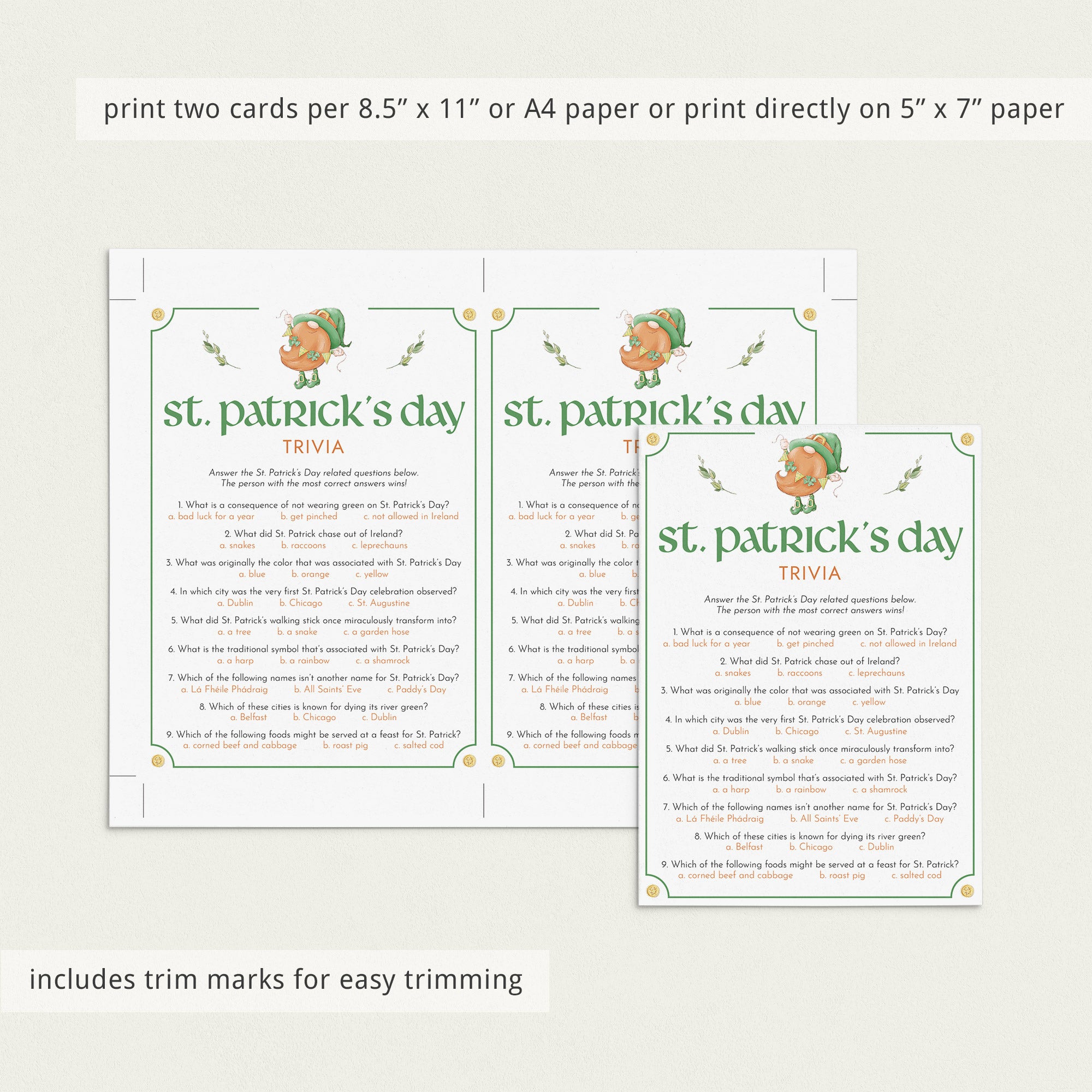 This St Patrick's Day trivia is an instant download. After purchase you will receive a download link immediately on screen. Also within minutes of your order and payment, an e-mail will be sent to you with a link for your download.