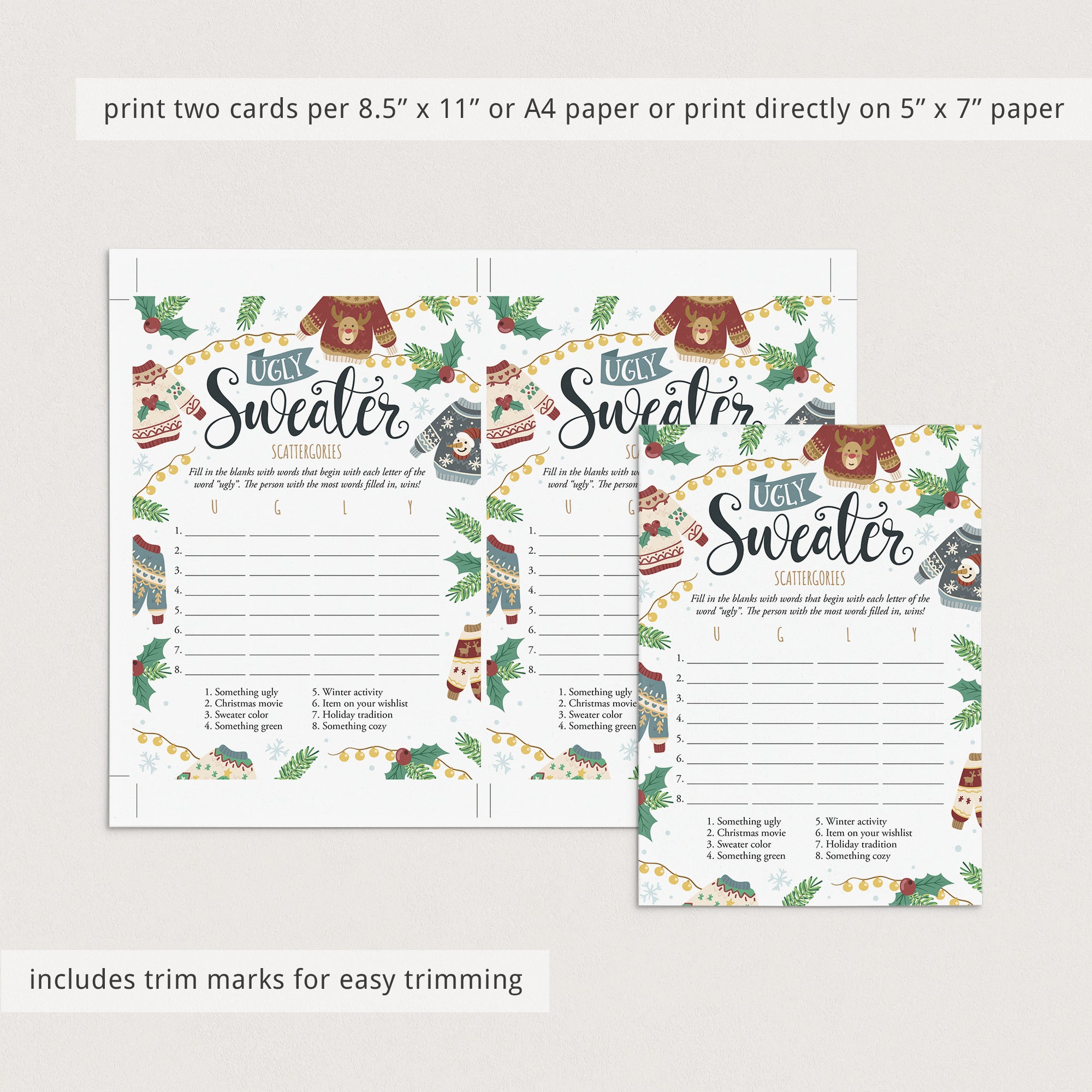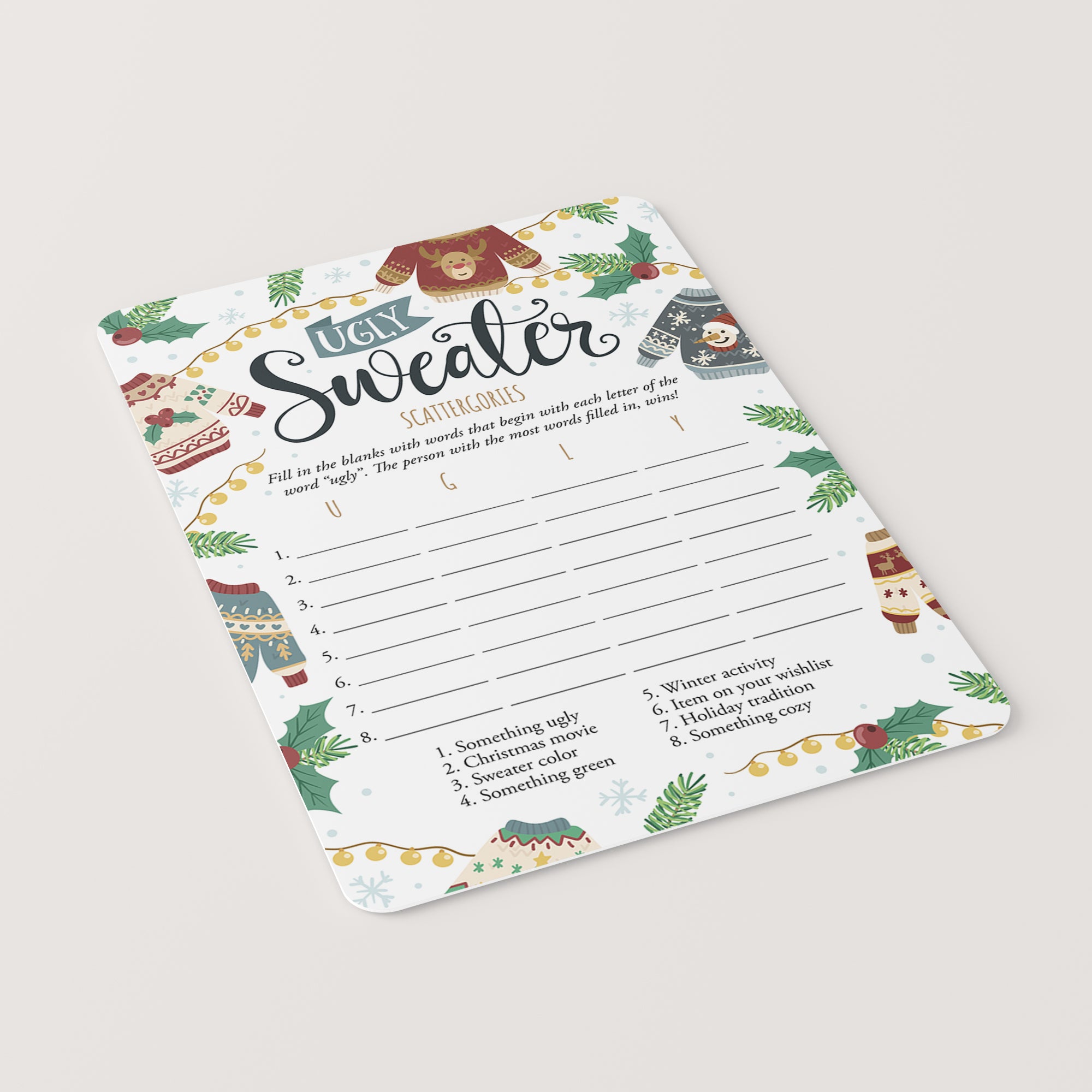 Ugly Christmas Sweater Game Scattergories Printable by LittleSizzle