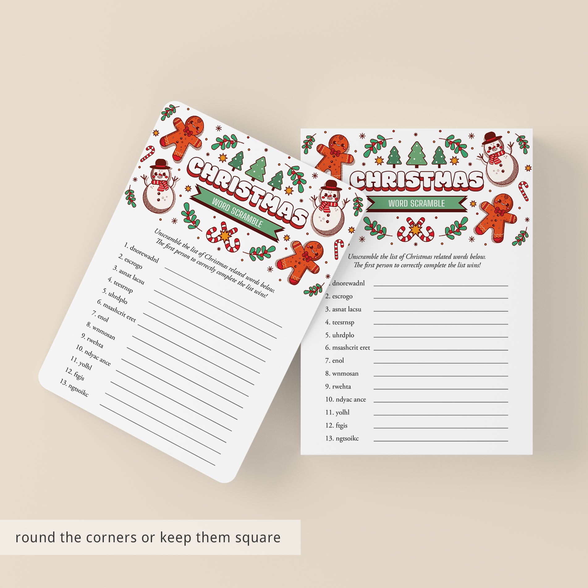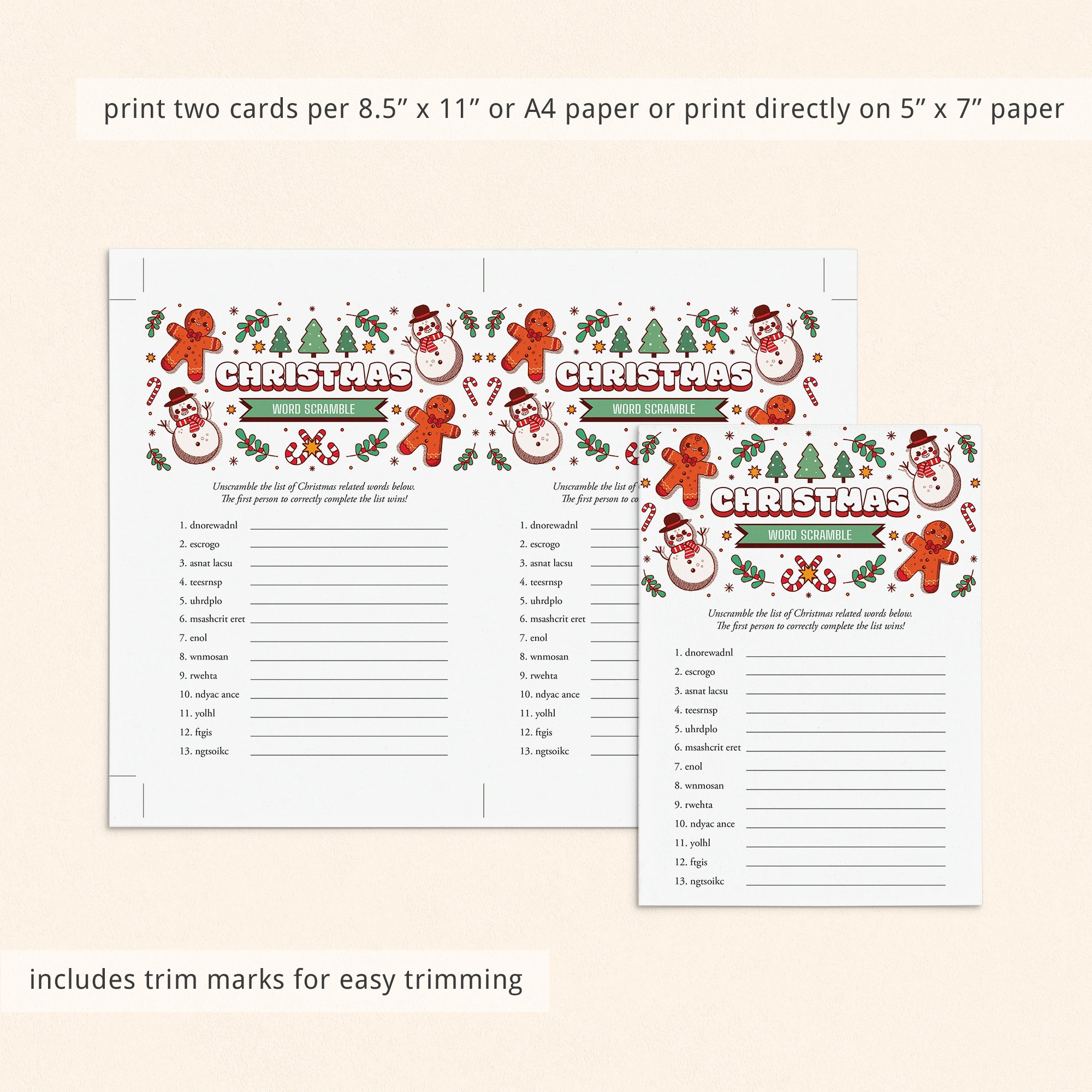 This Christmas Word Scramble game is an instant download. After purchase you will receive a download link immediately on screen. Also within minutes of your order and payment, an e-mail will be sent to you with a link for your download.