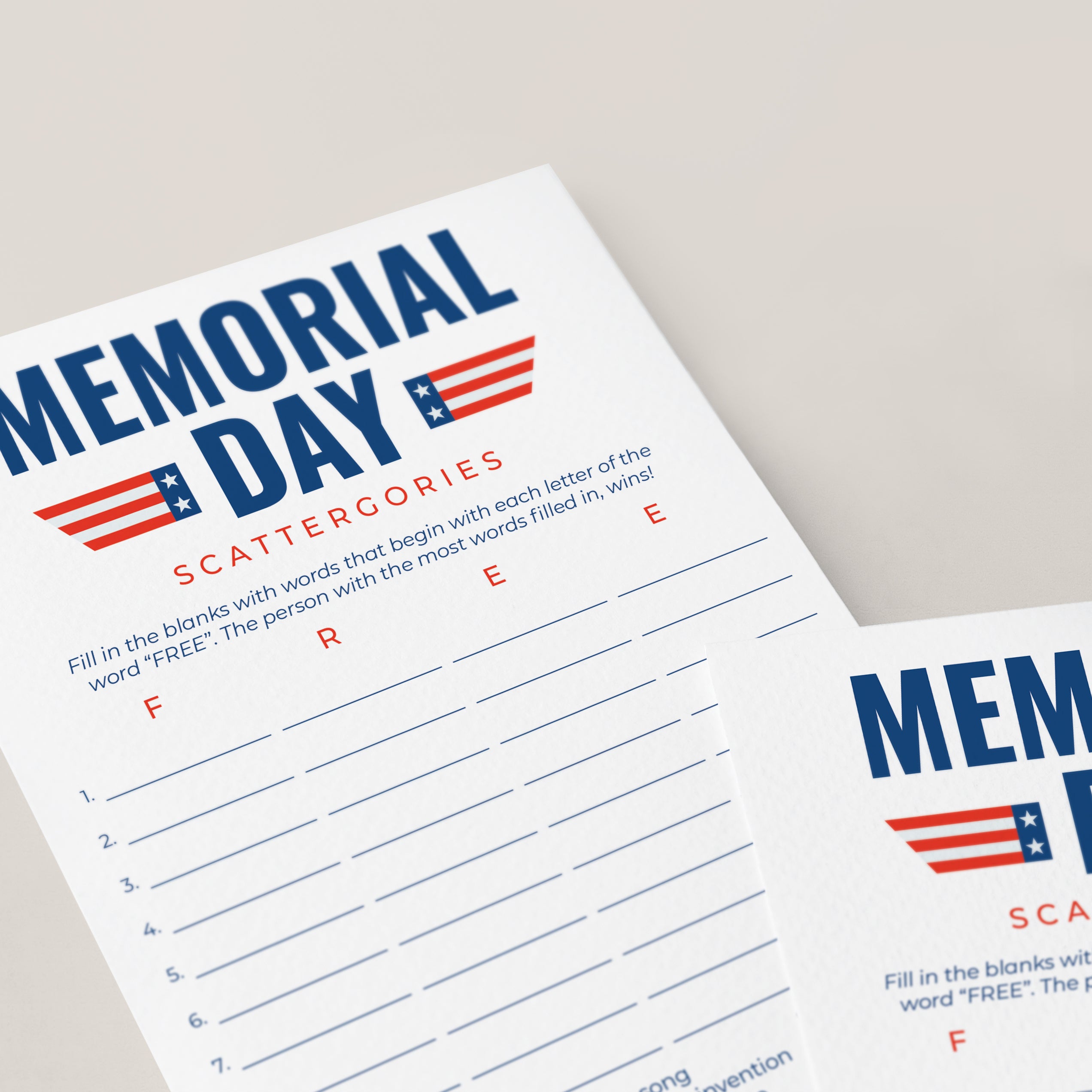 How many words can you fill in with the letters "F", "R", "E" and "E"? Play Scattergories at your Memorial Day celebration to ensure lots of fun and laughter. This game is great fun for all ages. You can play USA Memorial Day Scattergories in your classroom, at the office or at home with family and friends.