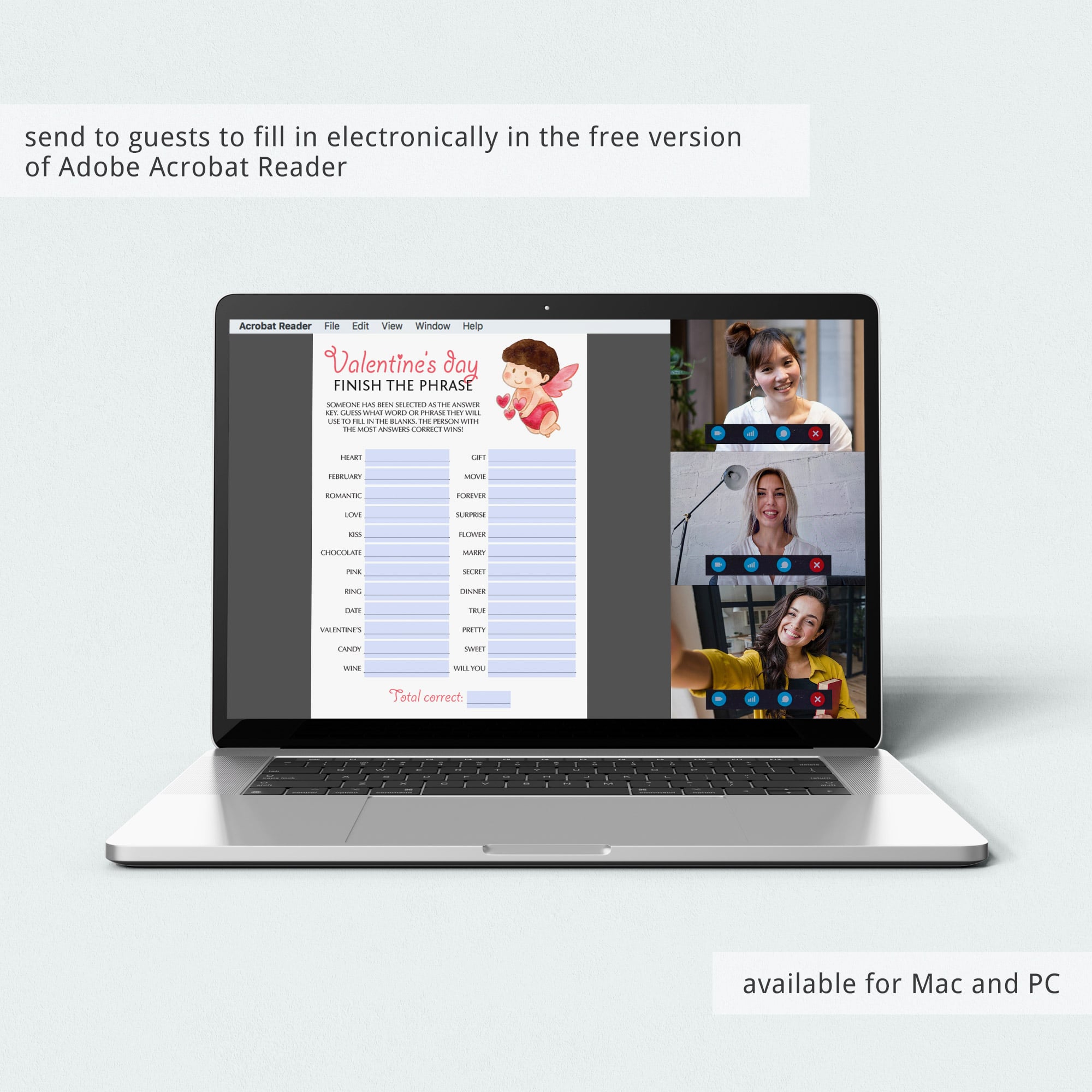 And if you are hosting a virtual Valentine's Day party, you can email the game cards to the guests and have them print the cards at home or fill in the blanks electronically in the free version of Adobe Acrobat Reader.