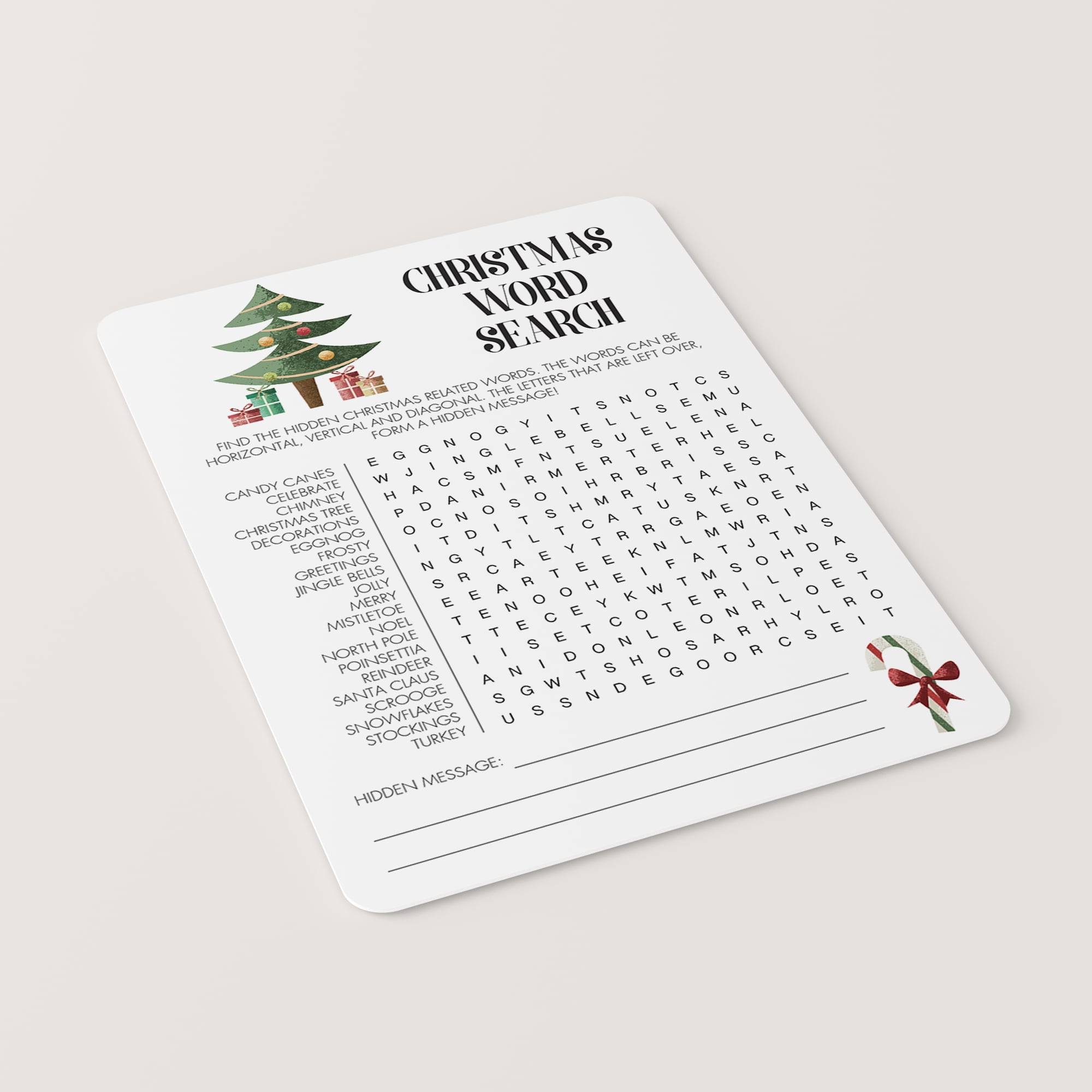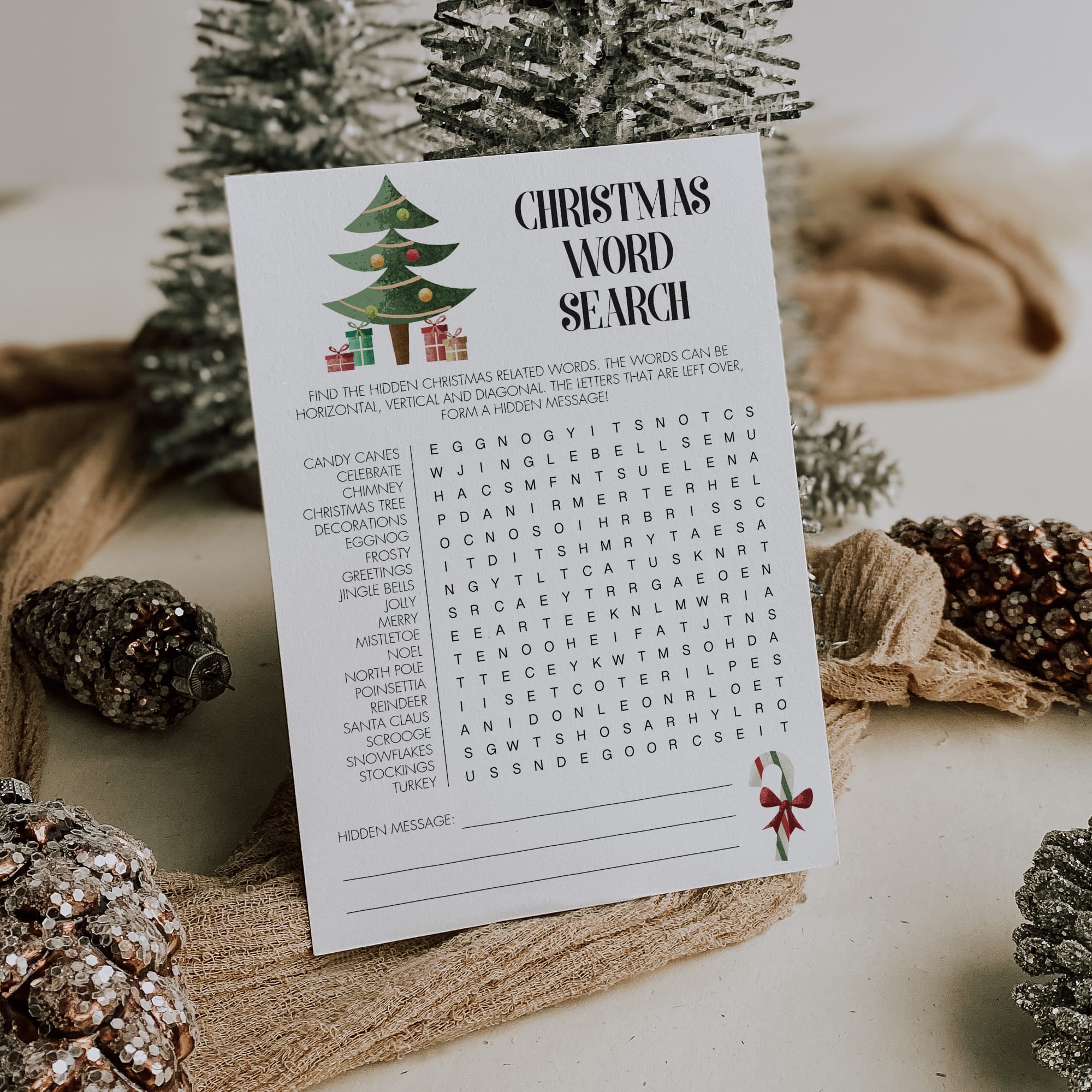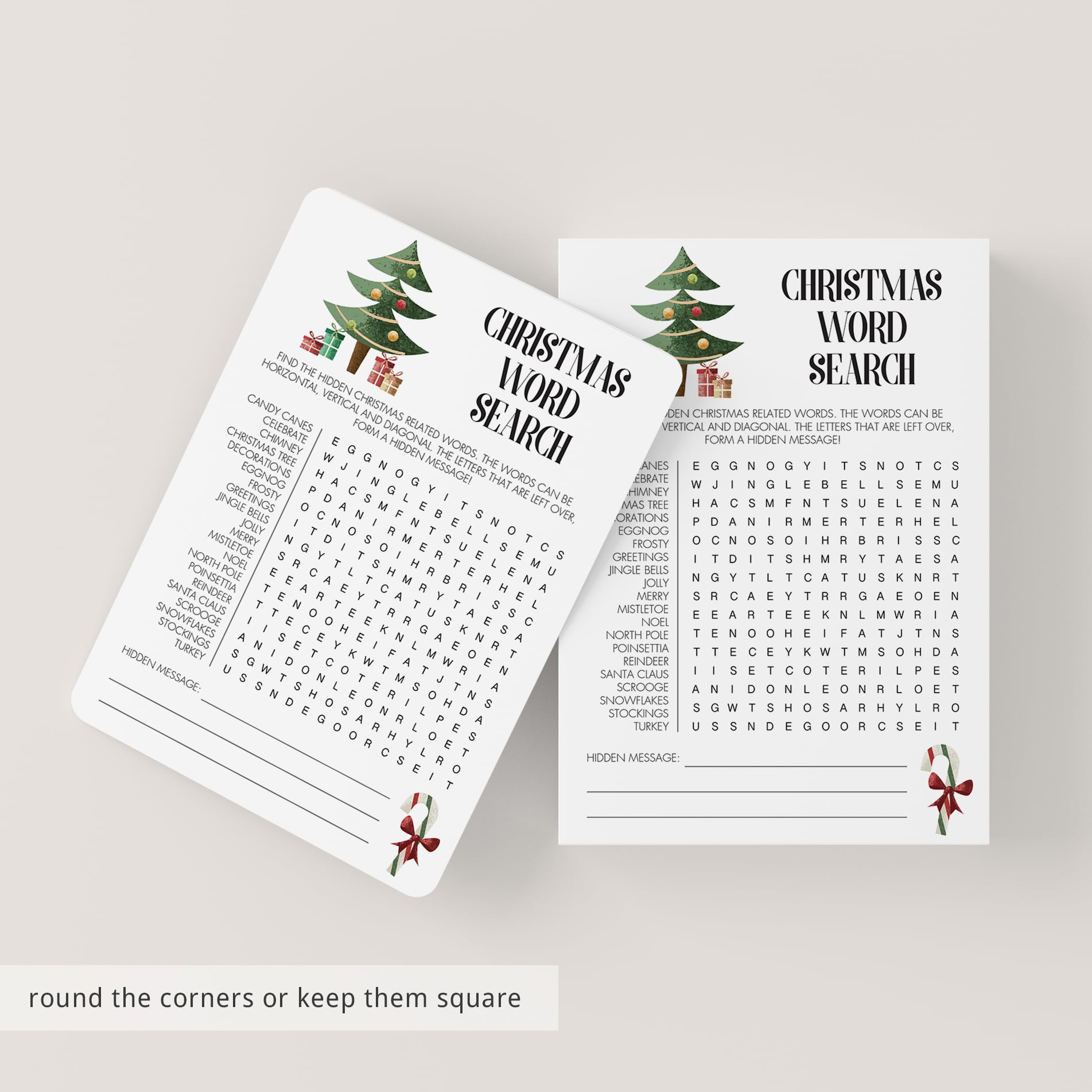 This Xmas Word Search game is an instant download, so simply download and print the cards as many times as you need. Print at the comfort of your home or order the game cards from a local or online print shop.