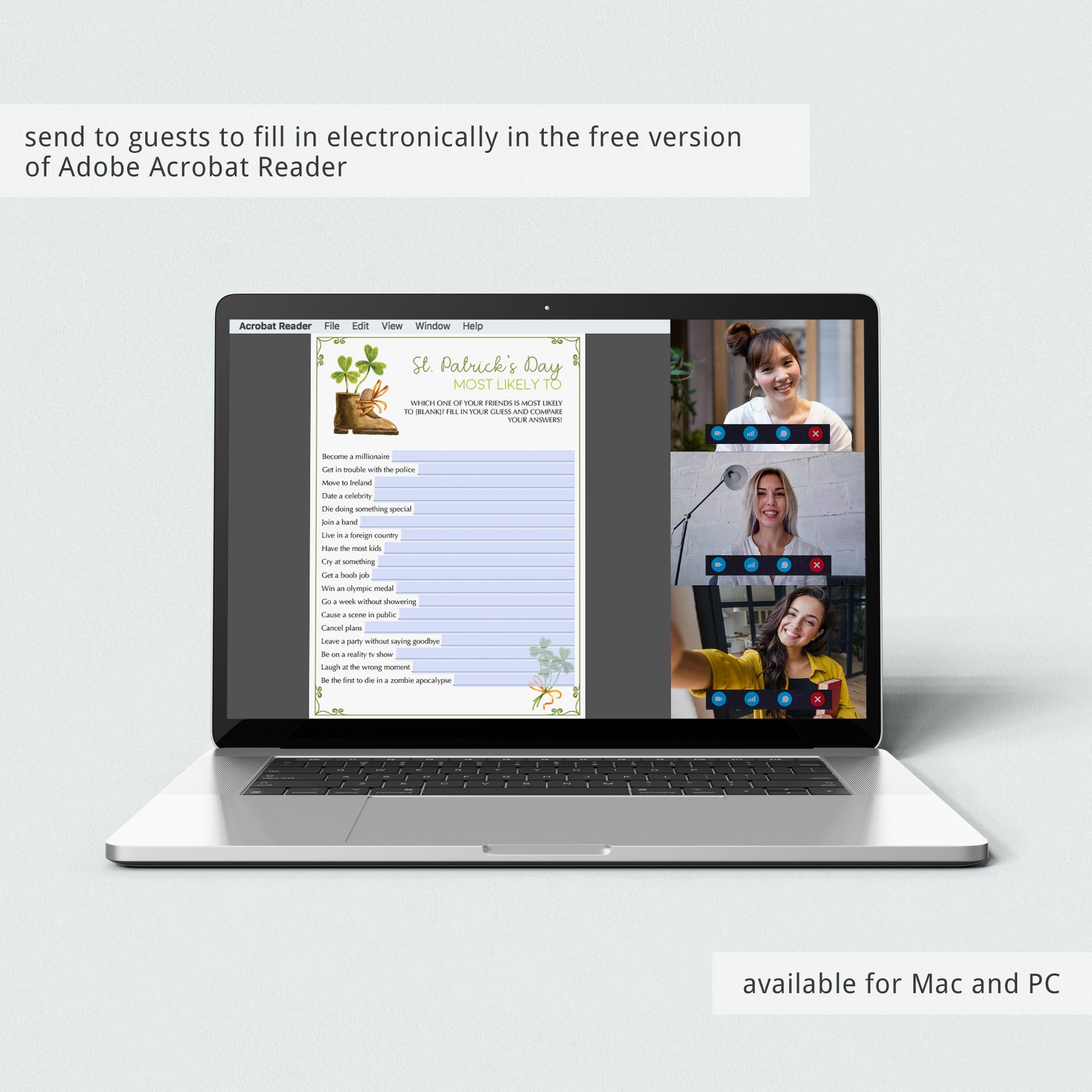 And if you want to play this St Patrick's Day game online over Zoom or any other video conference call app, you can email the game cards to your friends and have them fill in the cards electronically in the free version of Adobe Acrobat Reader.