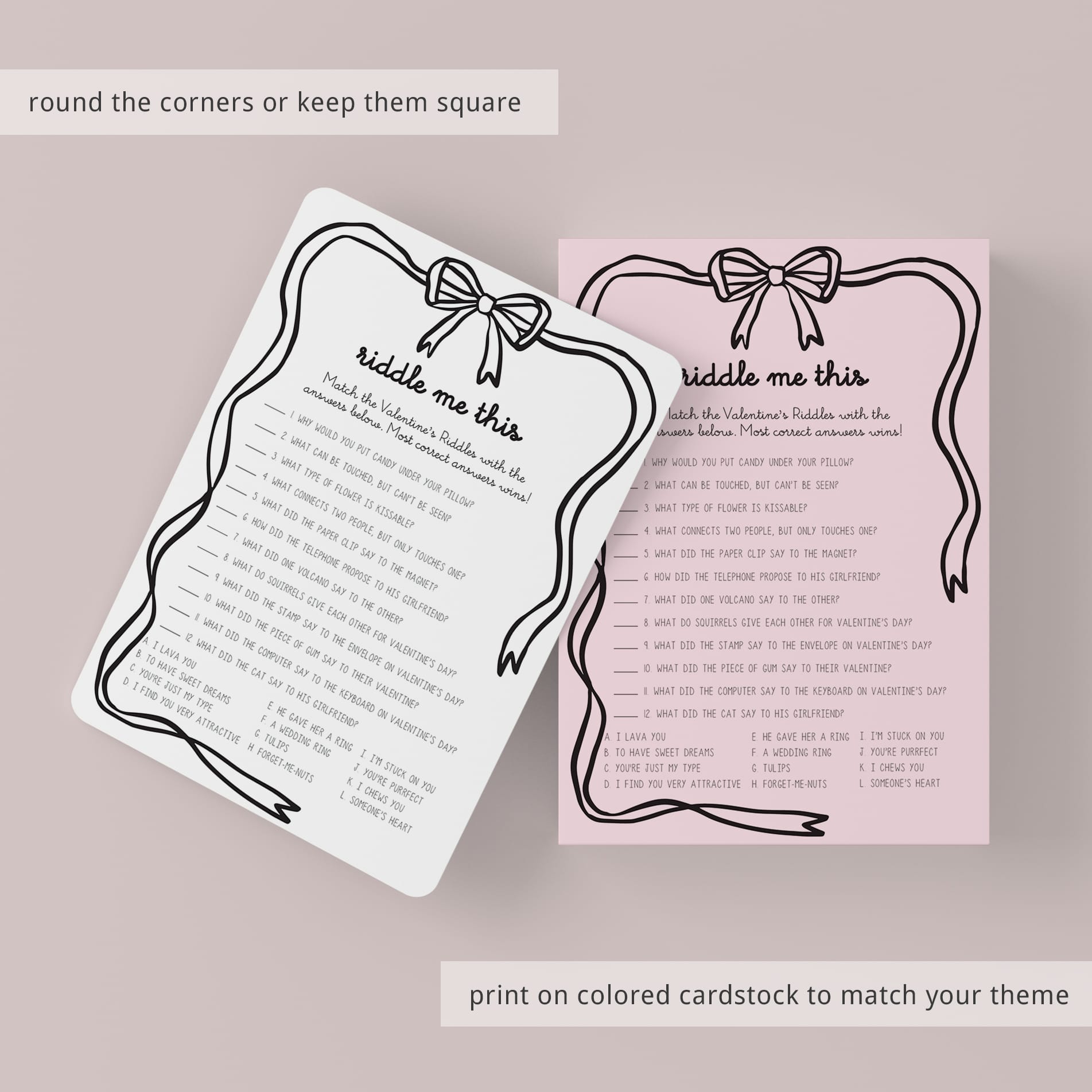Do you think you have what it takes to solve these 12 funny Valentines riddles? This Valentines Riddle Me This game is the perfect addition to your Valentine's Celebration. It's a great activity for the whole family, kids and adults of all ages will love it.