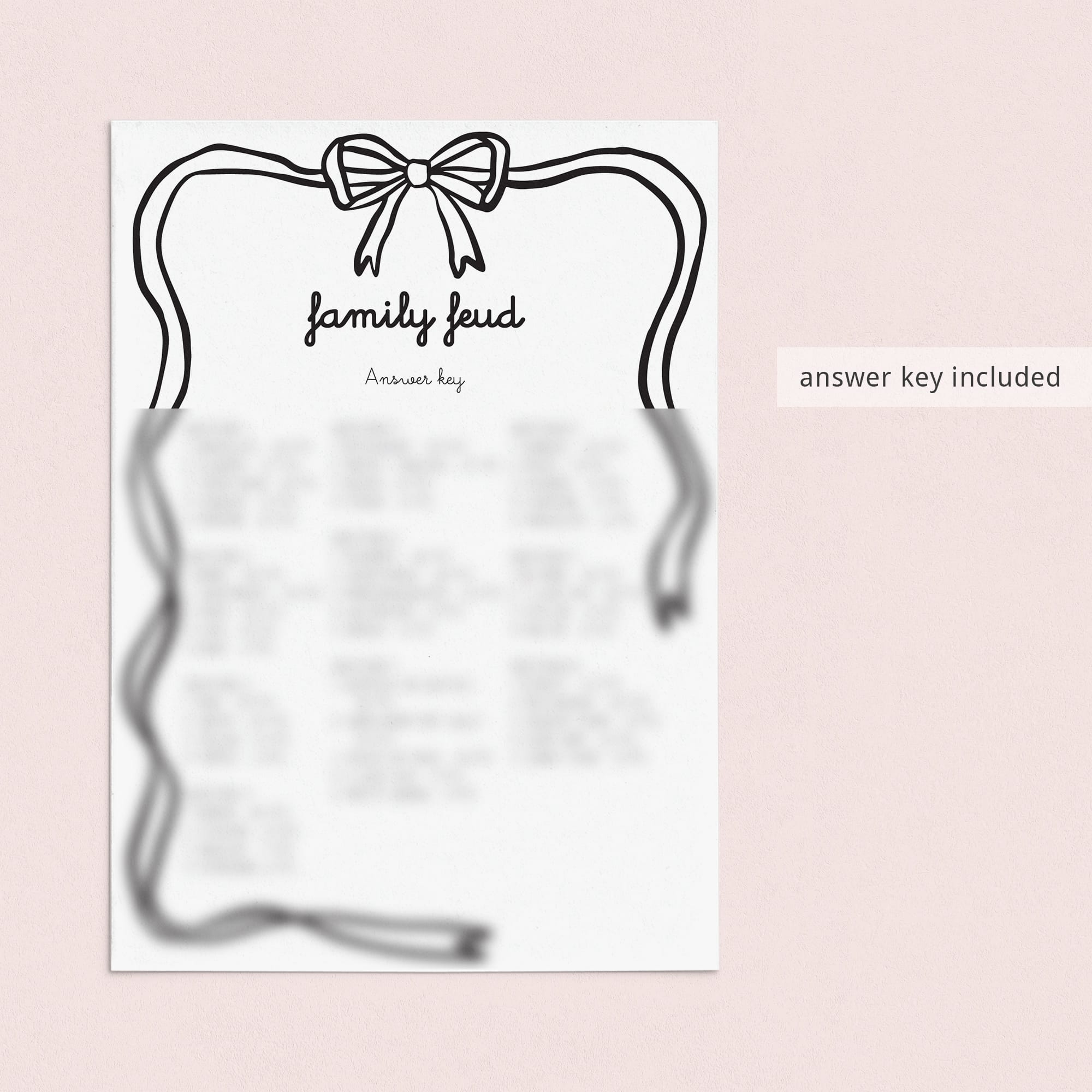 Are you looking for a fun game to play at your Valentine's Day party? Play Valentine's Feud with these charming Family Feud game cards featuring a playful wavy border topped with a sweet black bow!