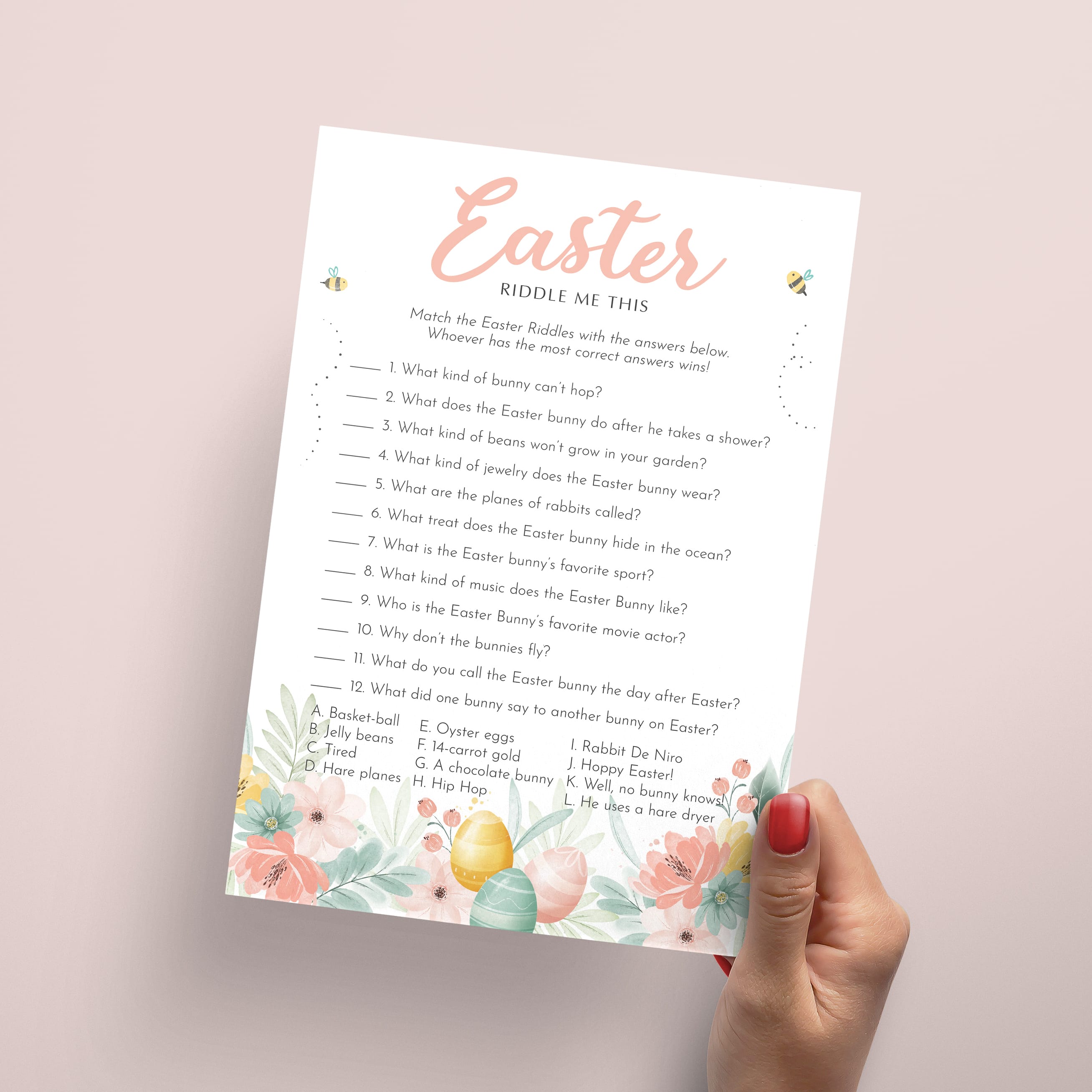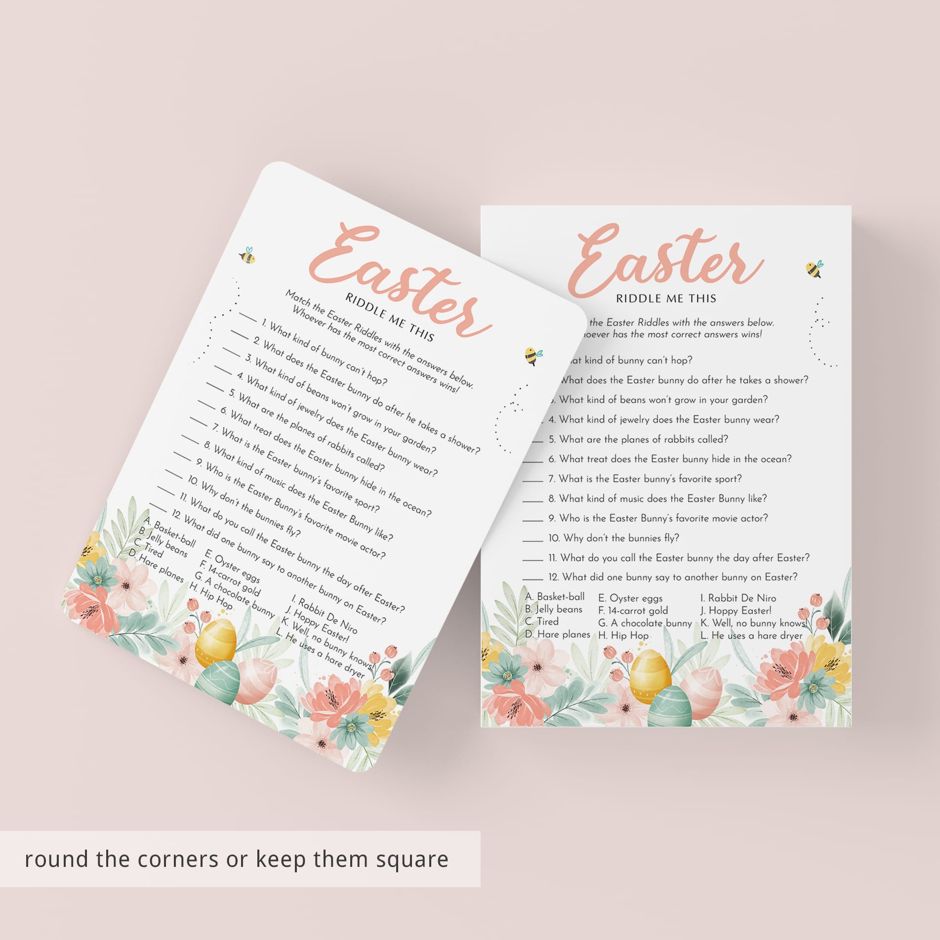 Do you think you have what it takes to solve these 12 fun Easter riddles? This printable Easter Day Riddle Me This game is the perfect addition to your Easter party. It's a great activity for the whole family, kids and adults of all ages will love it.