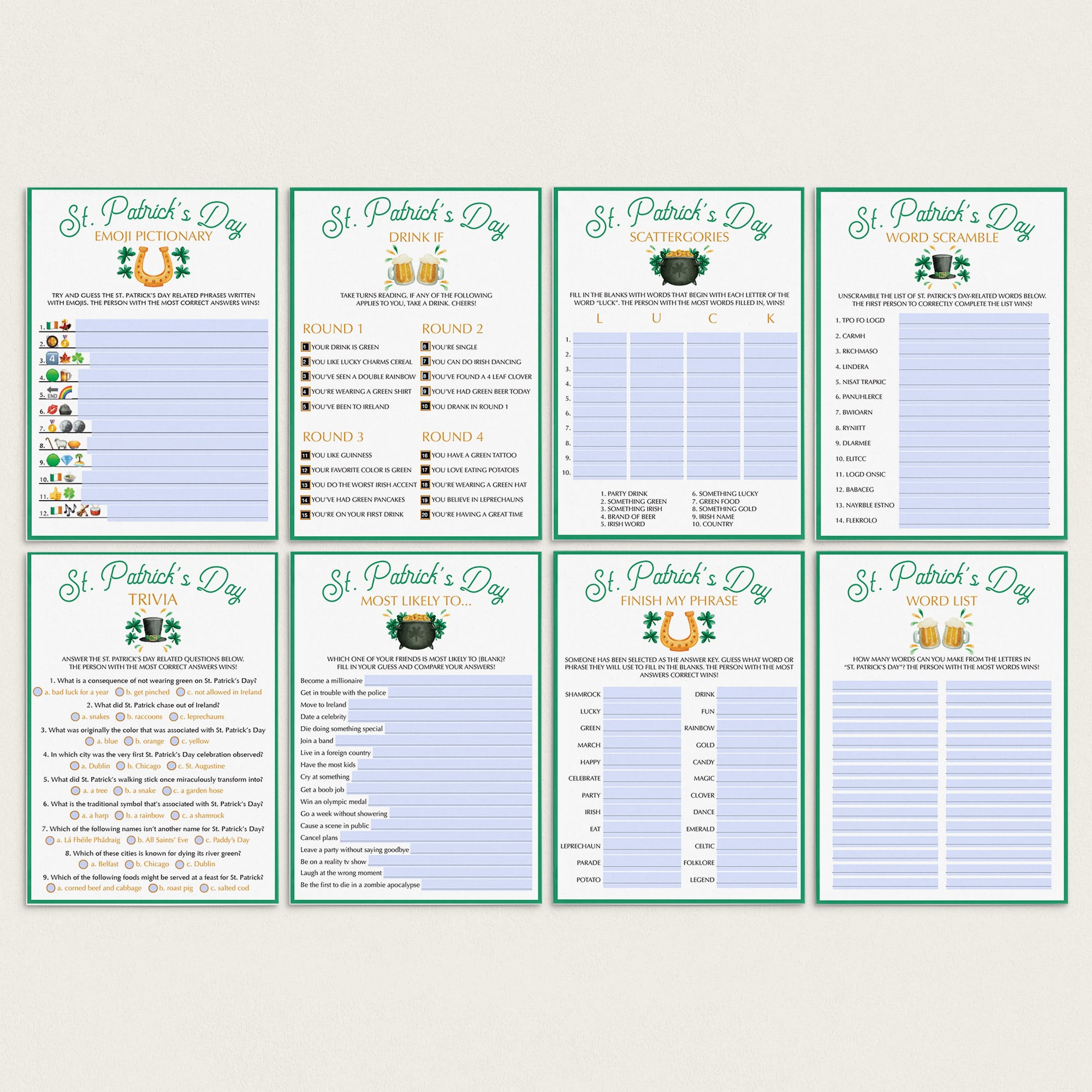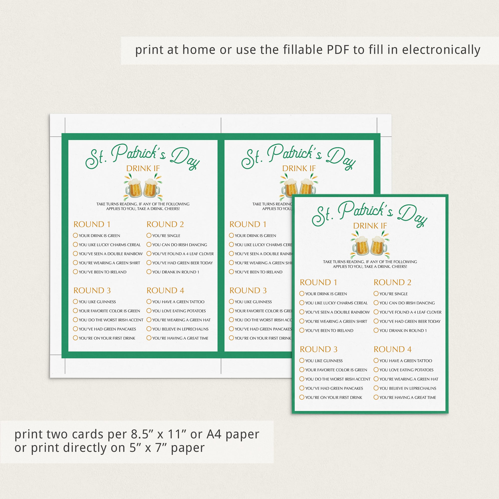 For an in-person St. Patrick's Day Party, simply download and print the games as many times as you need. We recommend printing on a nice heavy card stock for highest quality feel. Print right from your computer in a matter of minutes or have the games printed at your favorite print shop.