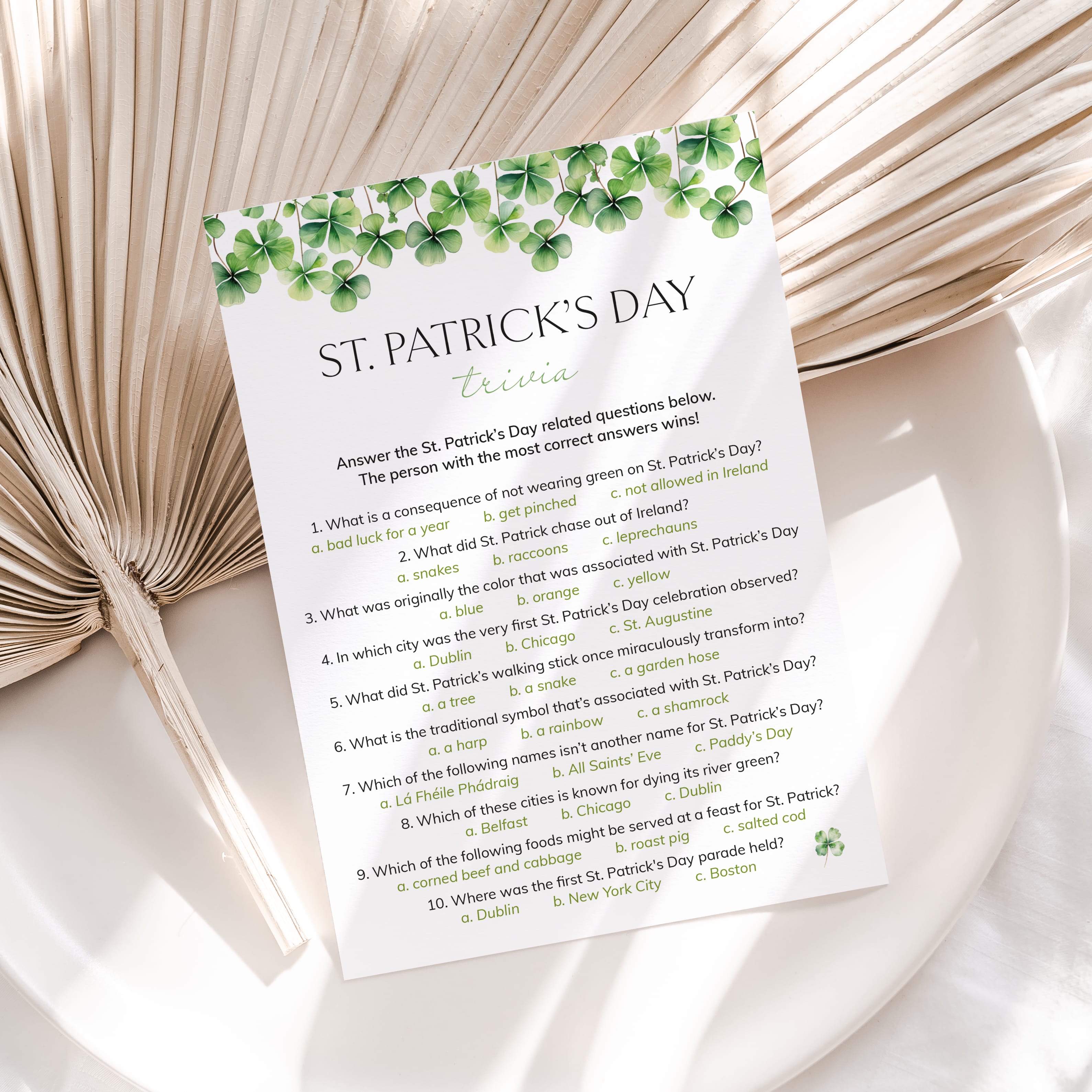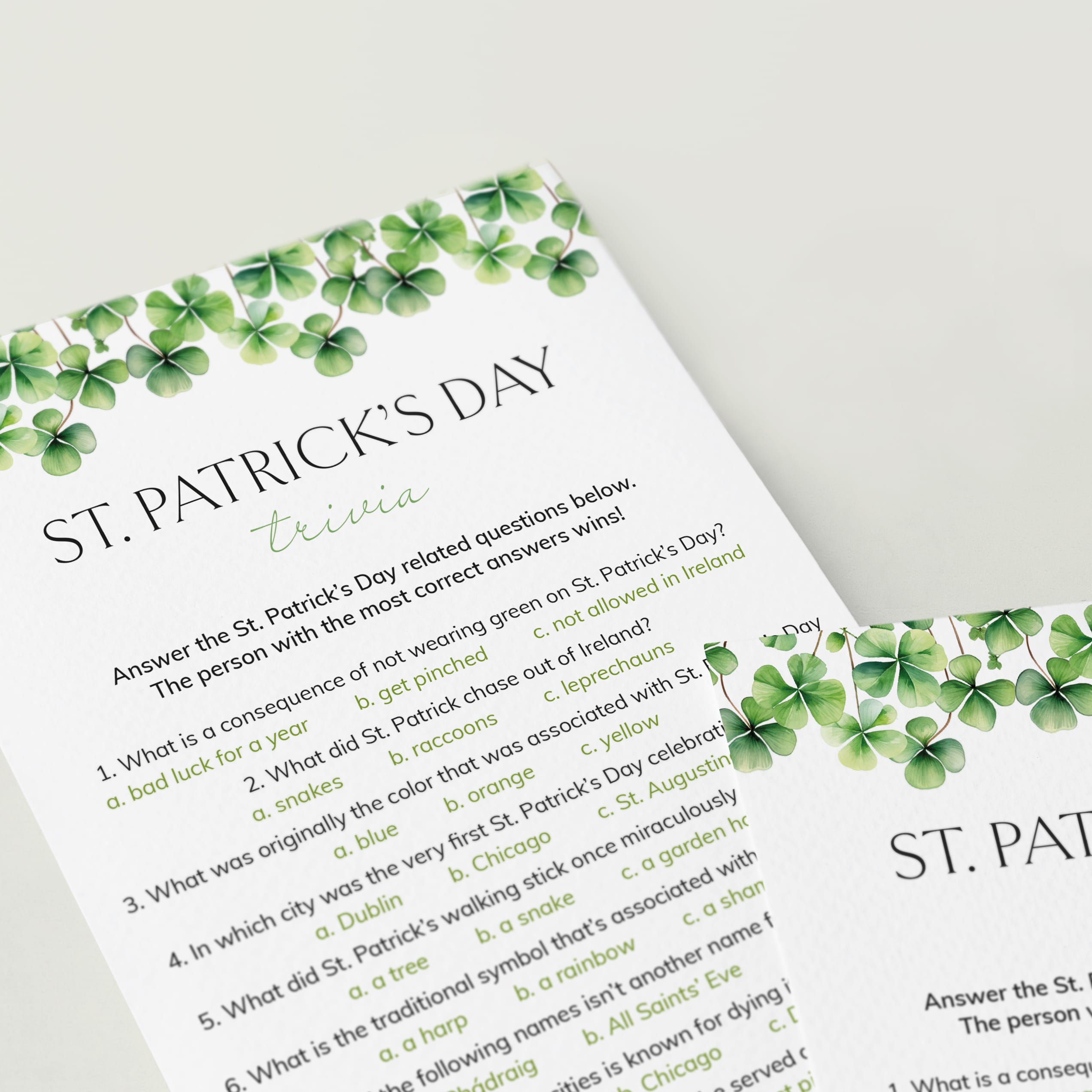 This St Patrick's Day trivia is an instant download. After purchase you will receive a download link immediately on screen. Also within minutes of your order and payment, an e-mail will be sent to you with a link for your download.