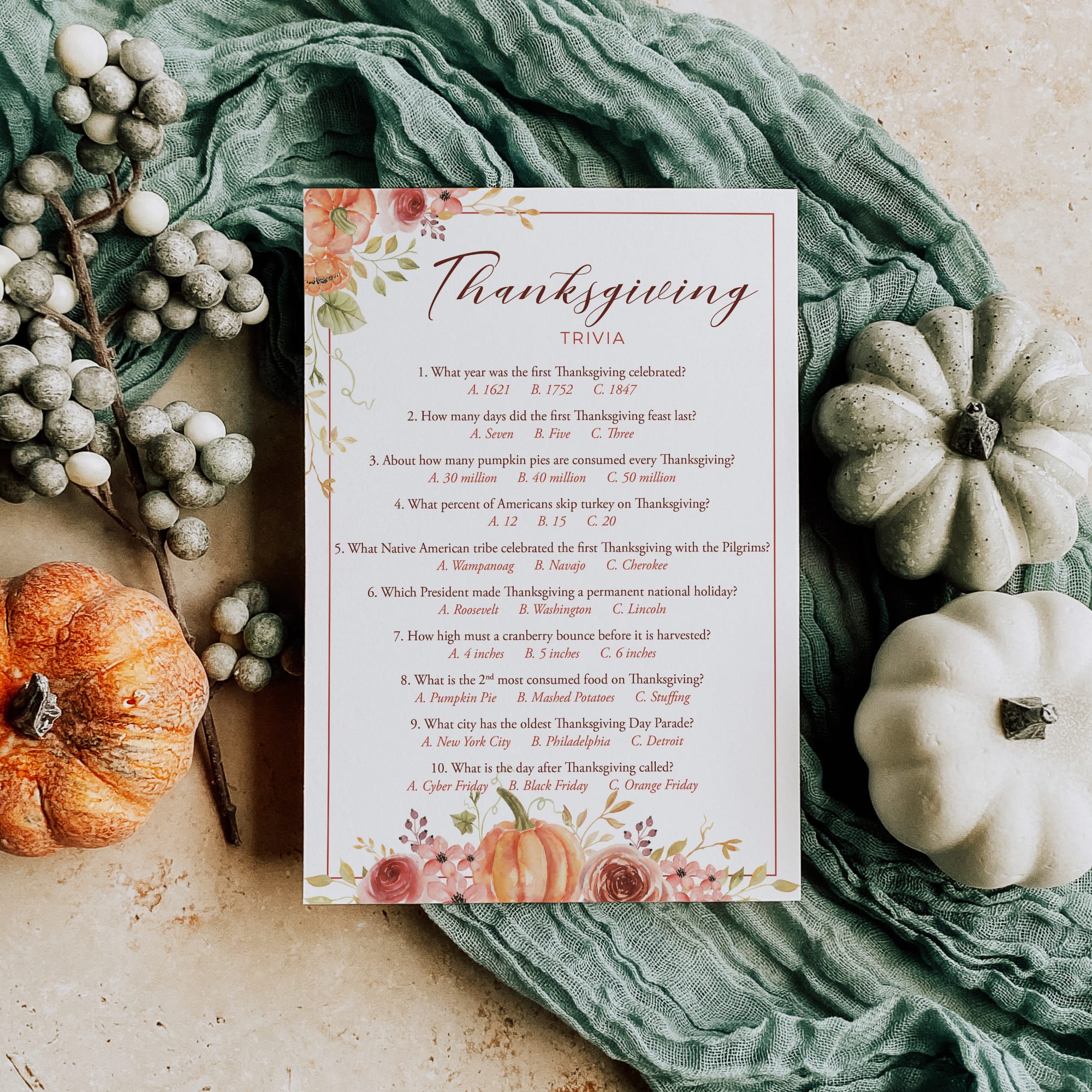Are you hosting a Thanksgiving dinner party and looking for some fun games to play? Look no further! These elegant autumn floral Thanksgiving trivia games are the perfect addition to your Thanksgiving get-together with family or Friendsgiving dinner party.