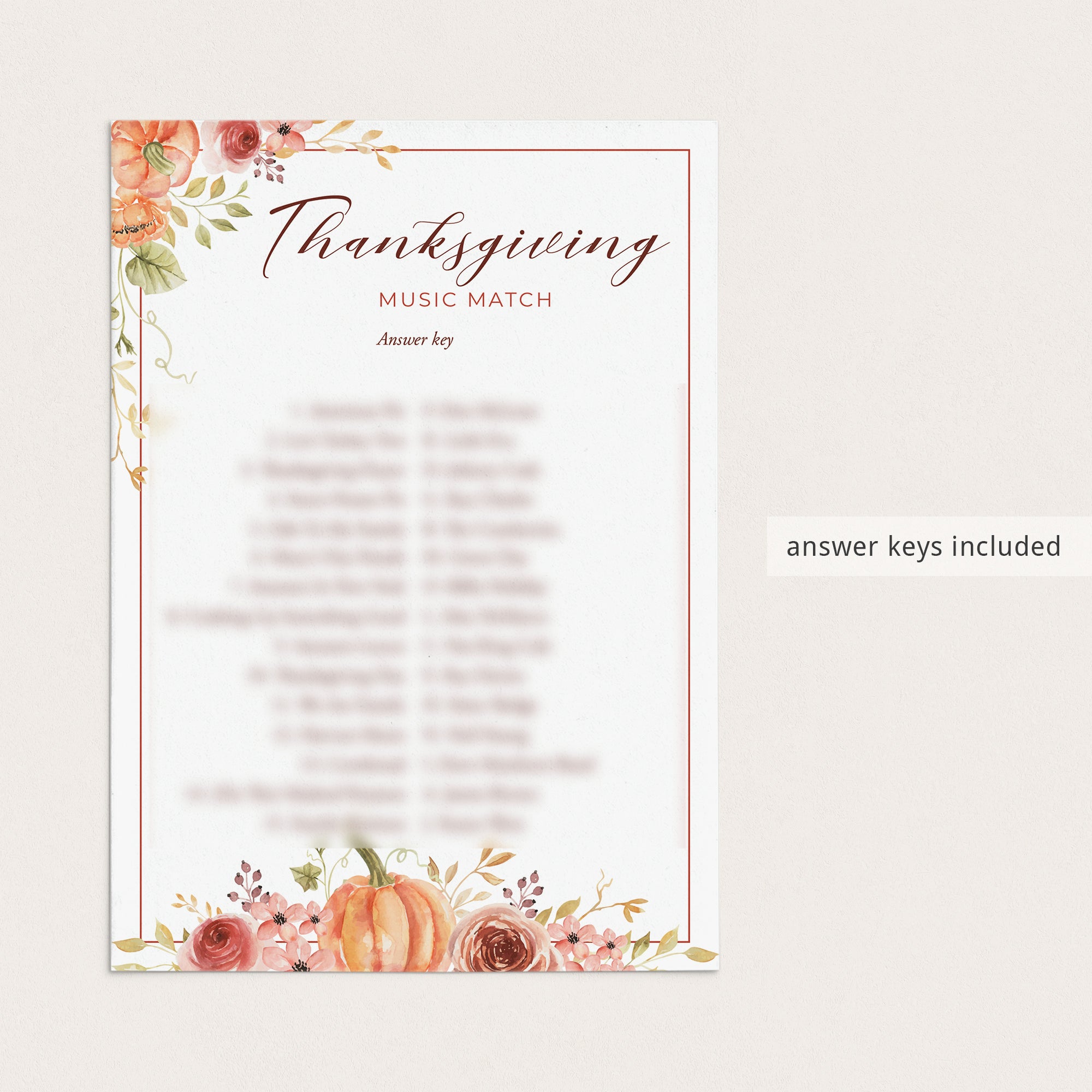• Thanksgiving Music Match (answer key included)