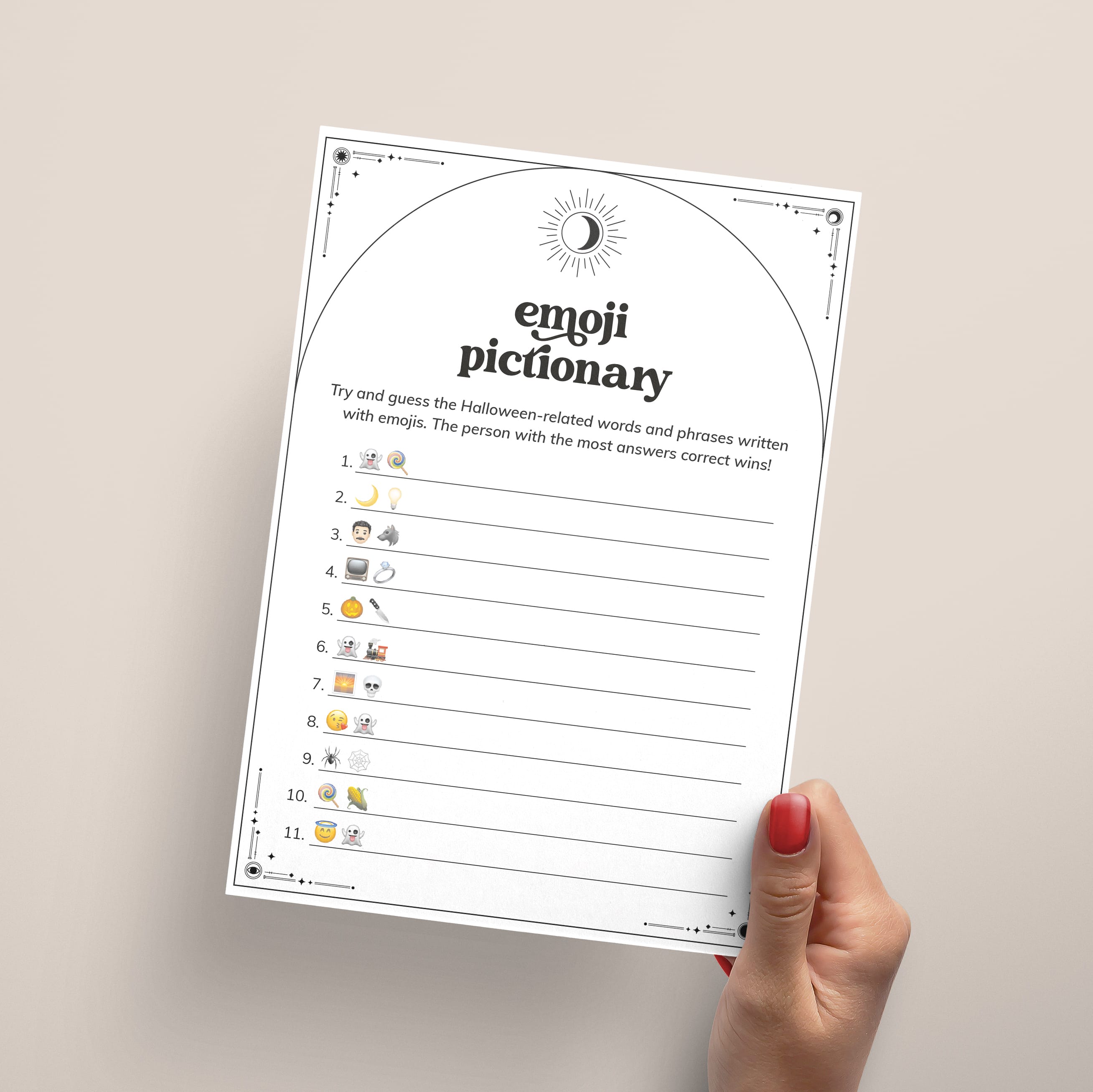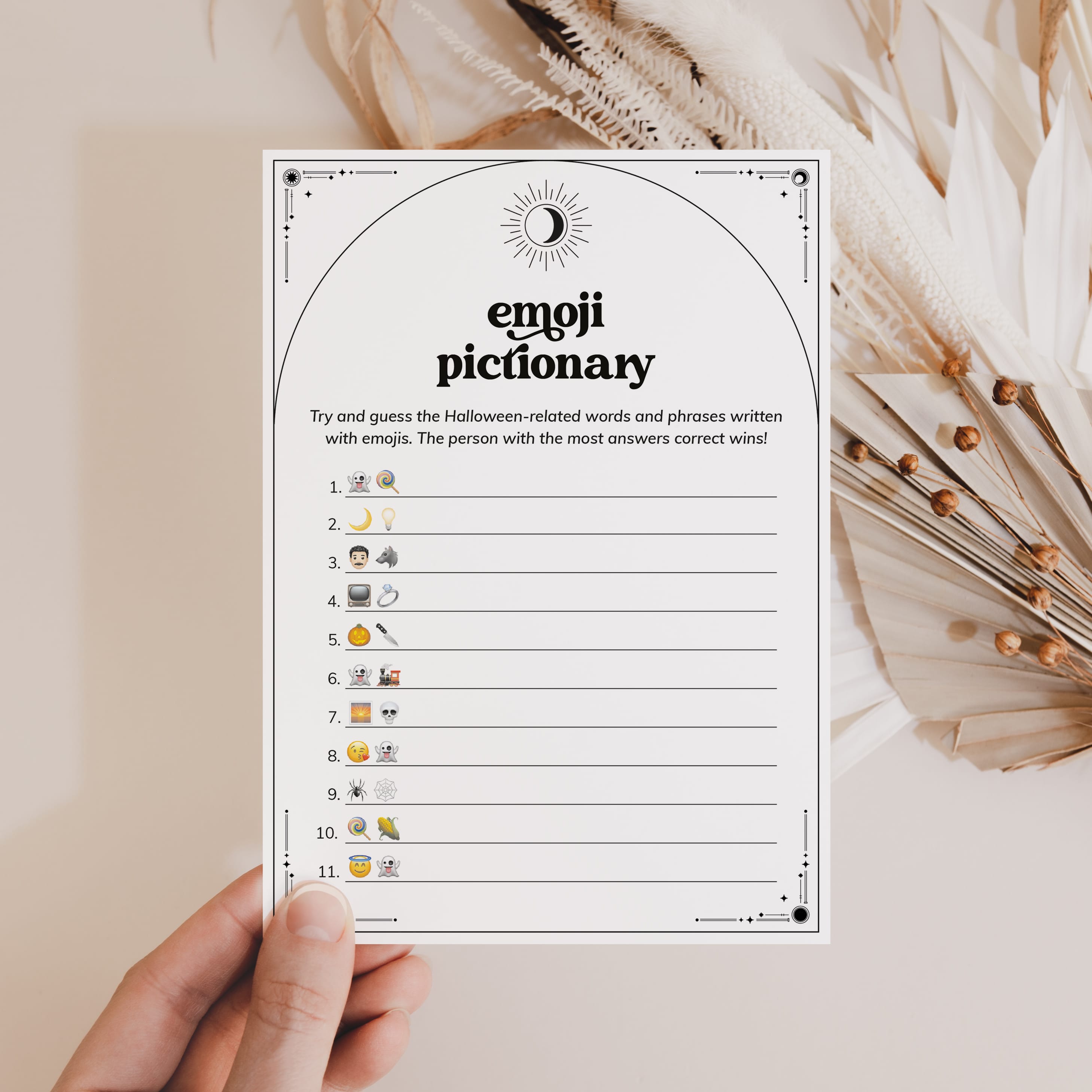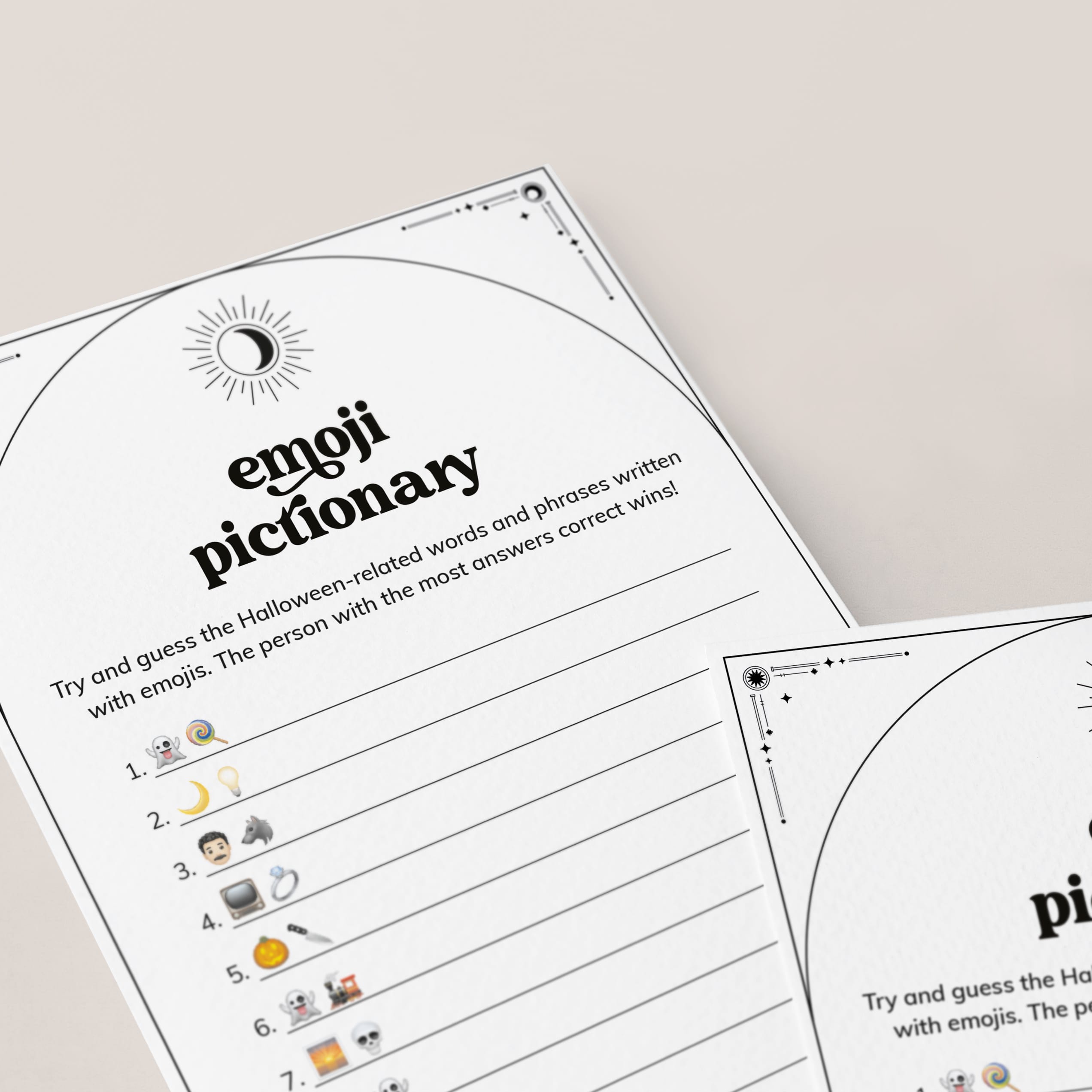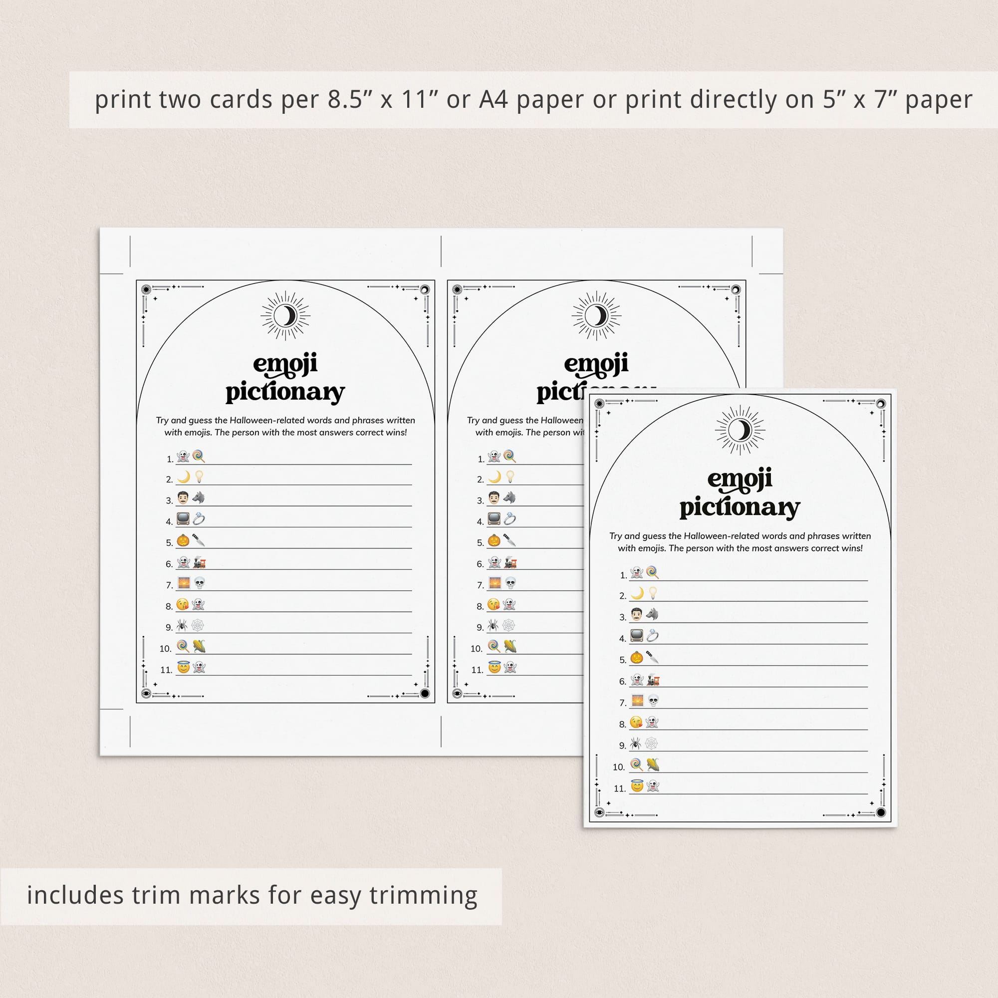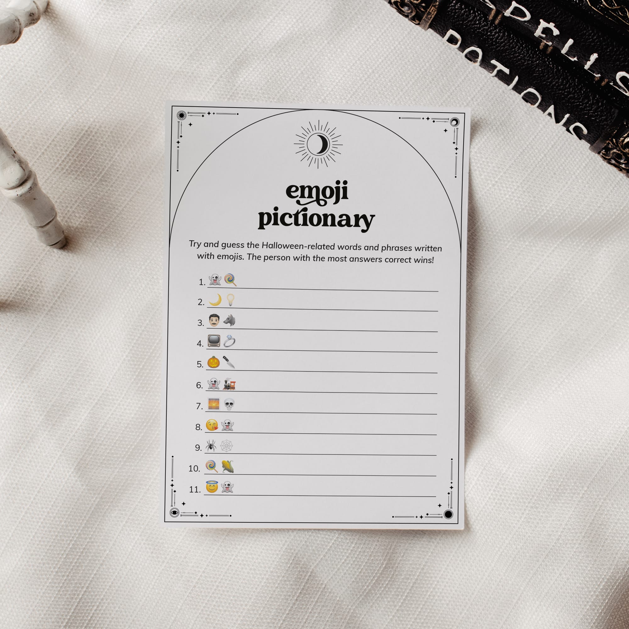 Are you looking for a unique game to play at your Halloween party? Play Emoji Pictionary with this celestial theme game card. With the sun, moon and stars elements, this Halloween game will be the perfect addition to you celestial theme party.