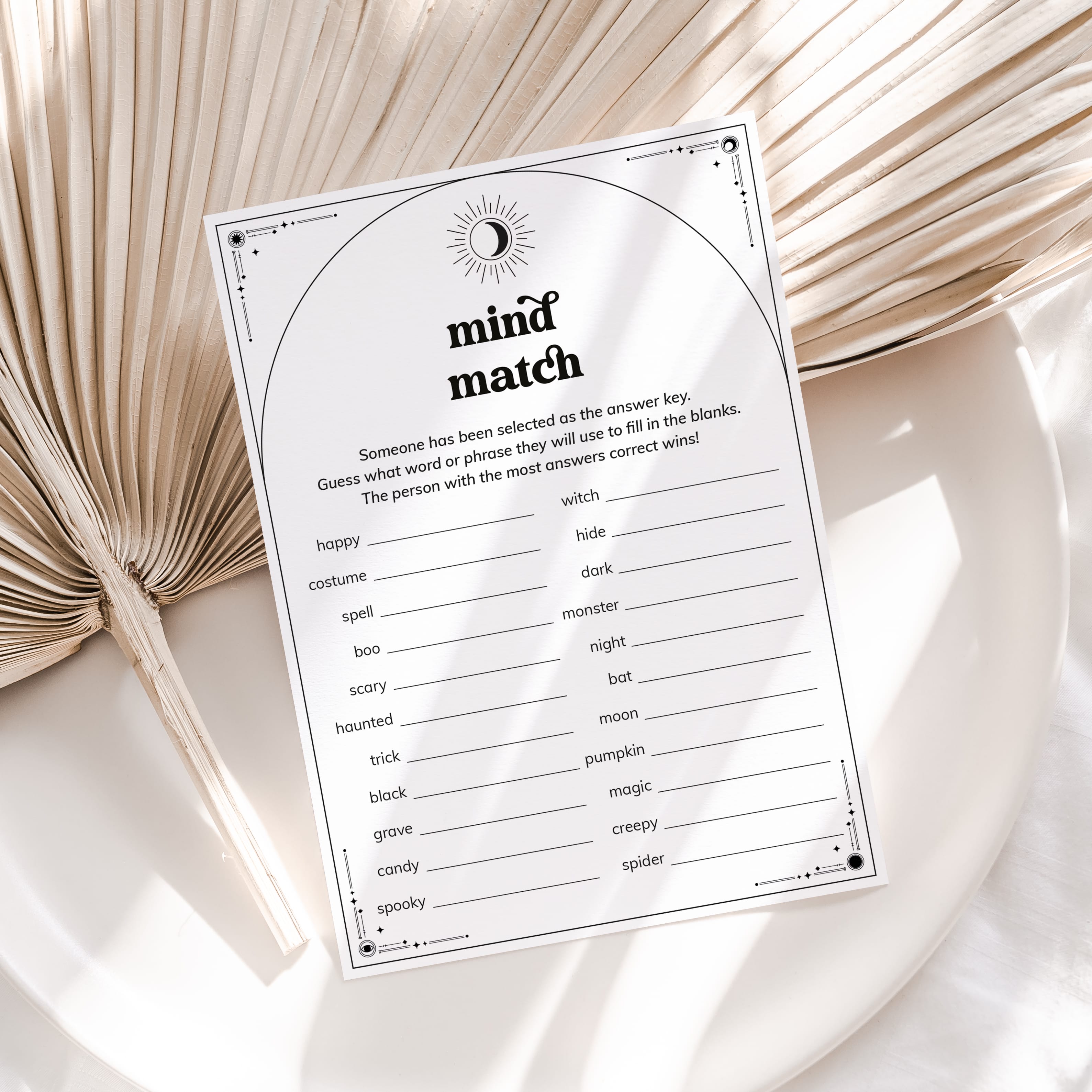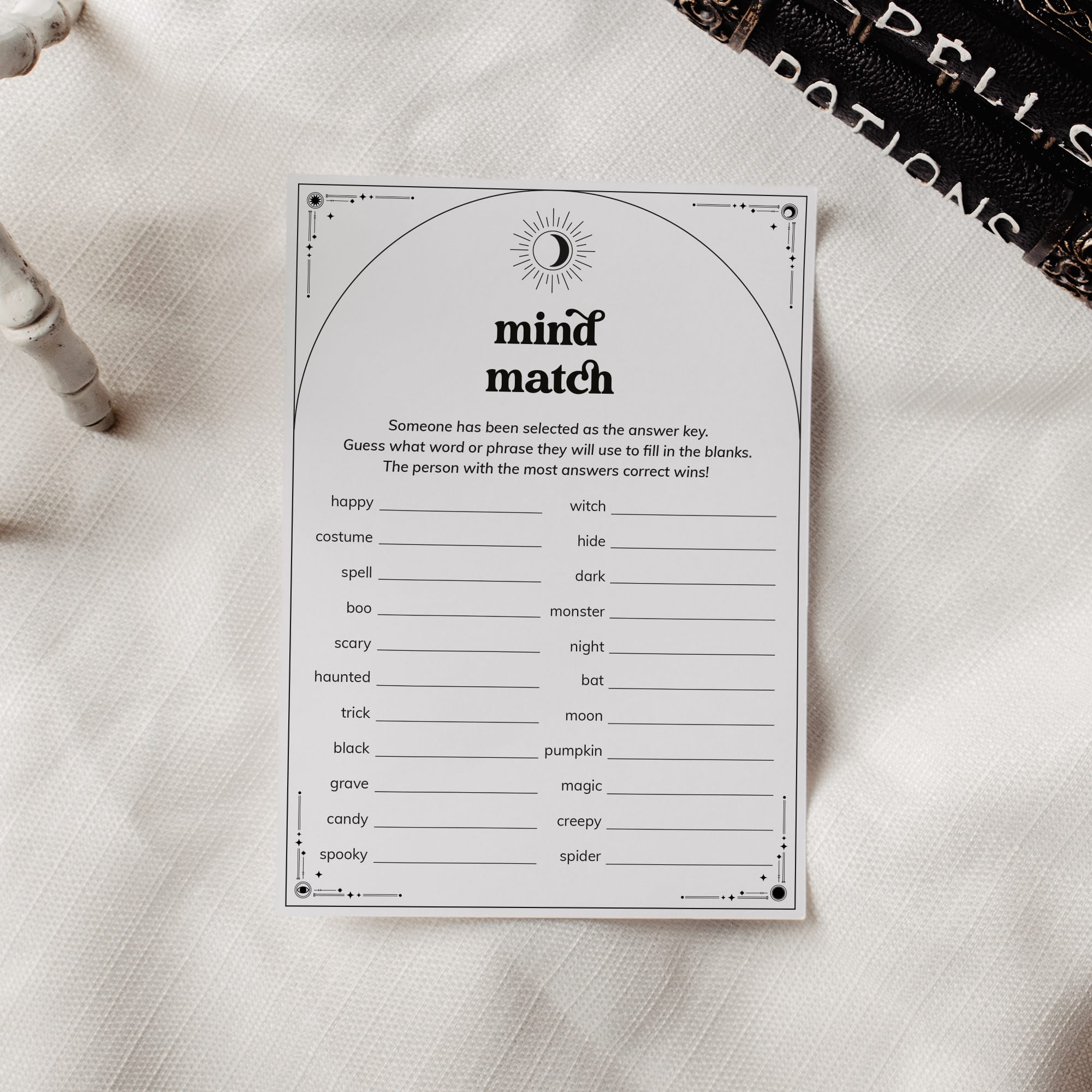 Mind Match is a great ice breaker game for your Halloween party. It is a fun activity for family nights, Halloween parties and for older kids at school and very easy to play. This Halloween party game with celestial details is the perfect addition to a witchy Halloween bash.