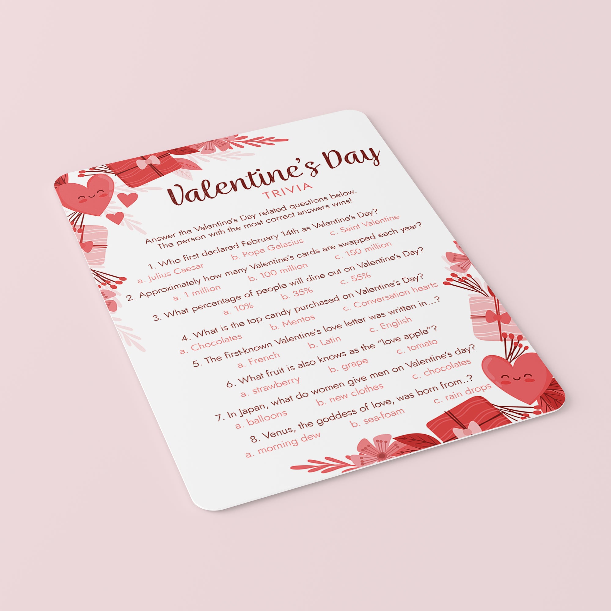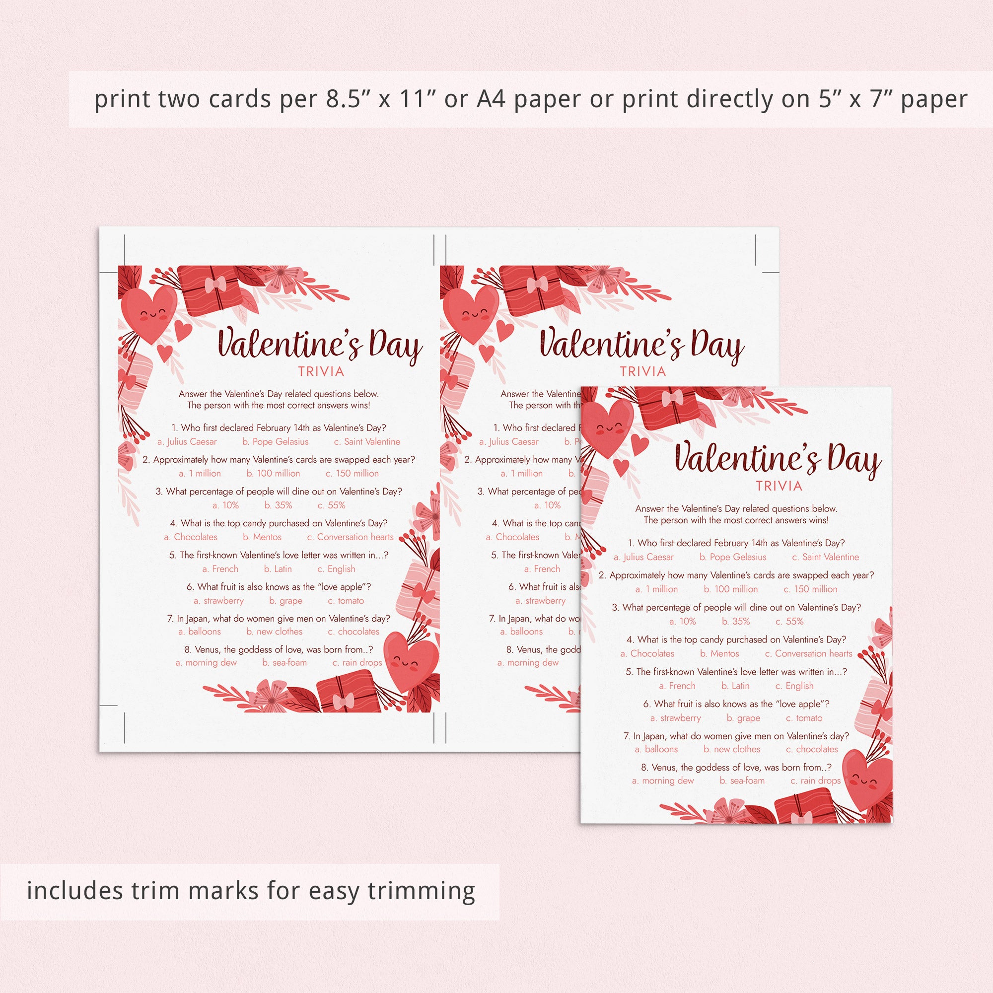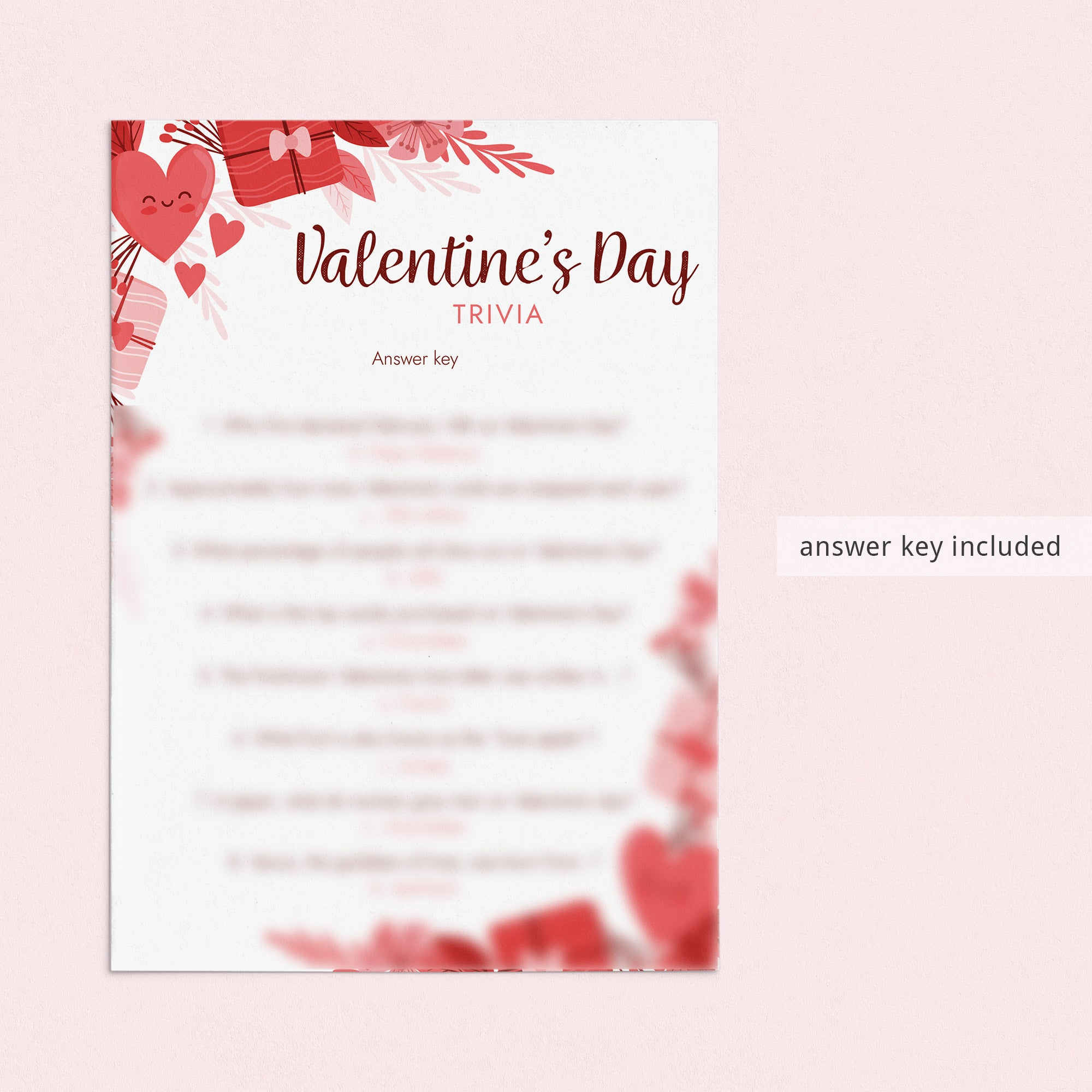 Are you hosting a Valentine's Day party? Test your guests knowledge of this romantic holiday with these Valentine's Day trivia questions. The game is a great addition to a Valentine's Day party with couples or Galentine's Day Party with just your BFF's and you will learn some fun Valentine's Day facts. Just in case you are having trouble figuring out the answers, an answer key is included.