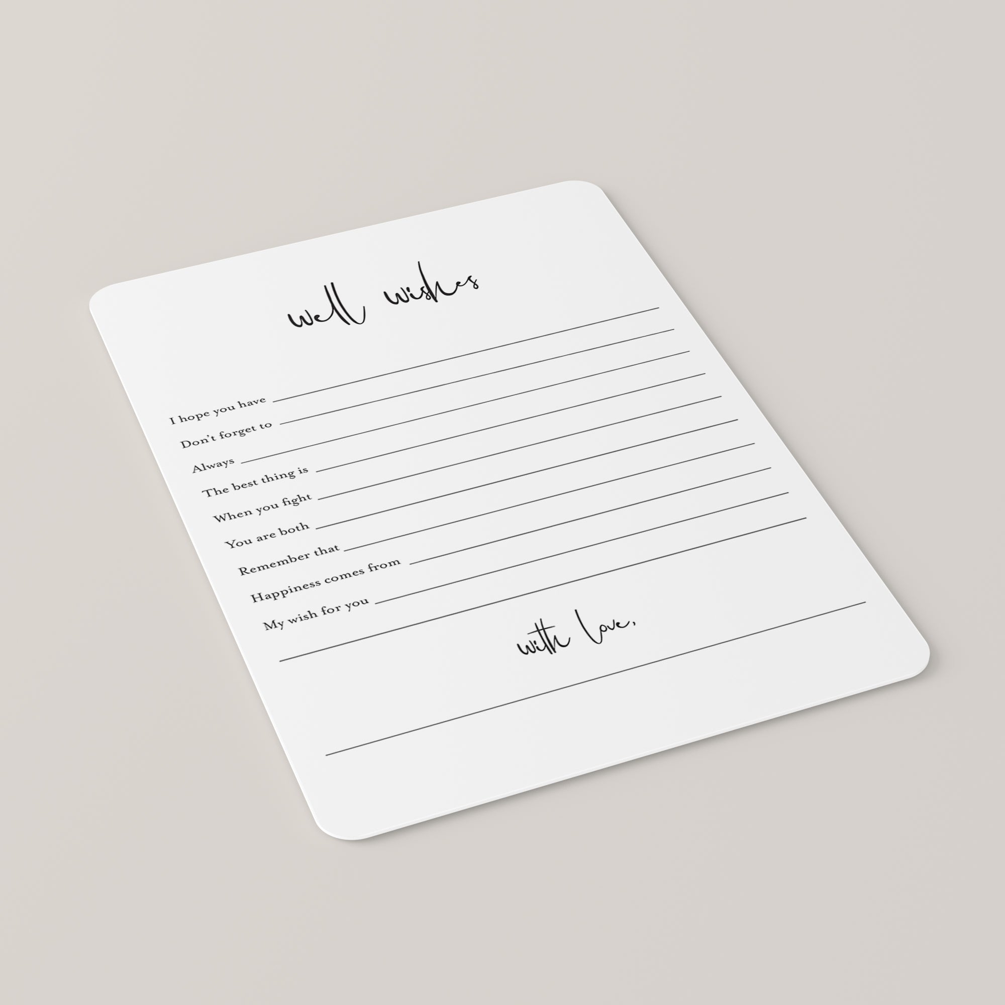 Create an amazing keepsake for the bride and groom with this modern minimalist well wishes for the Mr and Mrs card. It's the perfect addition to any wedding, bridal shower or bachelorette party. Let every guest write down their advice and wishes for the soon-to-be-weds and collect the cards for the happy couple.