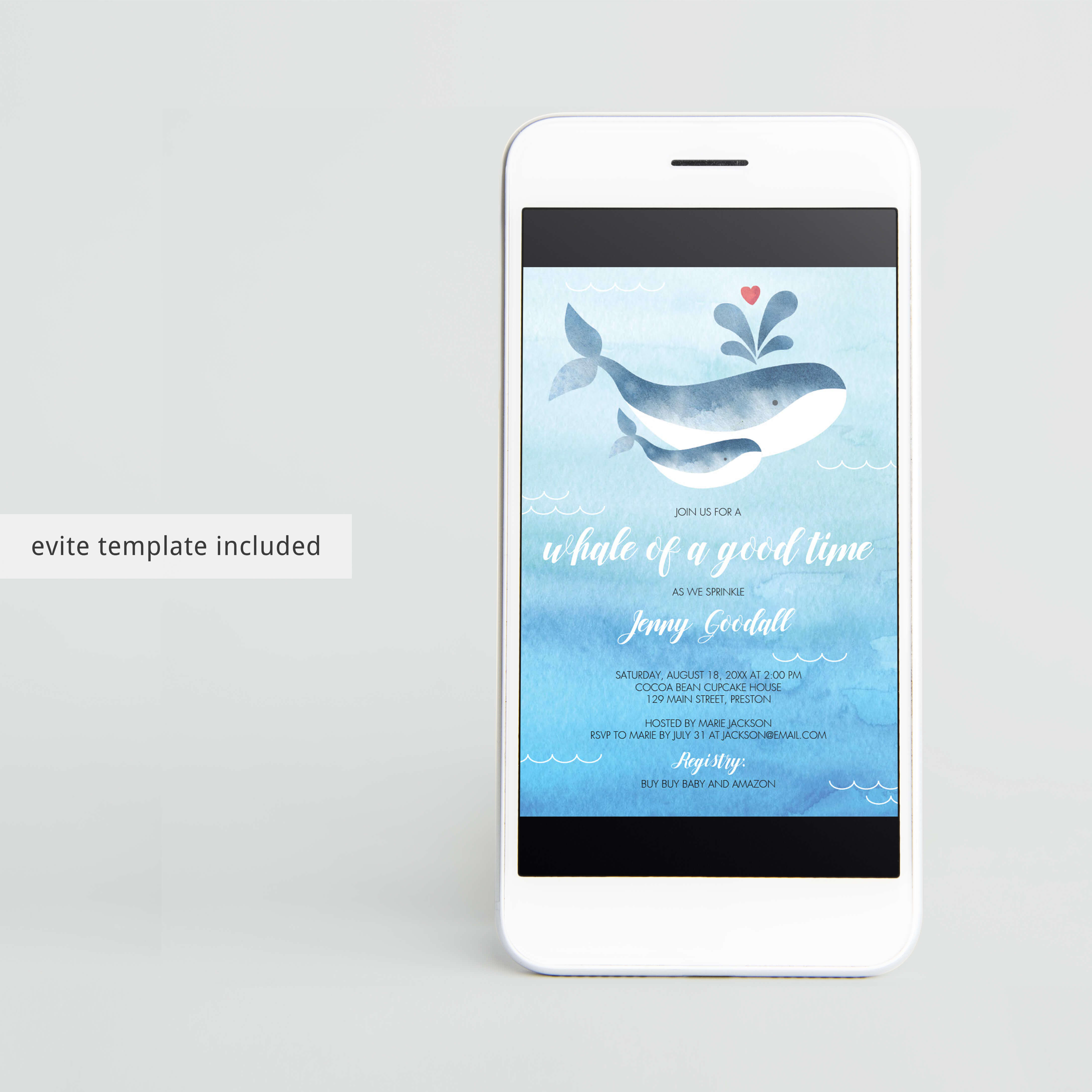 Print the invites right from your computer or have them printed at your favorite print shop. Or use the included baby sprinkle evite template to invite your guests by email.