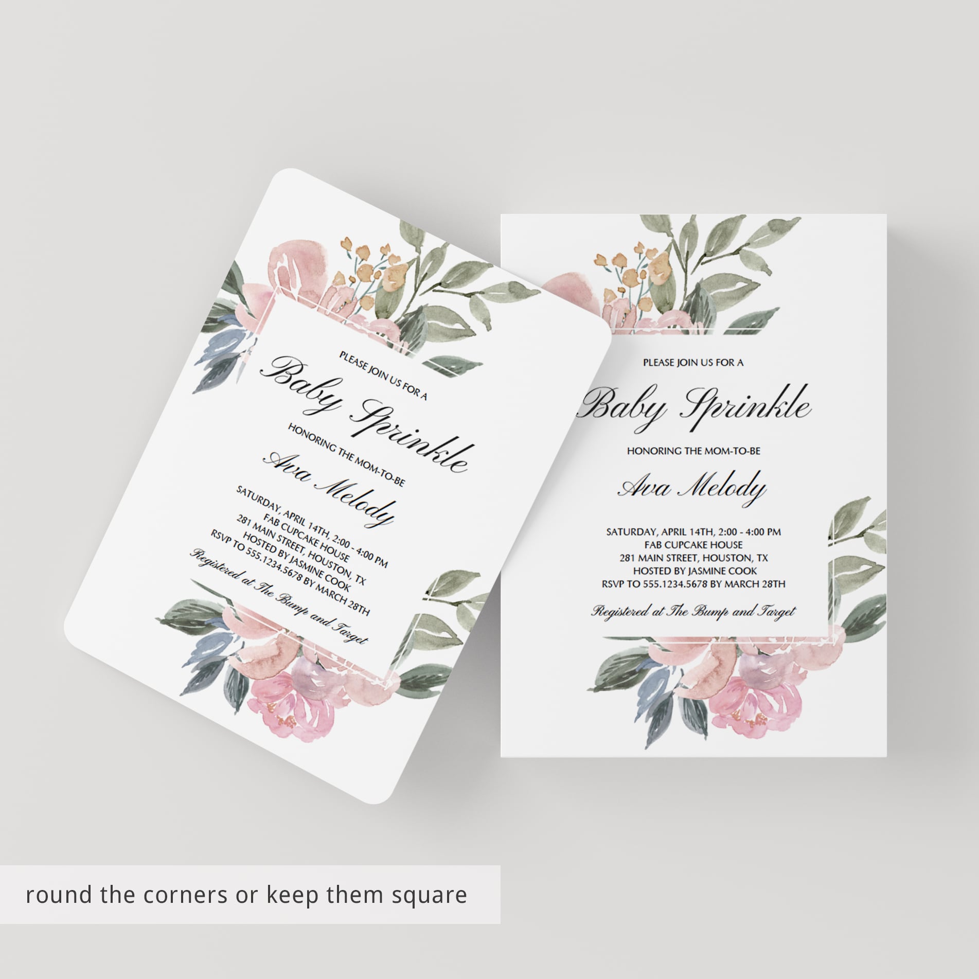 Are you hosting a whimsical baby sprinkle to celebrate the arrival of baby sibling? Make the perfect announcement with this gorgeous whimsical baby sprinkle invitation suite with watercolor flowers. It is perfect for a low-key gathering with close friends and family to celebrate the arrival of a baby sister.