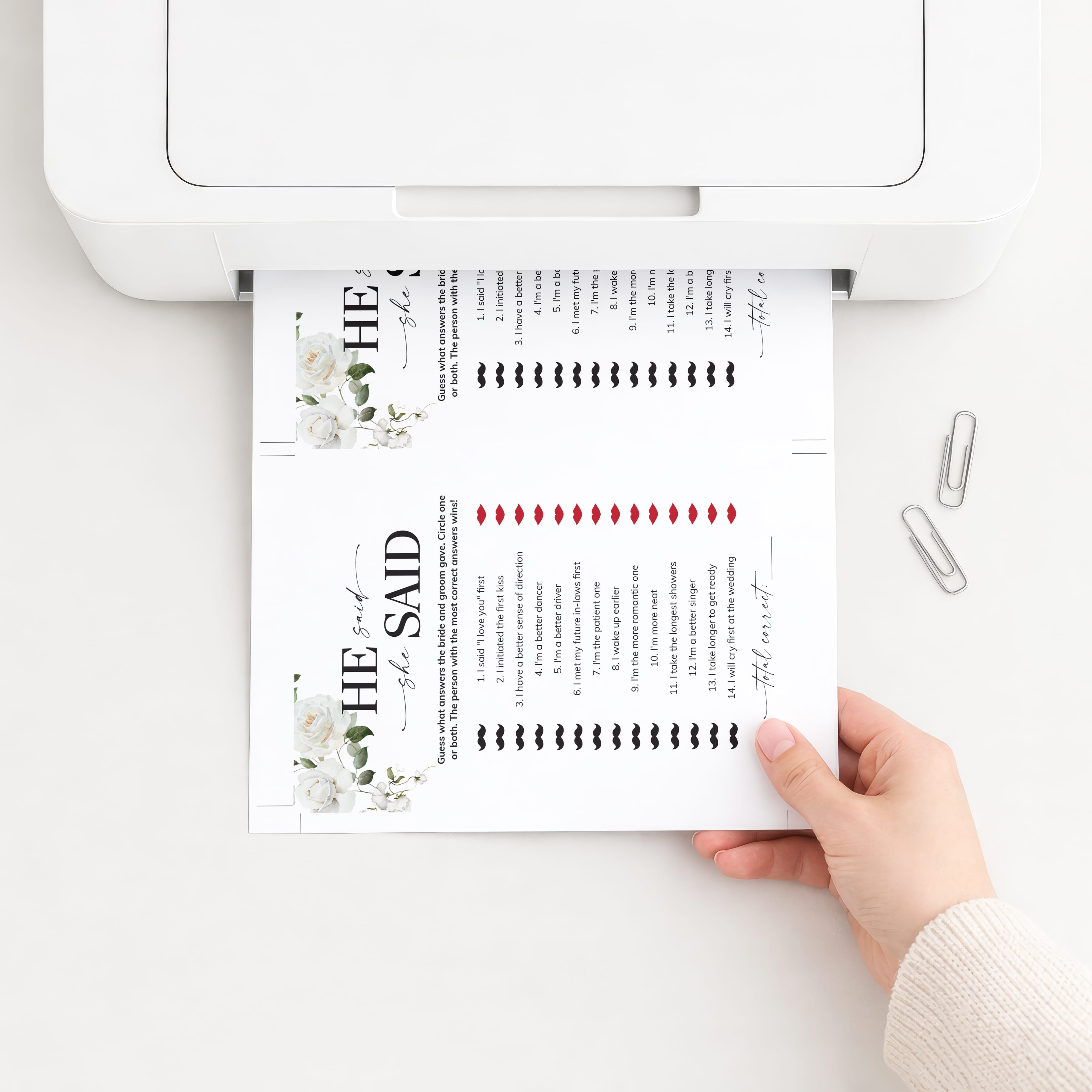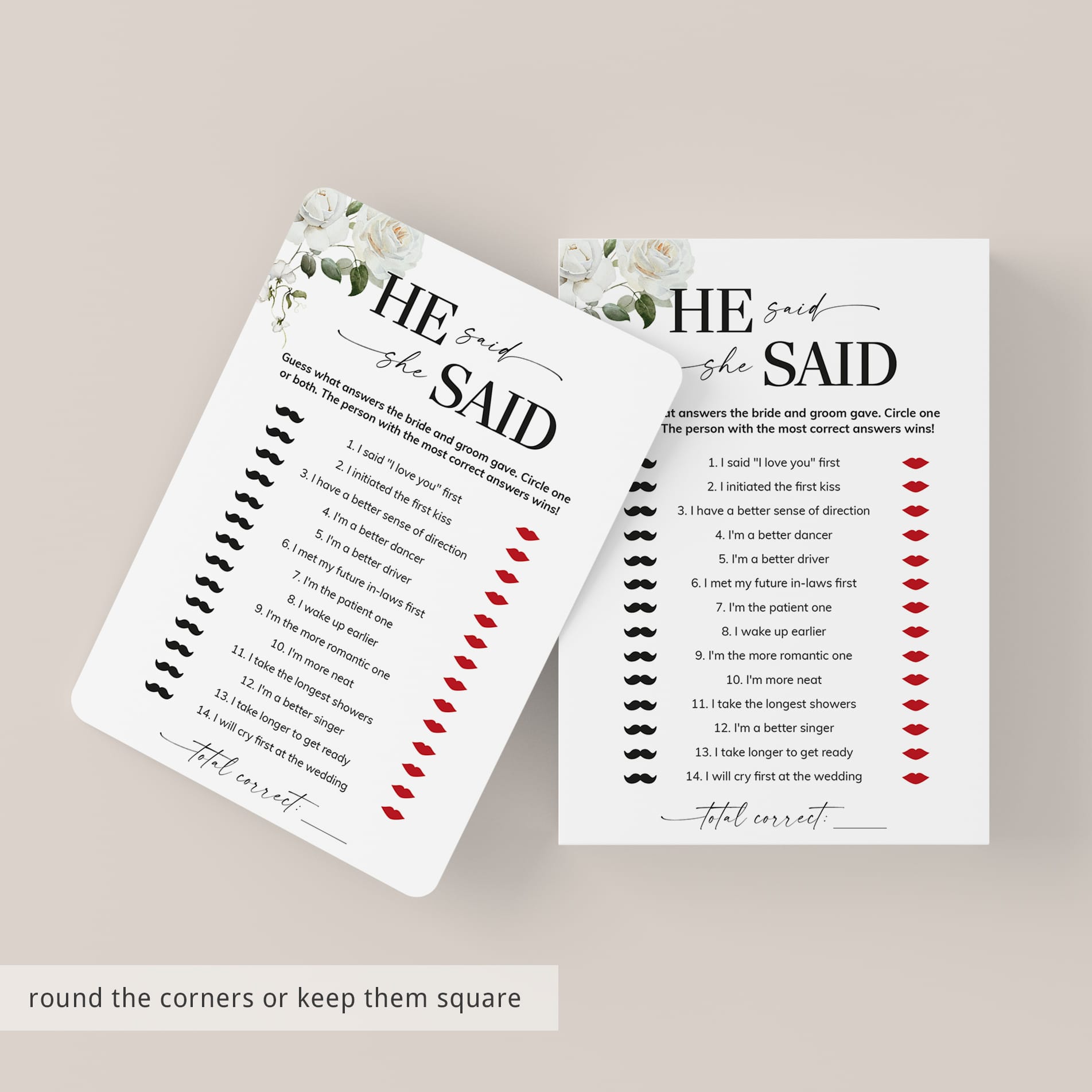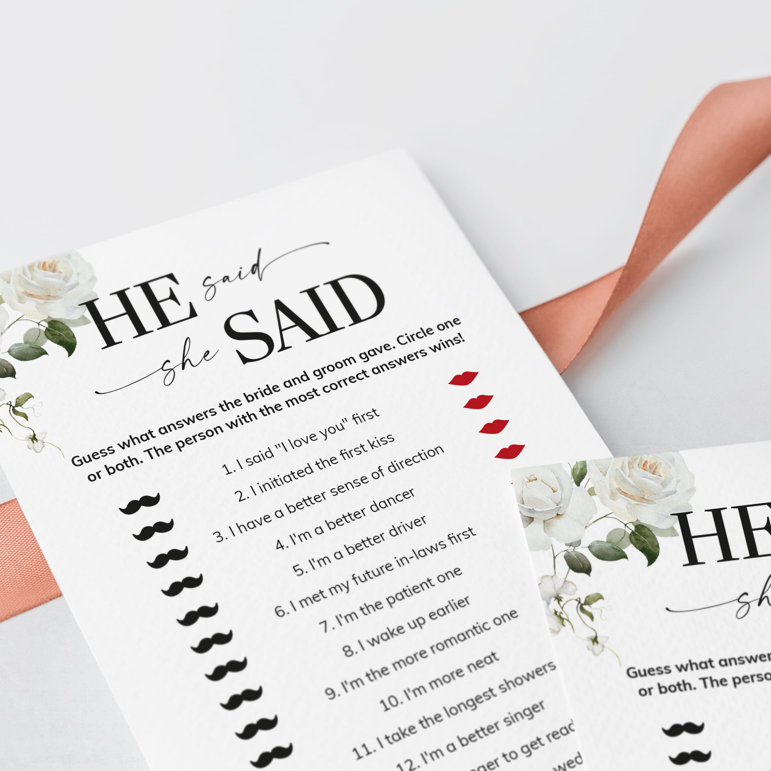 A He Said, She Said game is such a fun way to find out more about the soon-to-be-weds. These elegant floral game cards are the perfect addition to an engagement party or couples wedding shower.