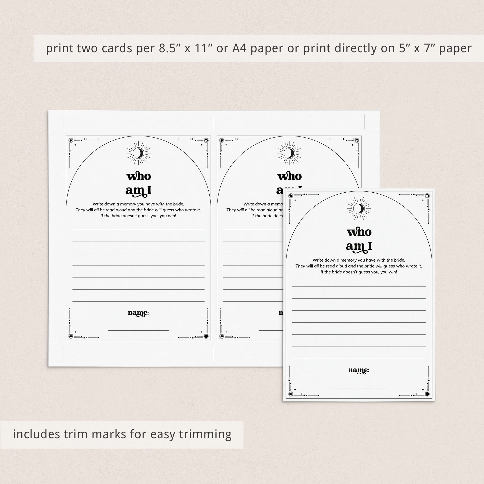 Who Am I Bridal Shower Icebreaker Game Printable Celestial Theme by LittleSizzle