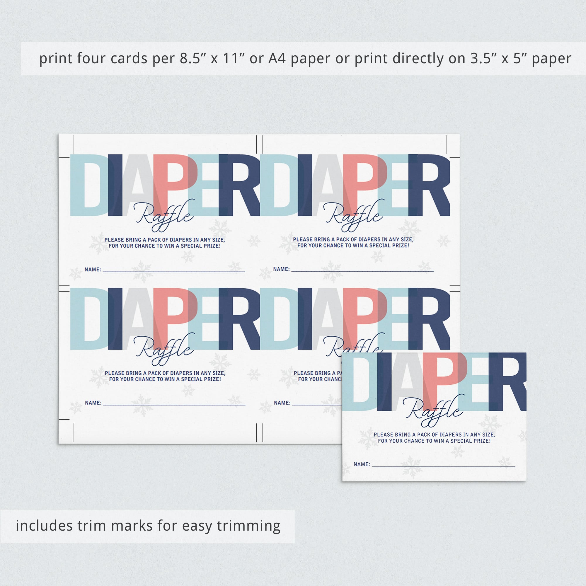 For the Diaper Raffle ticket and Book Request card, each: