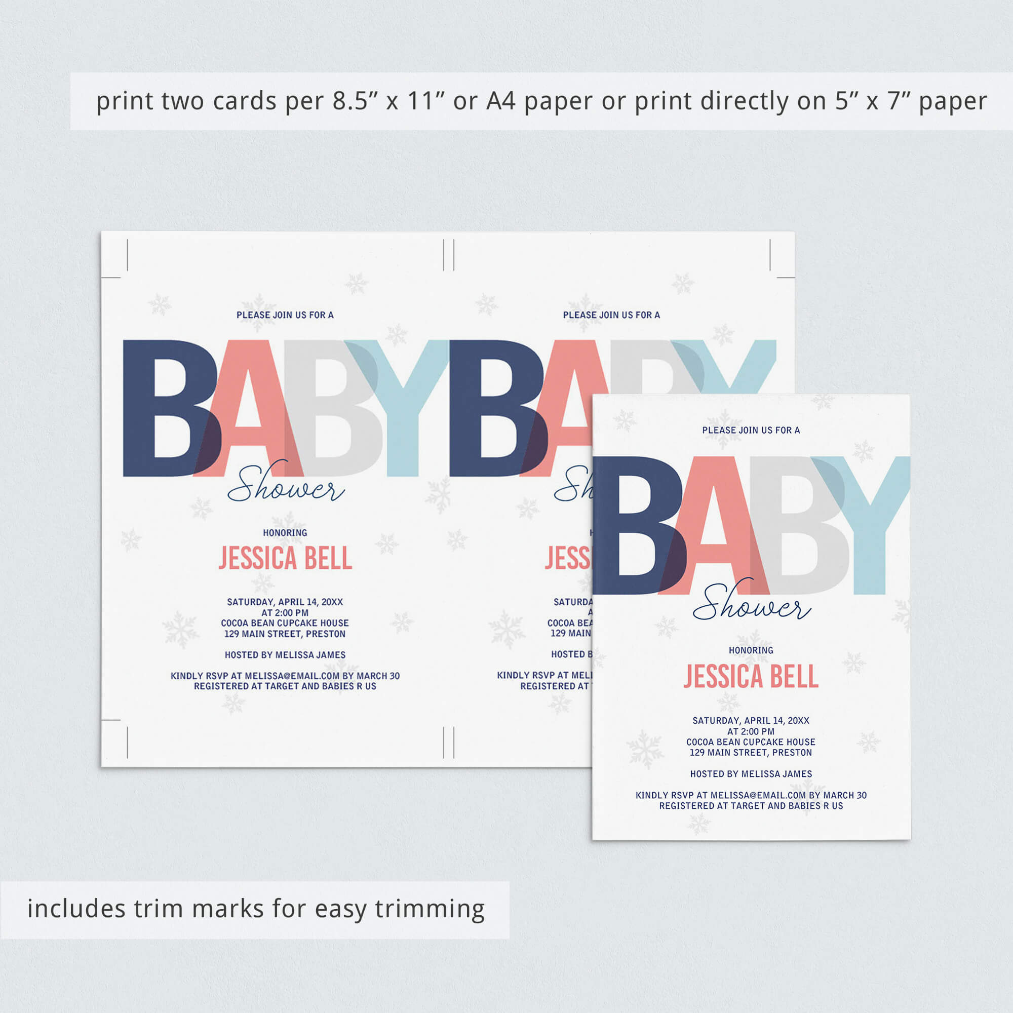 • 1 Editable PDF sized 8.5” x 11” with trim marks for twice the 5” x 7” design