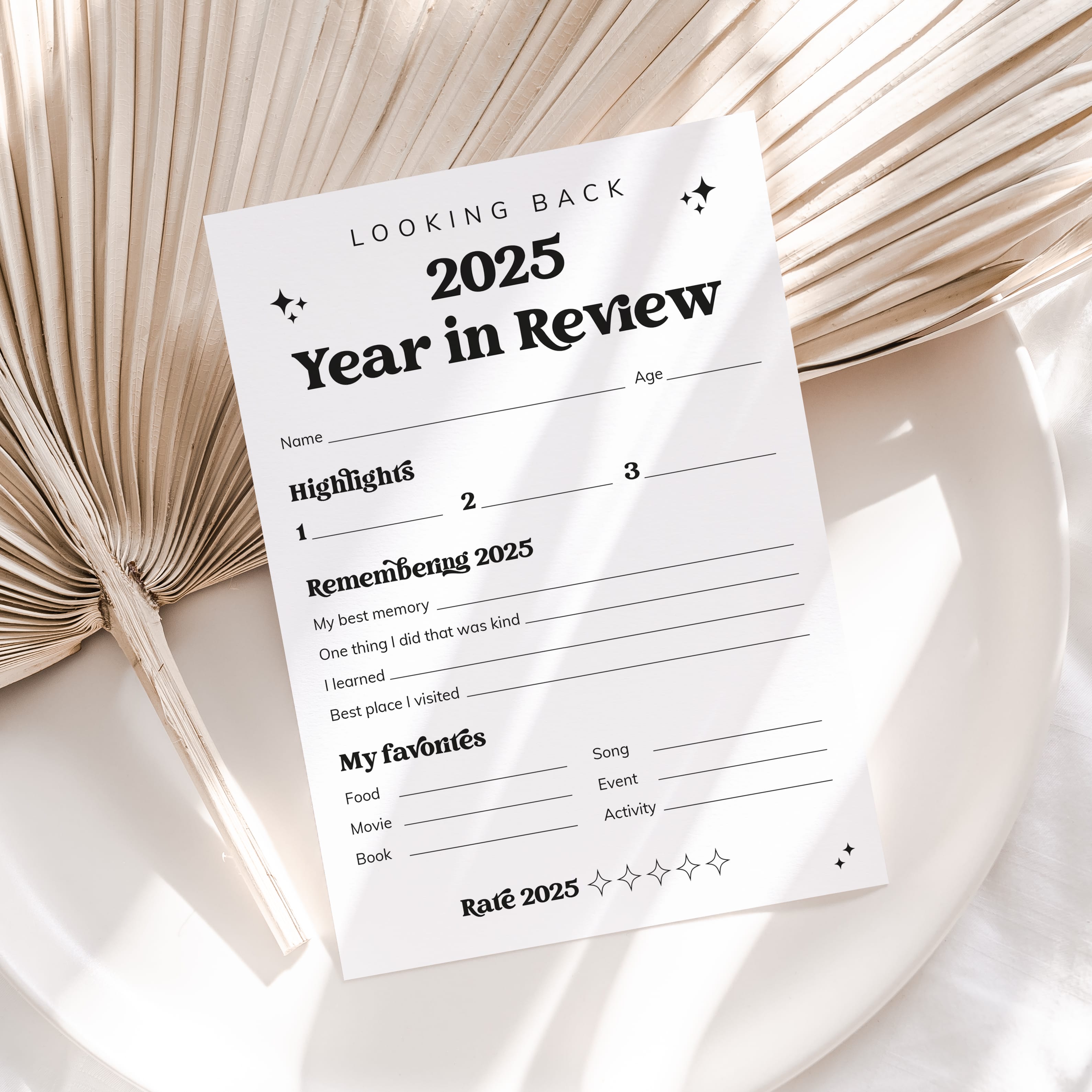 Take a look back at 2025 with this End of Year Review card. This printable Self Reflection card will help you reflect on the past year. It's a great activity for both kids and adults and a wonderful keepsake. Write down your highlights of 2025, your best memories and your favorites of the year.