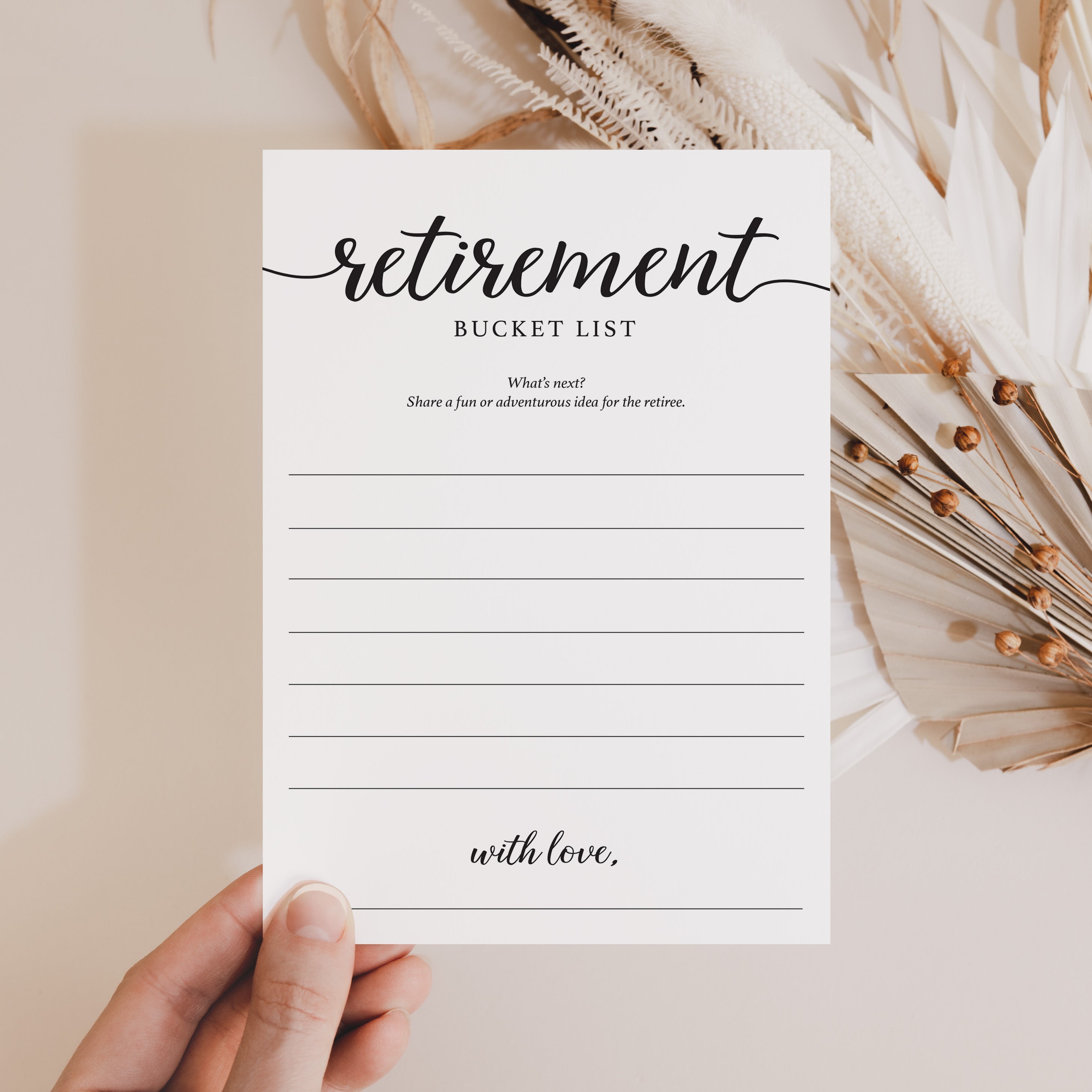 Planning a retirement party and need some fun entertainment? Kick off the celebration with this stylish bundle of retirement party games! Featuring modern calligraphy script, these black and white game cards are a perfect fit for any retirement party theme; classy, casual, or anything in between.