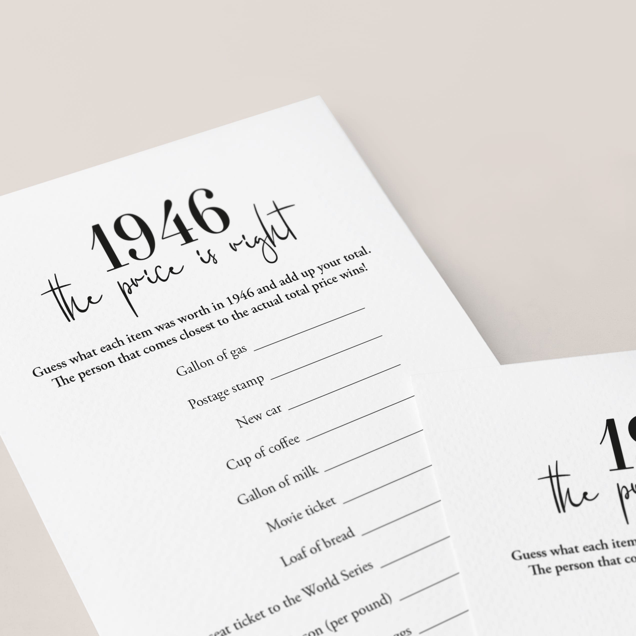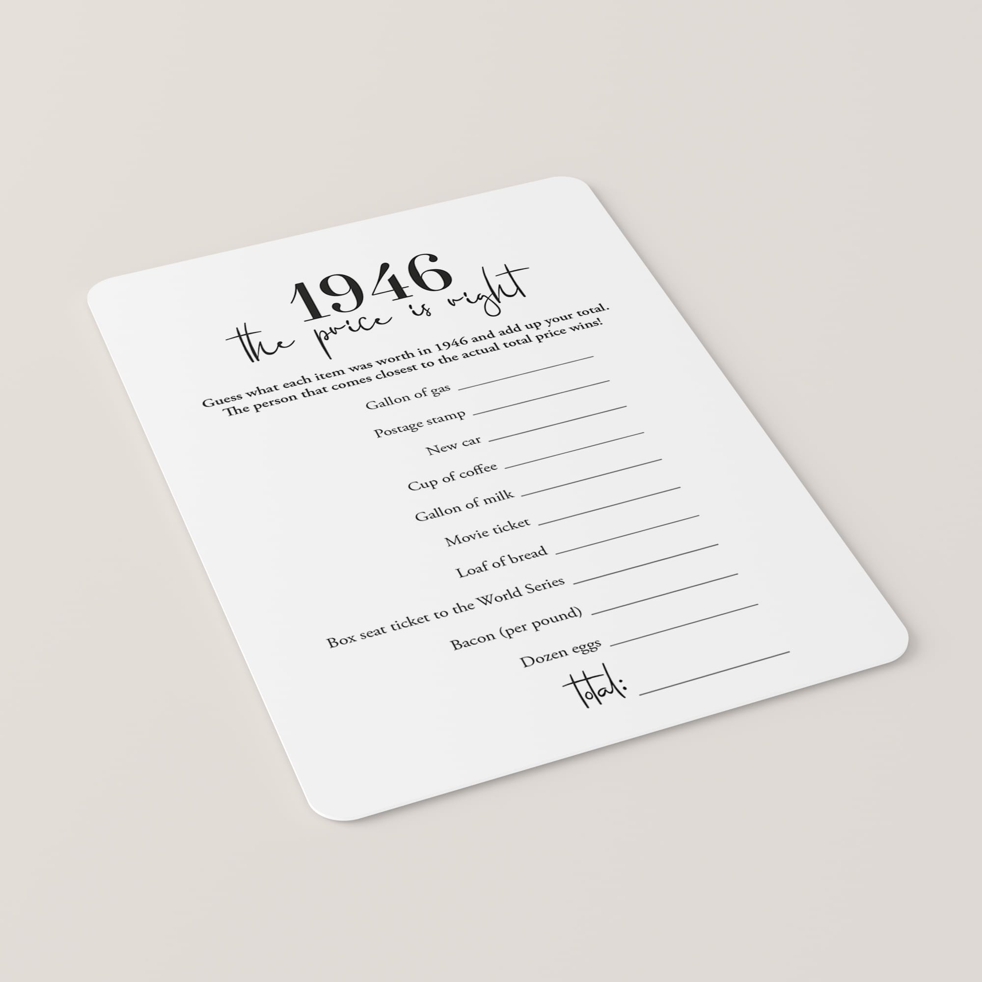 Step back in time with this fun 1946 The Price Is Right game. Whether you're celebrating a 80th birthday party or just want to take a trip down memory lane, our 1946 The Price Is Right game is the perfect icebreaker and conversation starter that will have your guests laughing, competing and reliving the past.