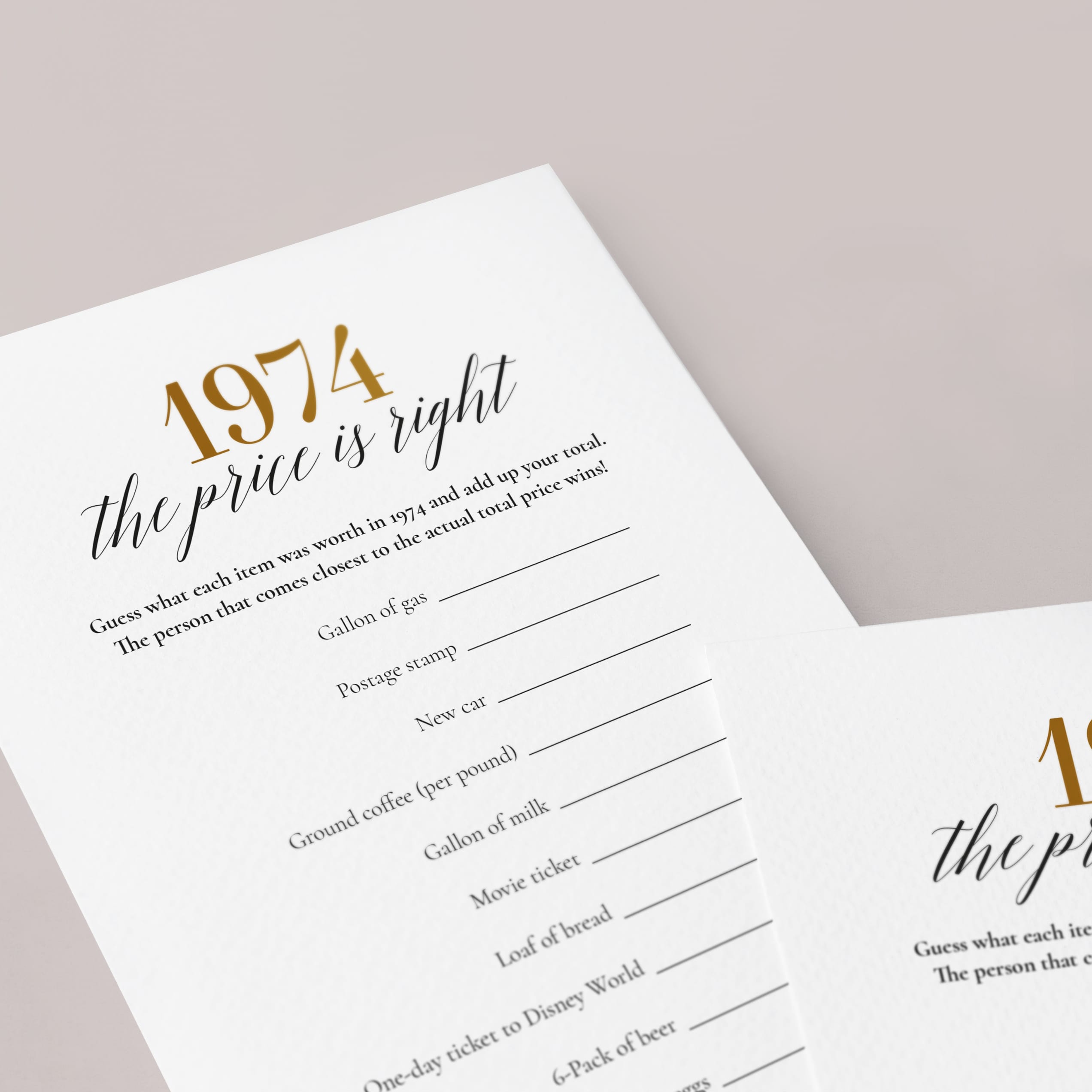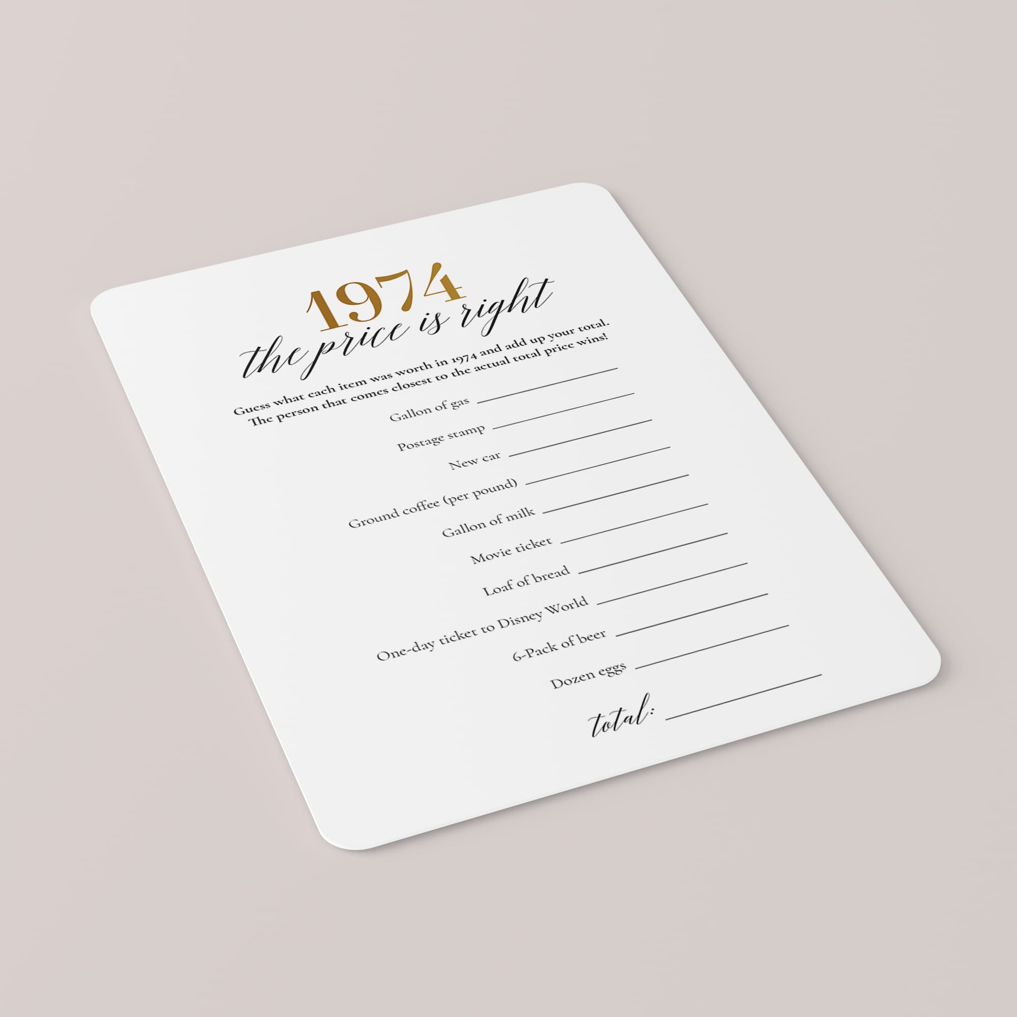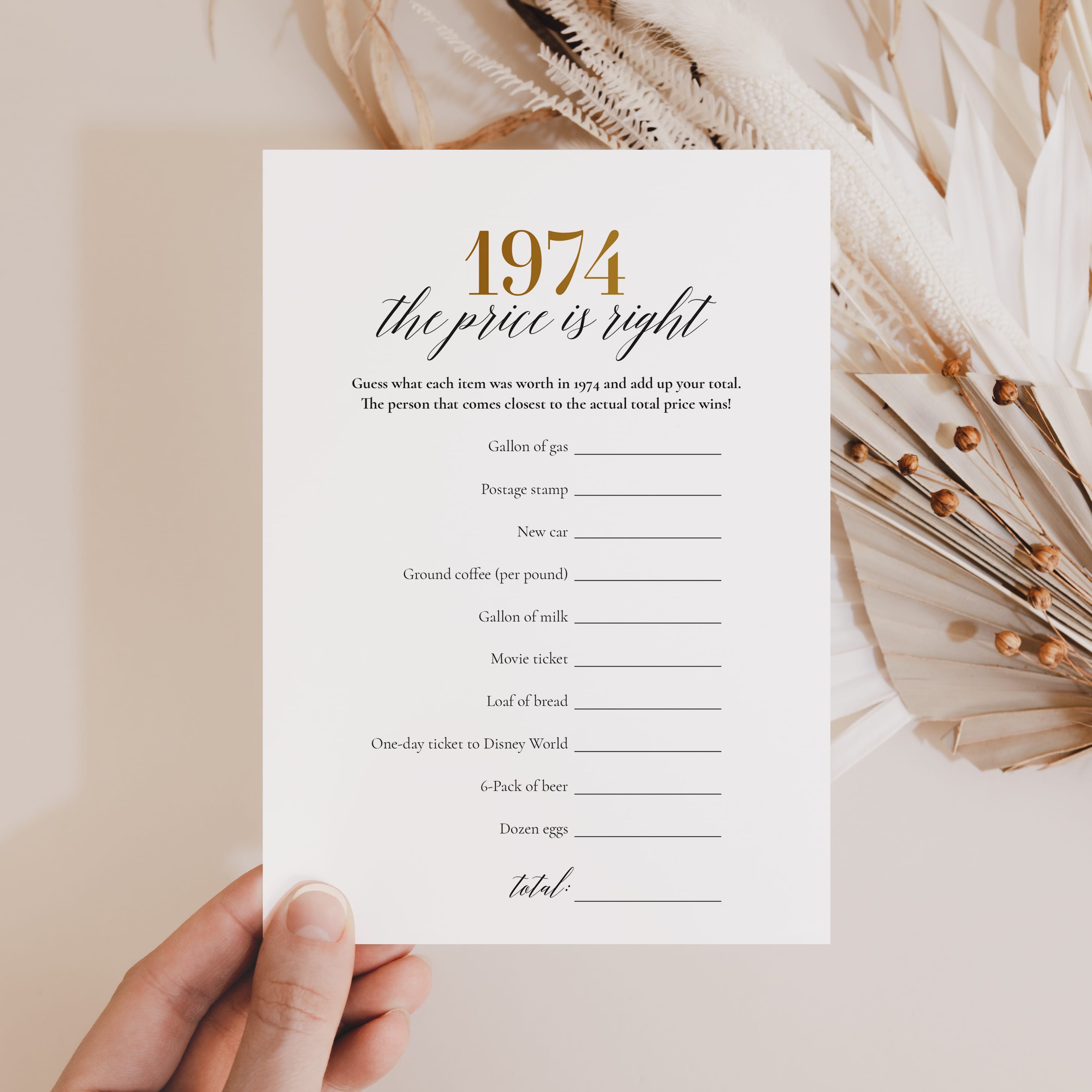 Step back in time with this fun 1974 The Price Is Right game. Whether you're celebrating a milestone anniversary, a 1974 birthday party or just want to take a trip down memory lane, our 1974 The Price Is Right game is the perfect icebreaker and conversation starter that will have your guests laughing, competing and reliving the past.