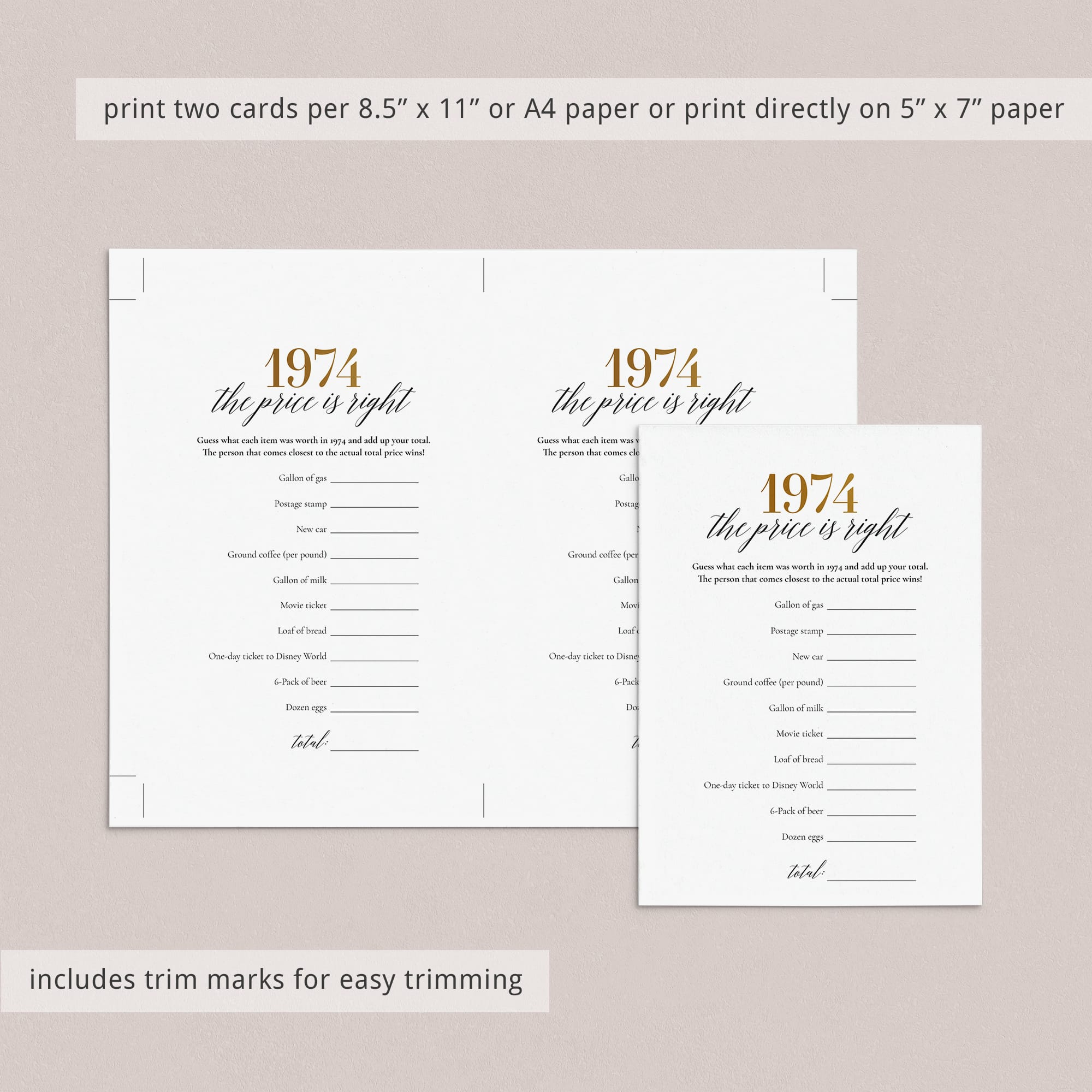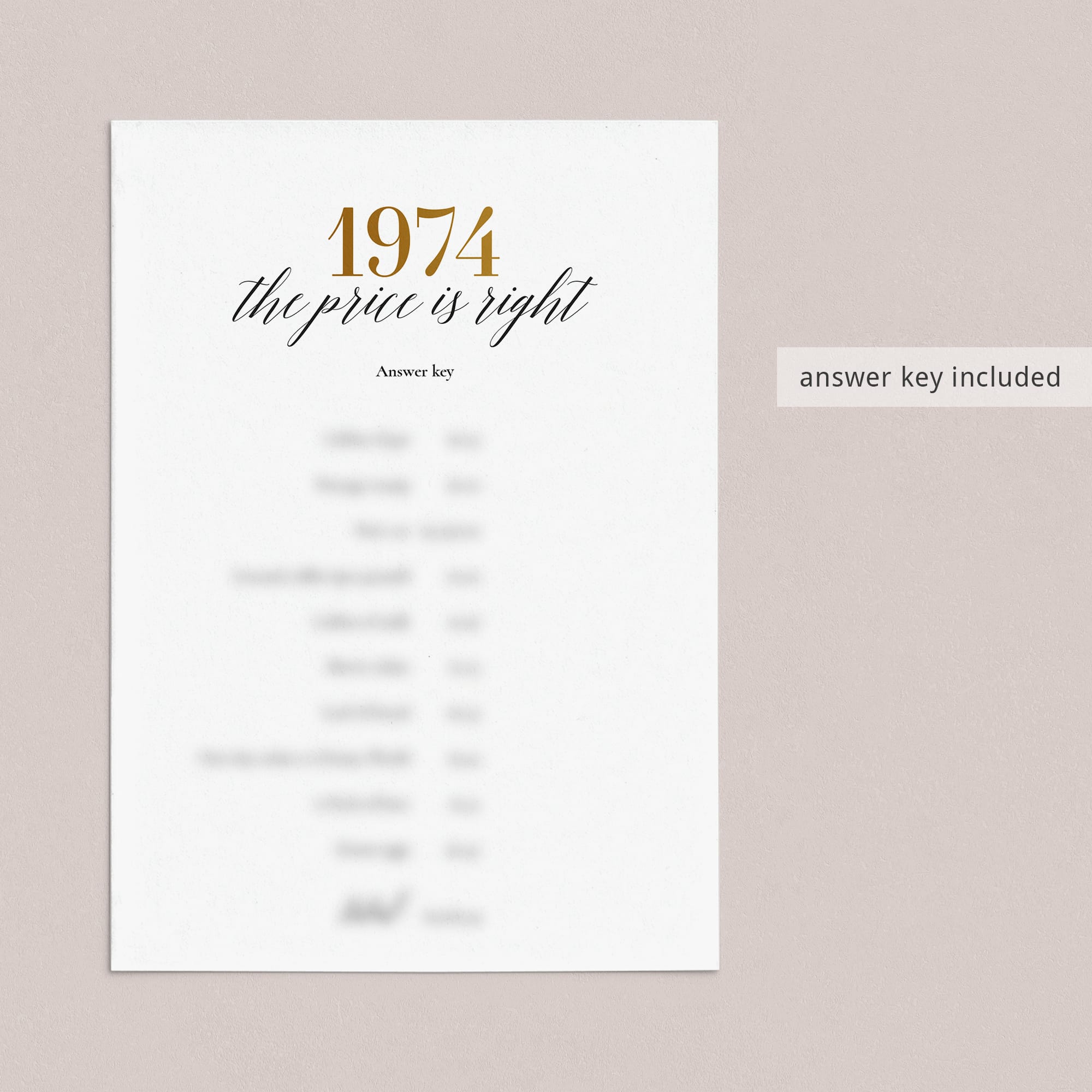 To determine the ultimate winner, simply add up everyone's guesses and see who comes closest to the actual total of these 1974 prices. It's a game of memory and estimation that will have your guests engaged and reminiscing about the good ol' days.