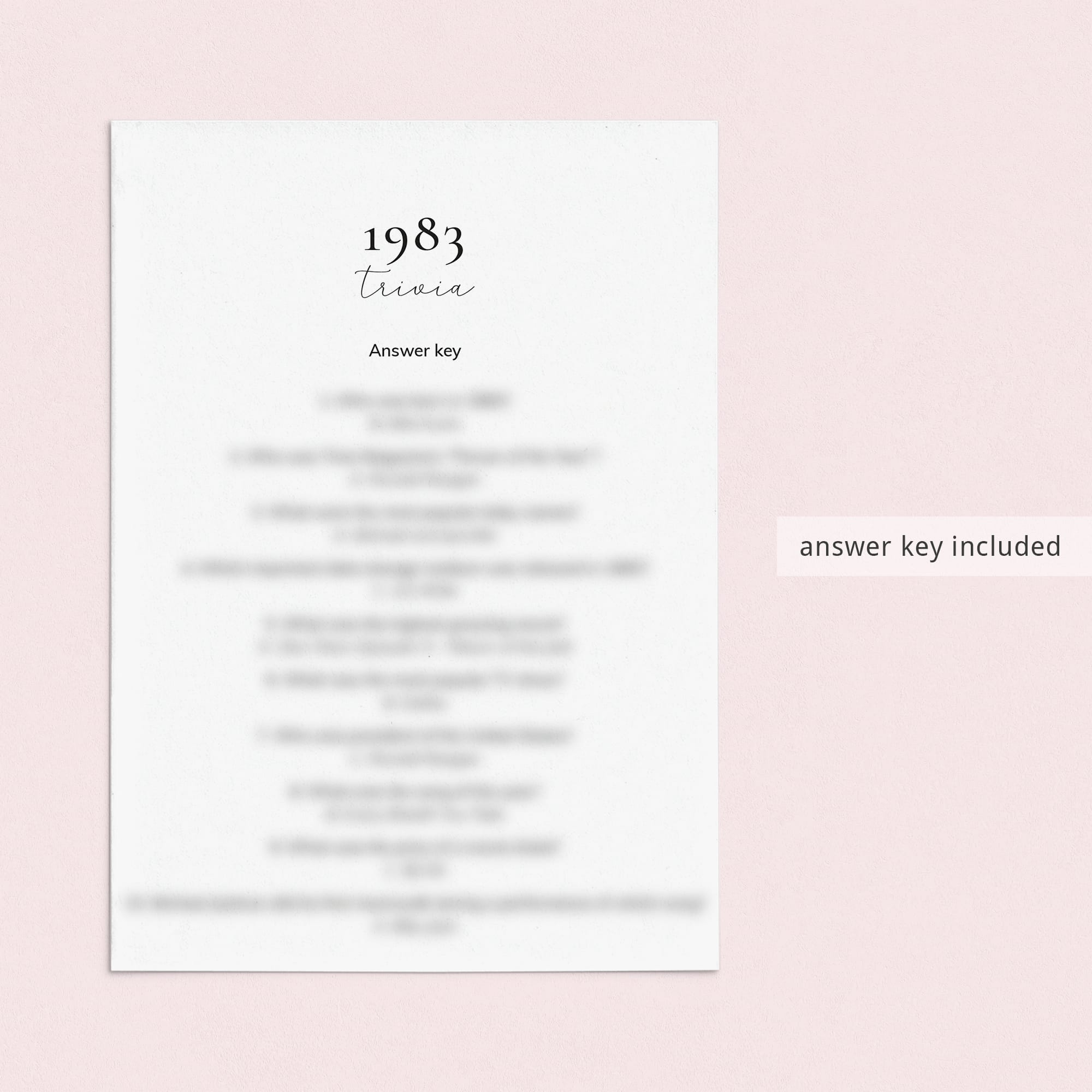 Just in case you are having trouble figuring out the answers, an answer key with the year 1983 quiz answers is included.