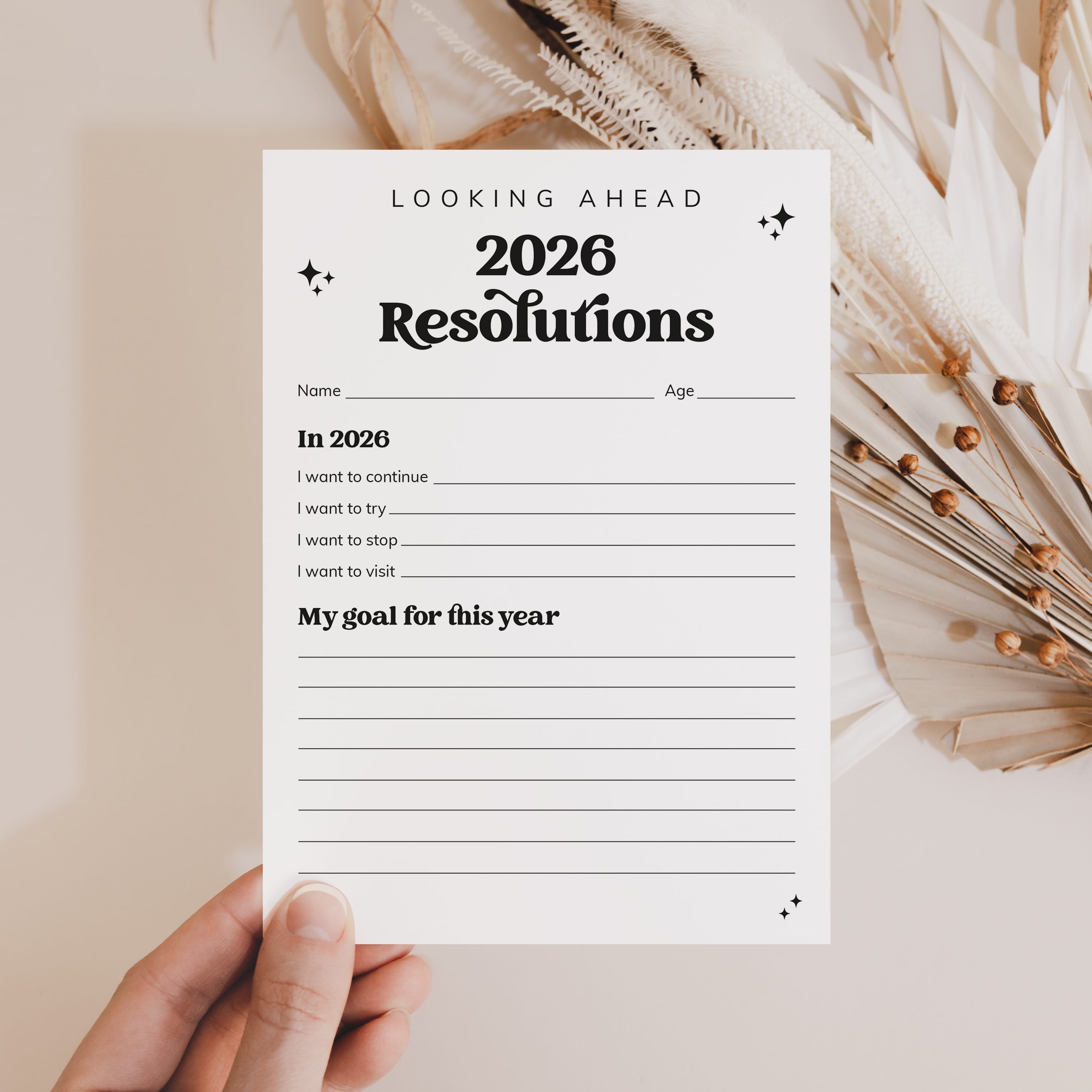 Write down your new year resolutions and goals for 2026 with this minimalist black and white Resolutions card.This resolutions card is an instant download. After purchase you will receive a download link immediately... Read more